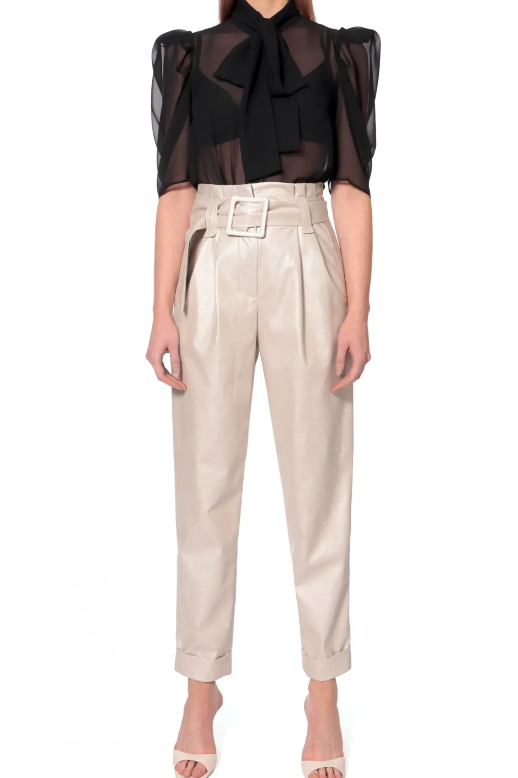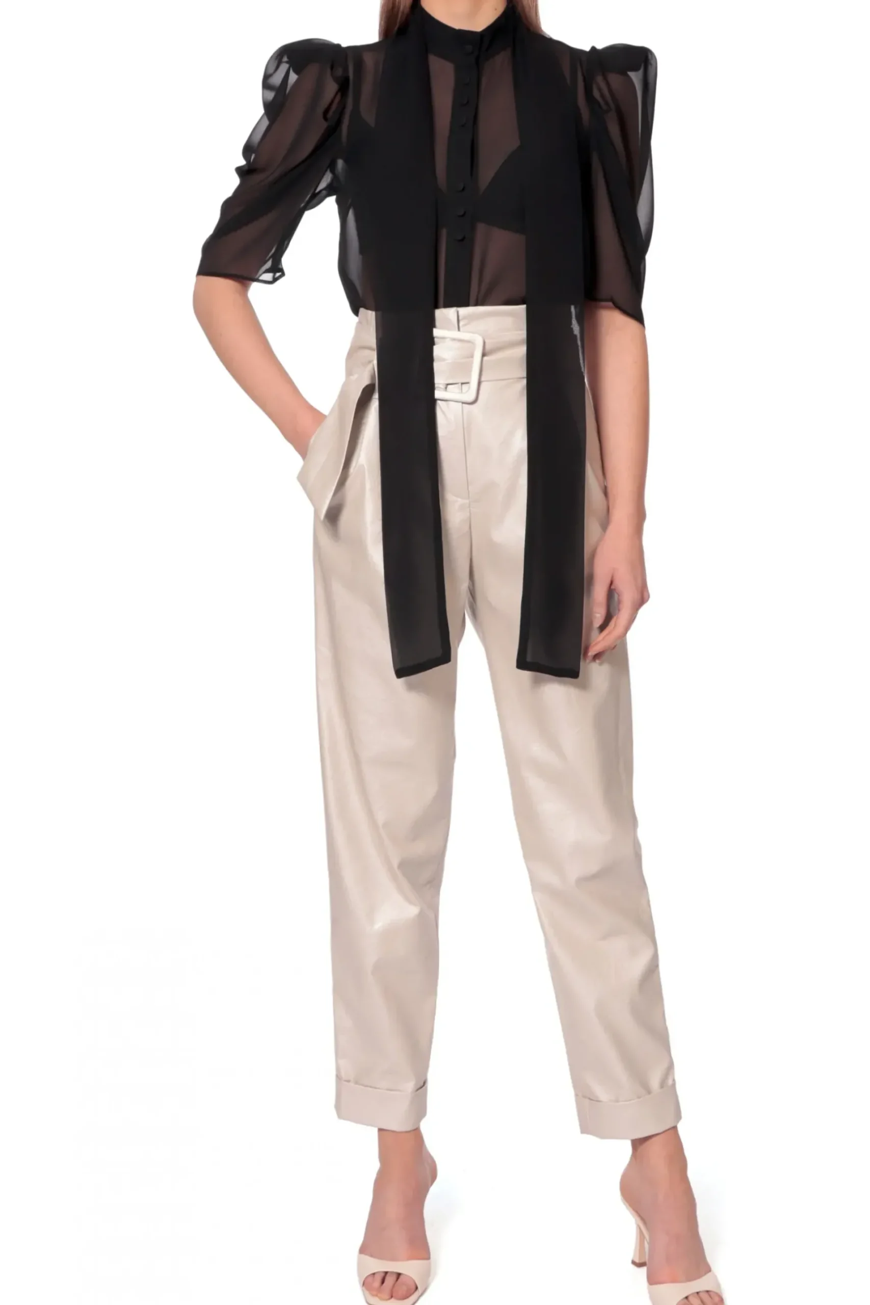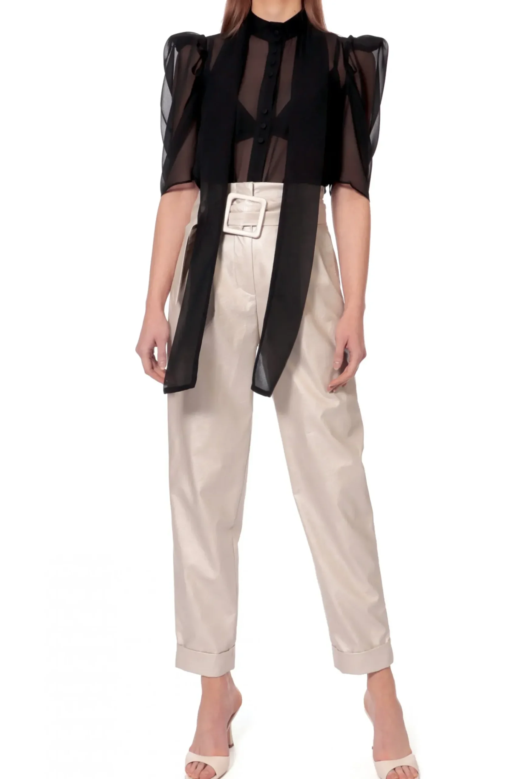 Bluzka Z Bufiastymi Rekawami Uszyta Z Delikatnego, Miekko Ukladajacego Sie Jedwabnego Szyfonu. Efektowna, Przestrzenna Forma Rekawow Podkreslona Mala Poduszka To Najgoretszy Trend Sezonu. Wykonczona Stojka Do Ktorej Jest Doszyta Szarfa, Ktora Mozna Wiazac Na Kilka Sposobow Lub Nosic Nonszalancko Rozwiazana. Bluzka Zapinana Jest Na Oblekane Guziki.