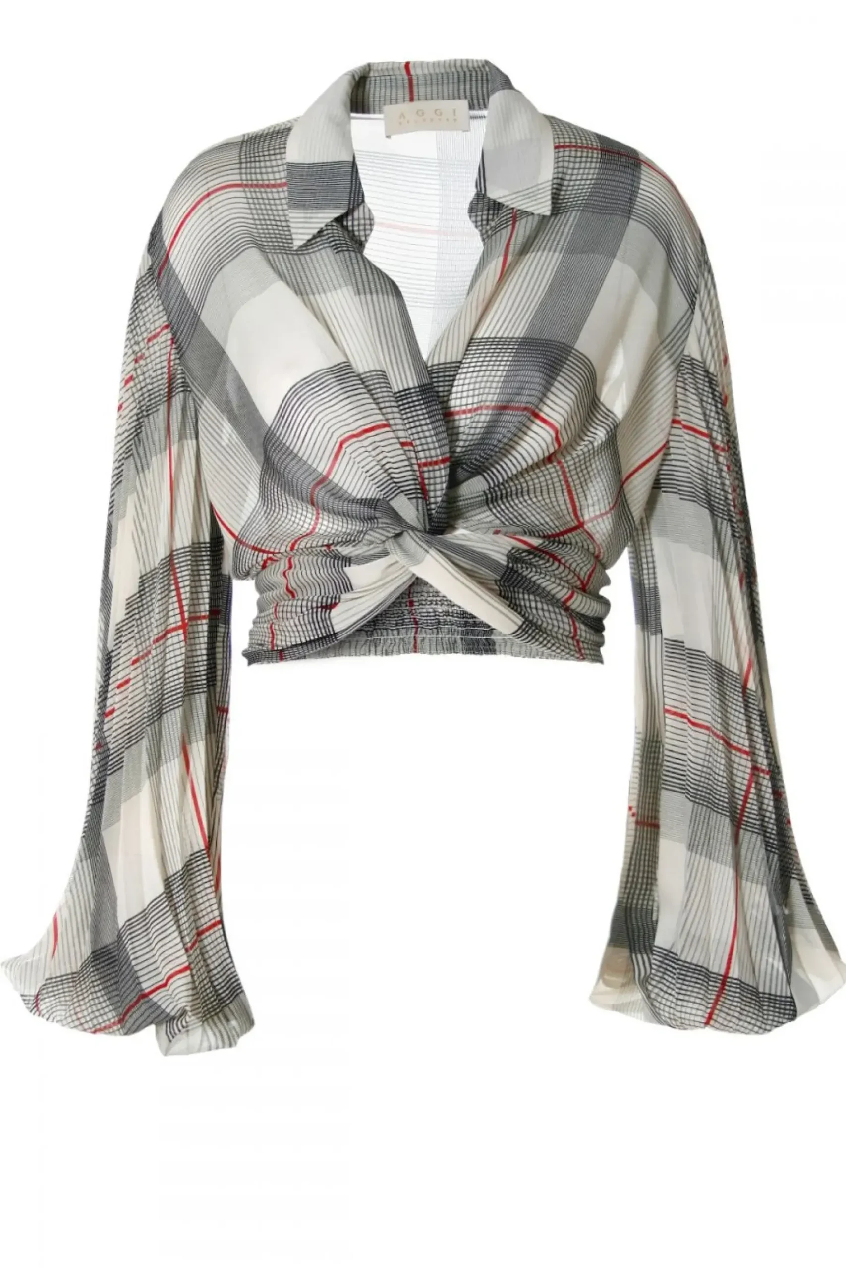 Szyfonowa Bluzka Z Dekoltem W Szpic I Sredniej Wielkosci Kolnierzykiem.