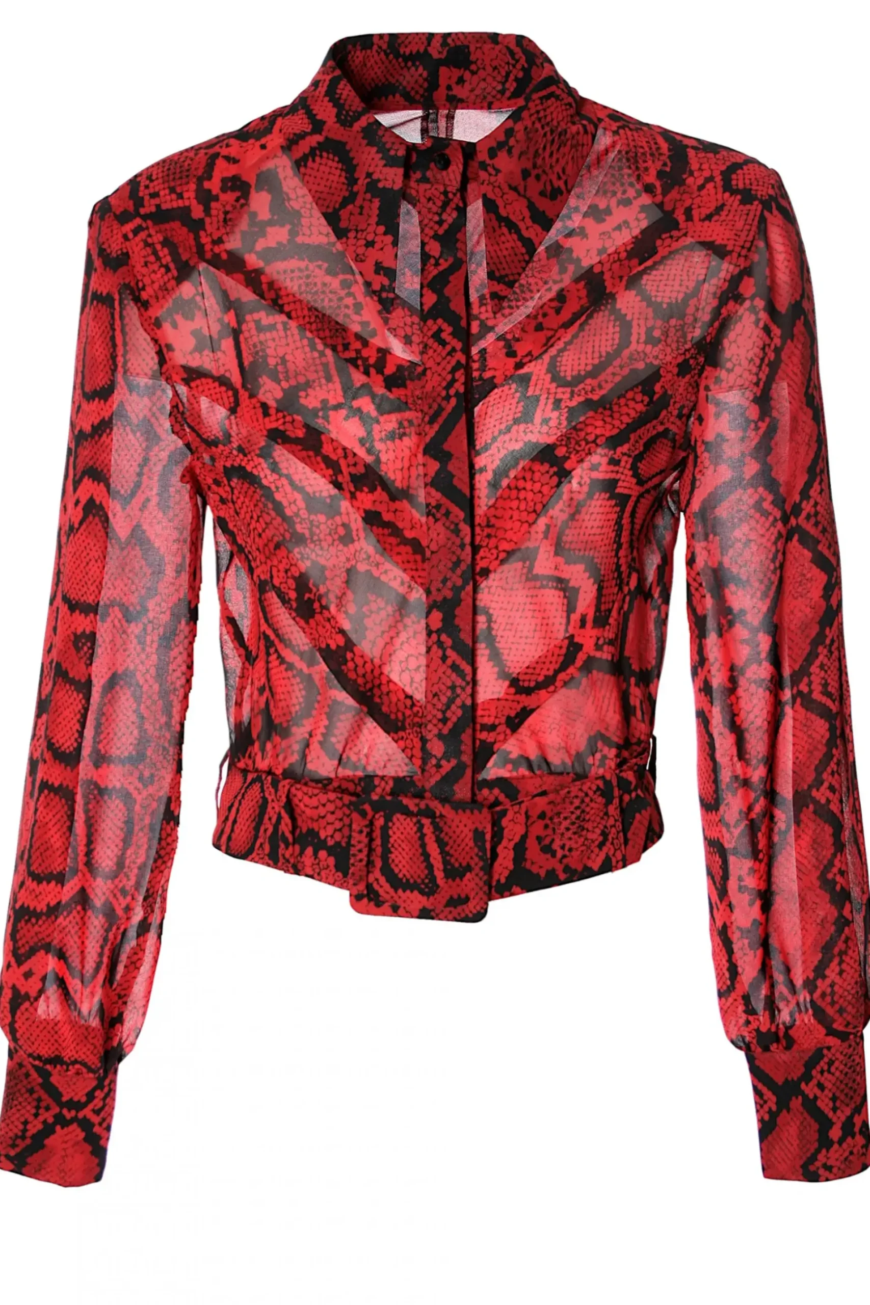 Bluzka Z Dlugimi Rekawami Uszyta Z Delikatnej Tkaniny W Zwierzecy Print. Kryte Zapiecie Na Drobne Guziczki, W Talii Zakonczona Paskiem.