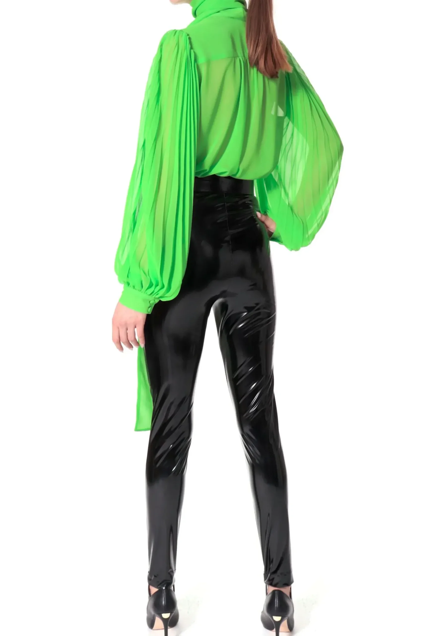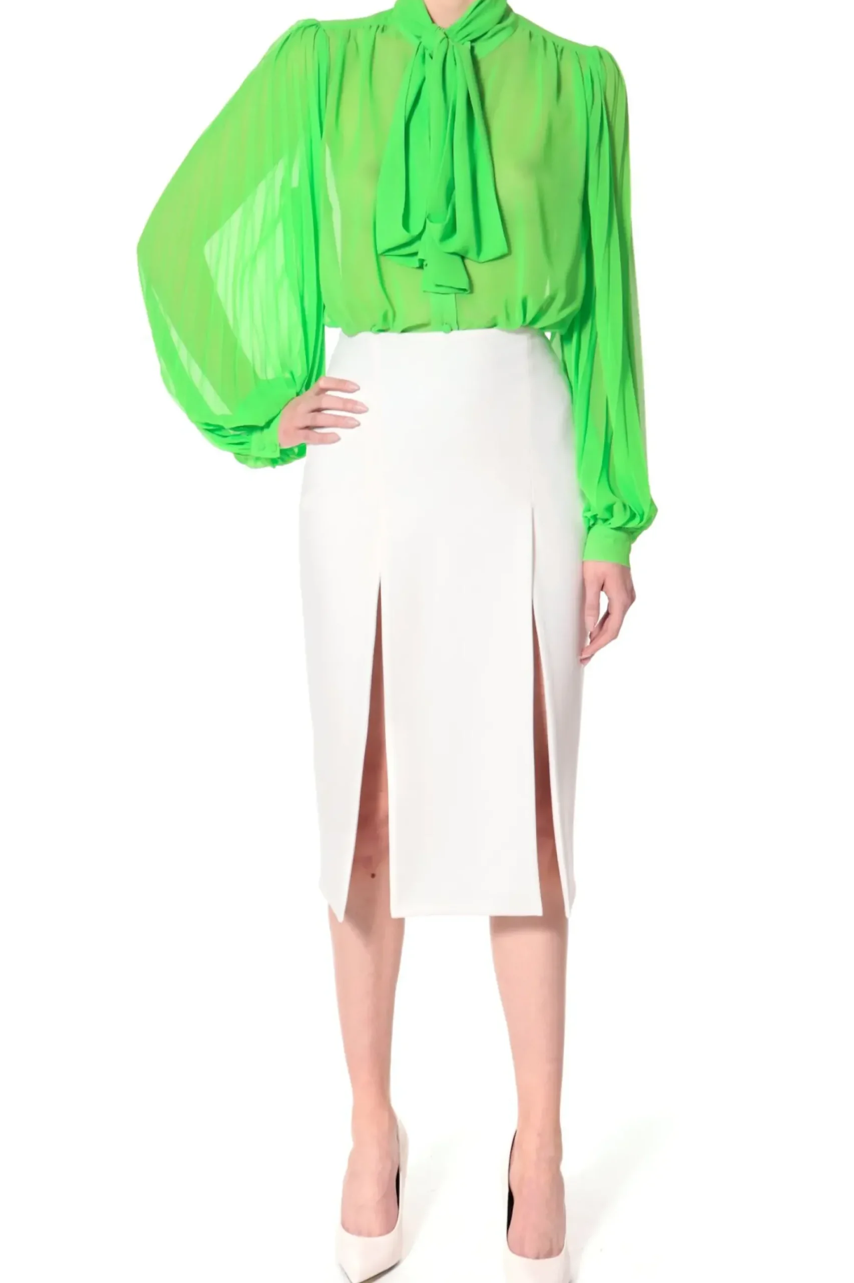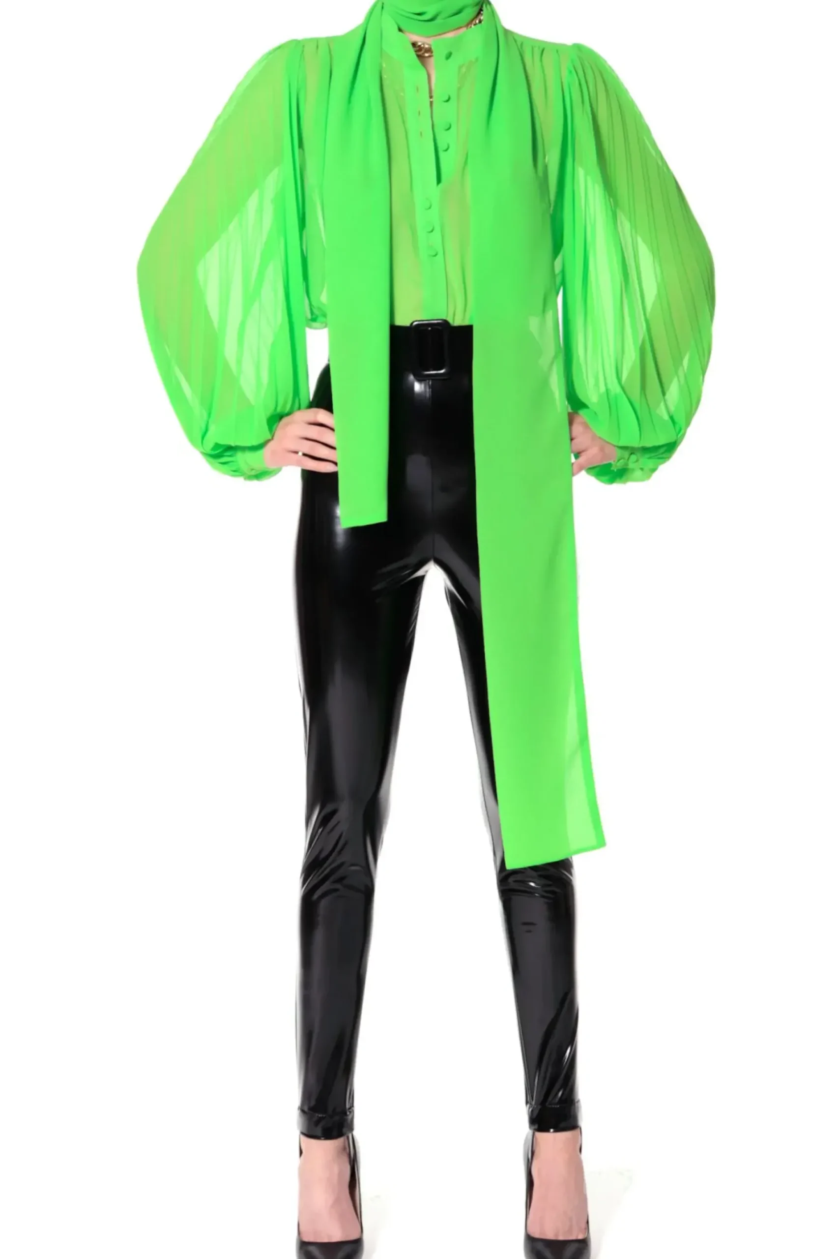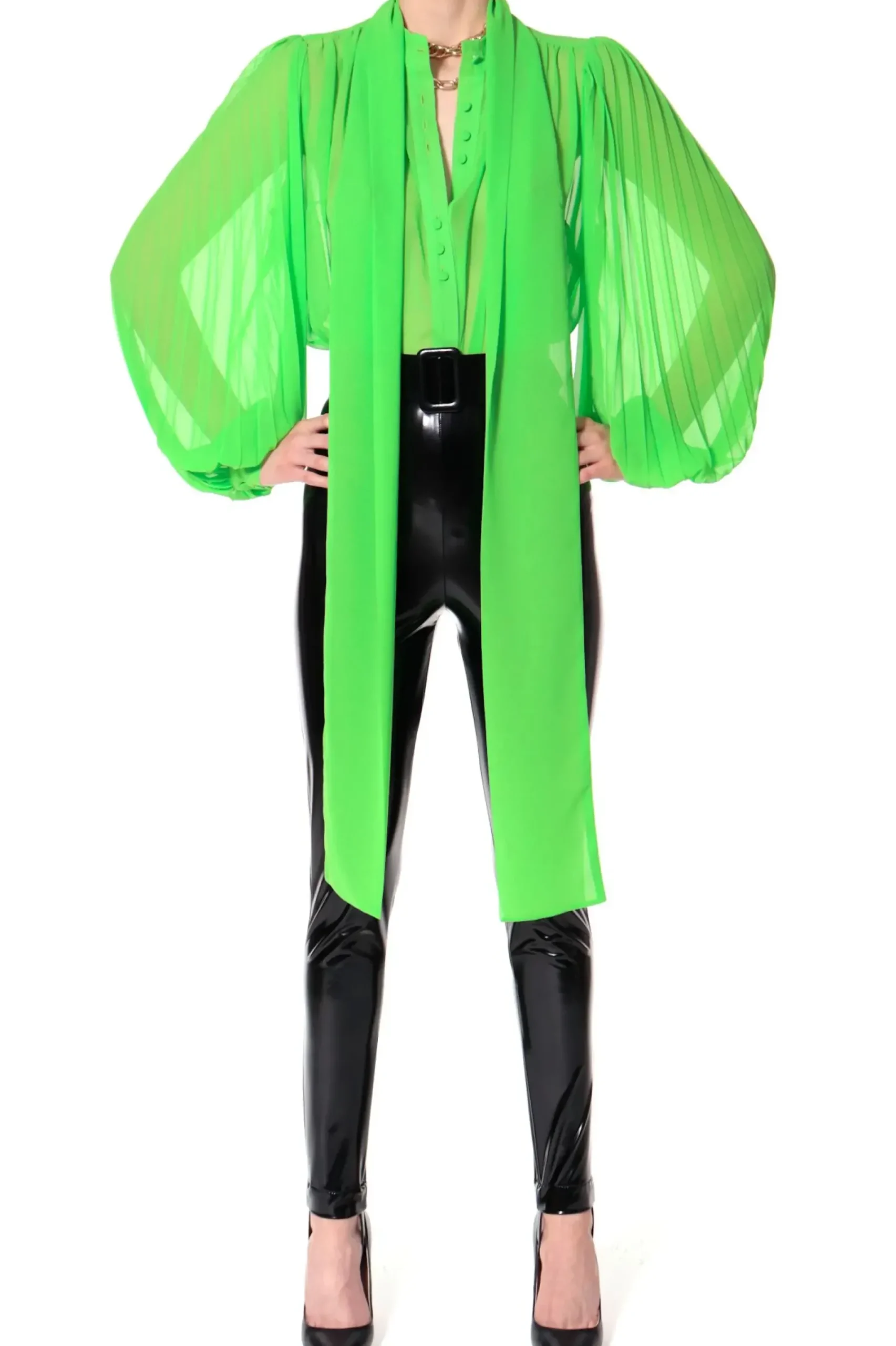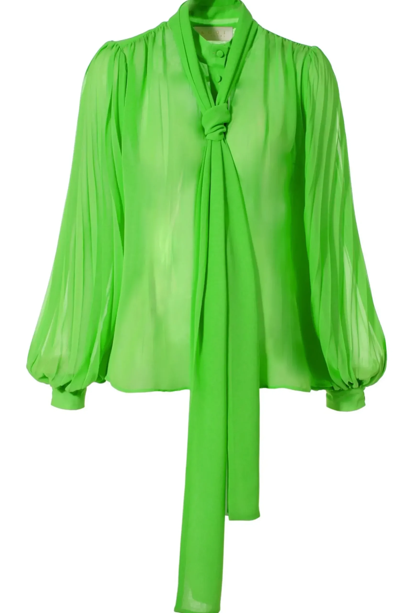 Szyfonowa Bluzka Z Szeroka Szarfa, Ktora Mozesz Nobliwie Zawiazac Pod Szyja Na Kokarde, Zmyslowo Owinac Wokol Szyi Lub Nosic Nonszalancko Zwisajaca W Stylu Paryskiego Dandysa. Plisowane, Obszerne Rekawy Tworza Zwiewna, Falujaca Przestrzen Ujeta W Mankiety Przy Nadgarstkach.