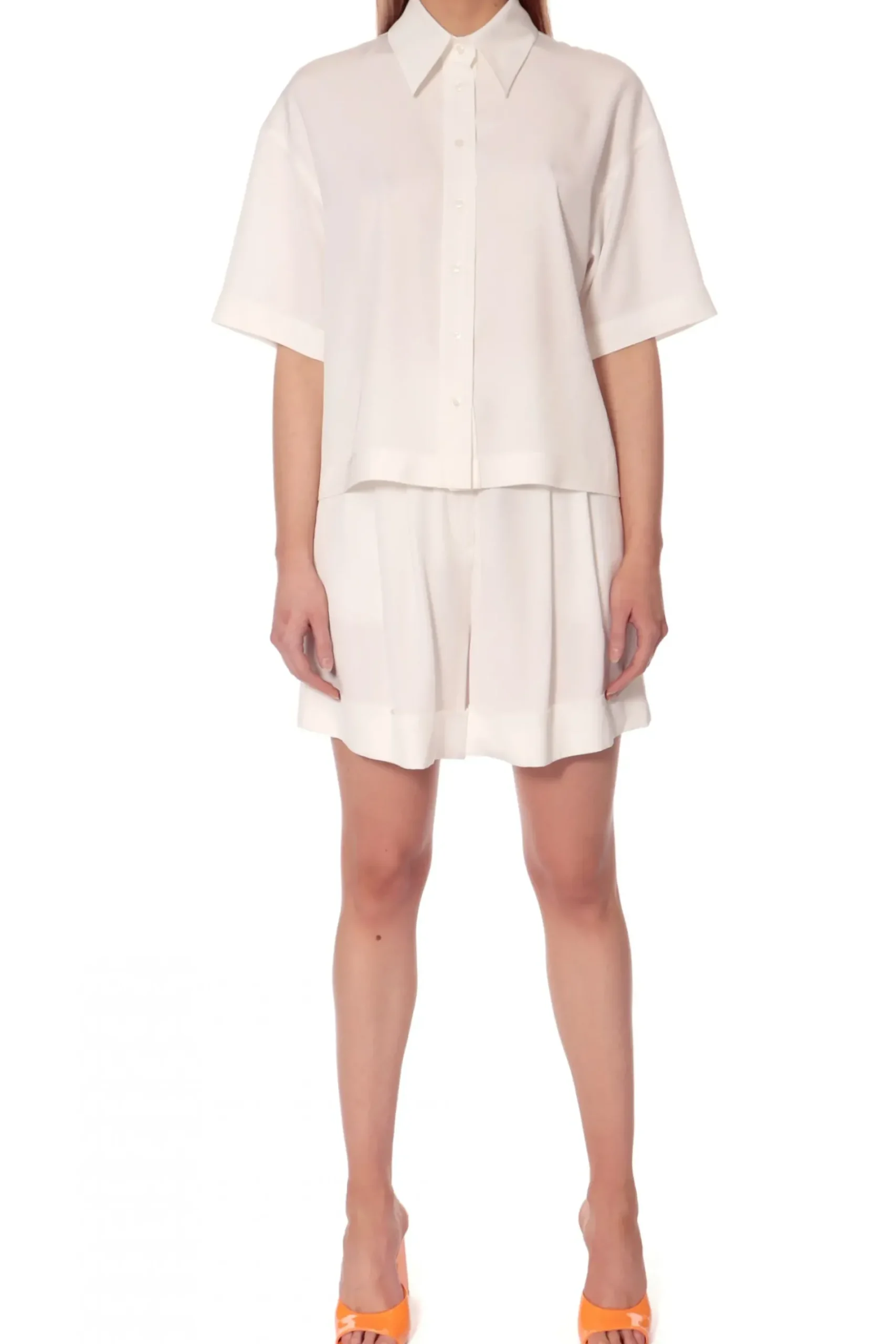 Luzna Koszula Wykonana Z Lekkiego, Przewiewnego Materialu. Z Klasycznym Kolnierzykiem I Rekawami W Dlugosci Do Lokcia. Linia Ramion Delikatnie Wydluzona Nadajac Koszuli Oversizowy Look. Swietnie Prezentuje Sie Noszona Luzno Na Wierzch. Stworzy Idealny Letni Zestaw Z Szortami Noa Whisper White.