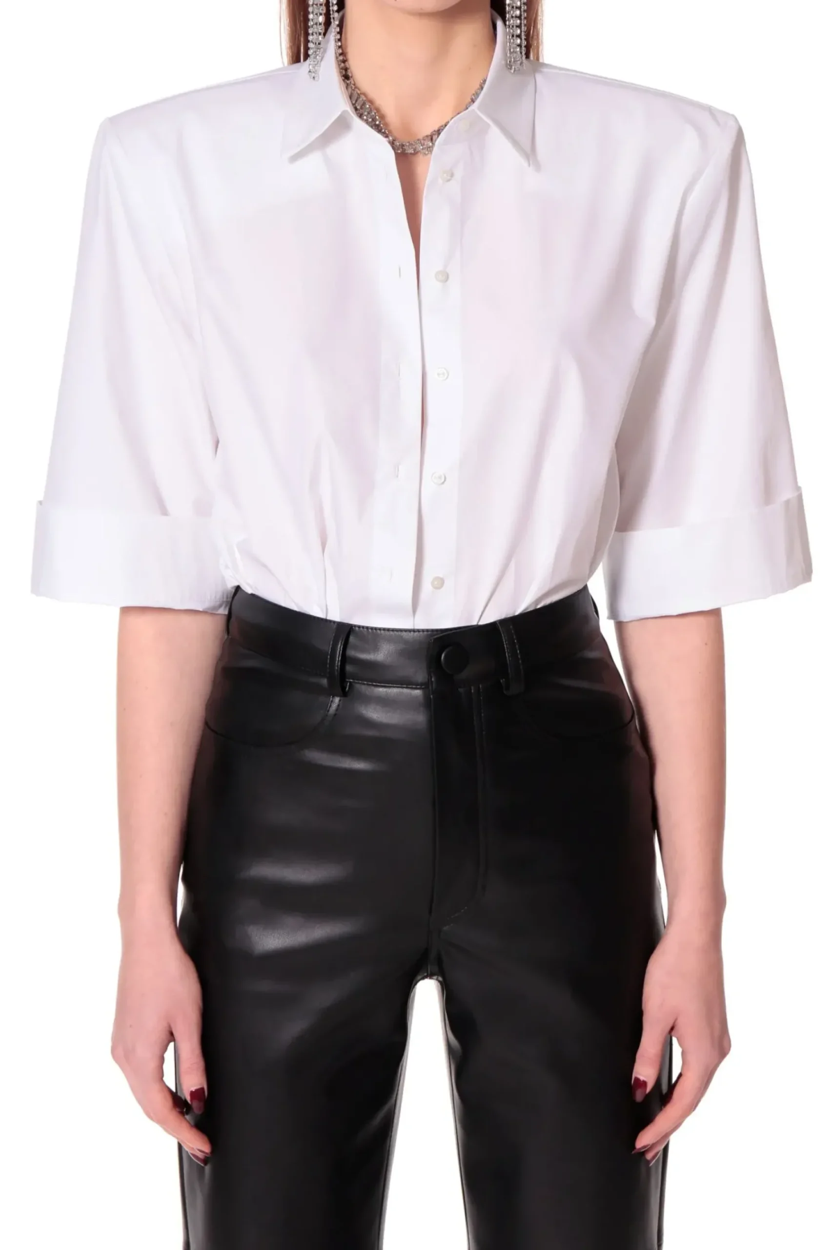 Oversizova Koszula Z Mocno Zaakcentowana Linia Ramion Uszyta Z Bawelnianej Popeliny O Papierowym Chwycie. Nos Ja W Nowoczesny Sposob Z Dopasowana Spodnica Lub Spodniami Tworzac Zdecydowana, Mocna Stylizacje.