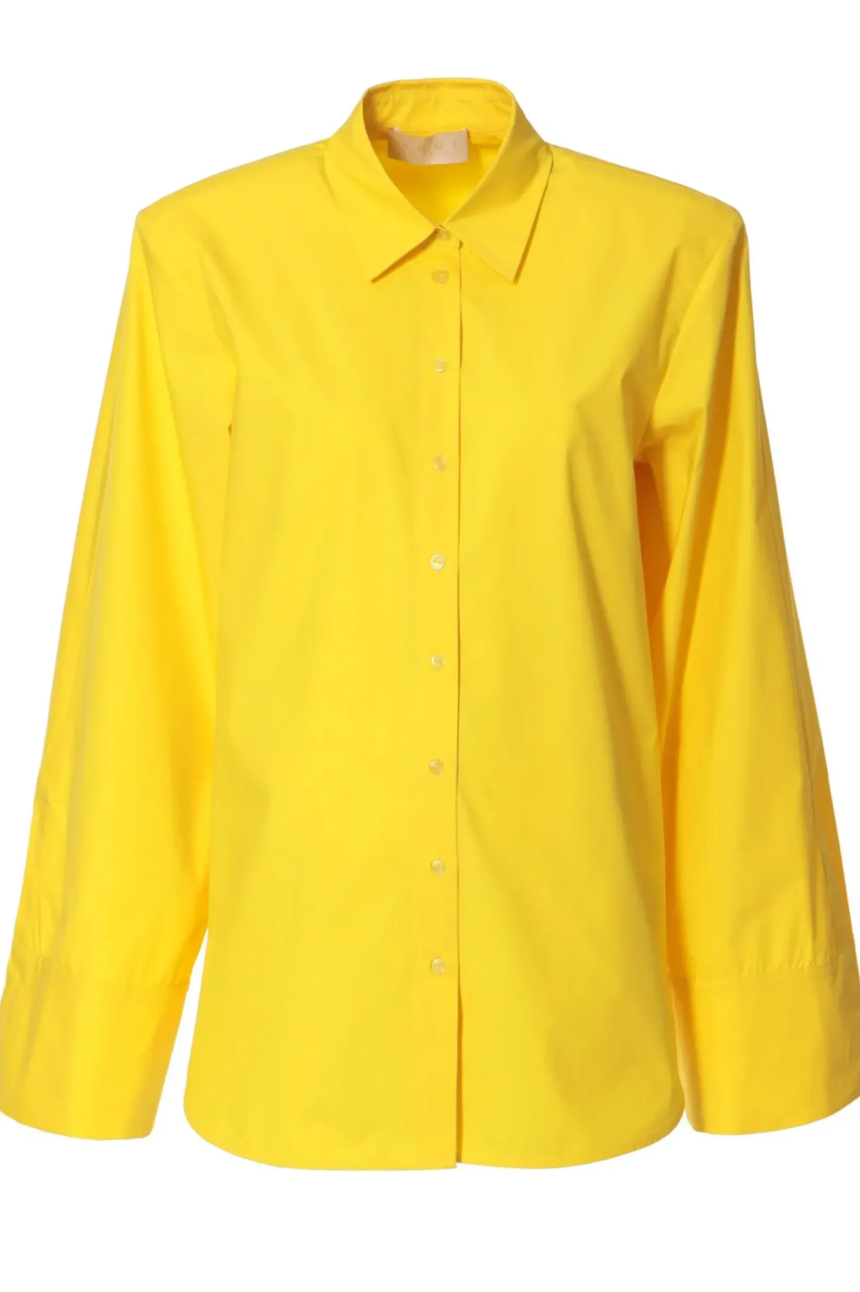 Oversizowa Koszula Z Mocno Zaakcentowana Linia Ramion Uszyta Z Bawelnianej Popeliny O Papierowym Chwycie.
