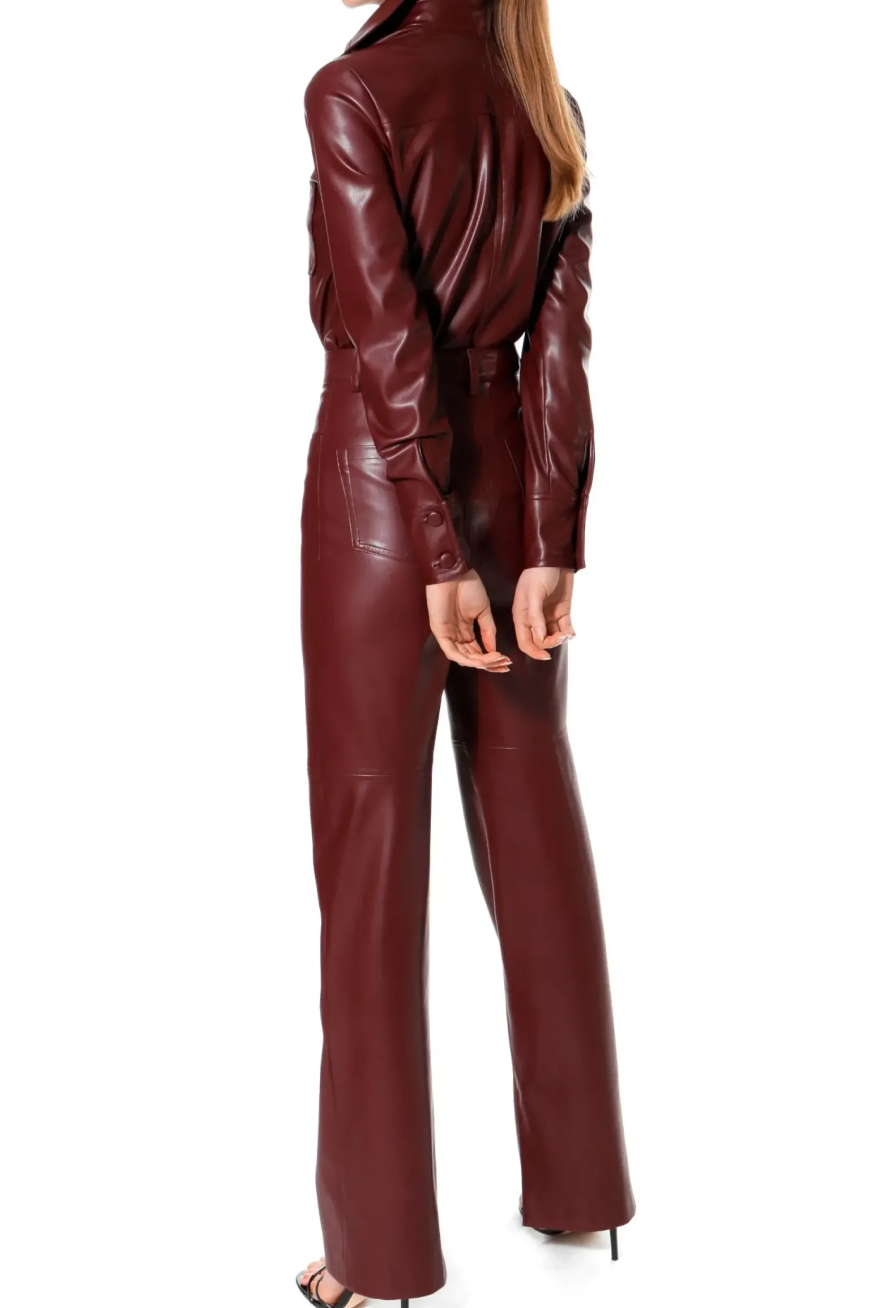 Koszula Wykonana Z Miekkiej, Delikatnej W Dotyku, Wysokogatunkowej Skory Weganskiej. Projekt Utrzymany W Klimacie Lat 70-Tych. Szpiczasty Kolnierzyk Na Stojce, Dlugie Rekawy Zakonczone Waskimi Mankietami Zapinanymi Na Oblekane Guziki. Drobiazgowo Dopracowane Detale, Male, Nakladane Kieszonki Na Przodzie Bluzki, Ozdobne Stebnowania, Guziki Oblekane Skora Weganska.