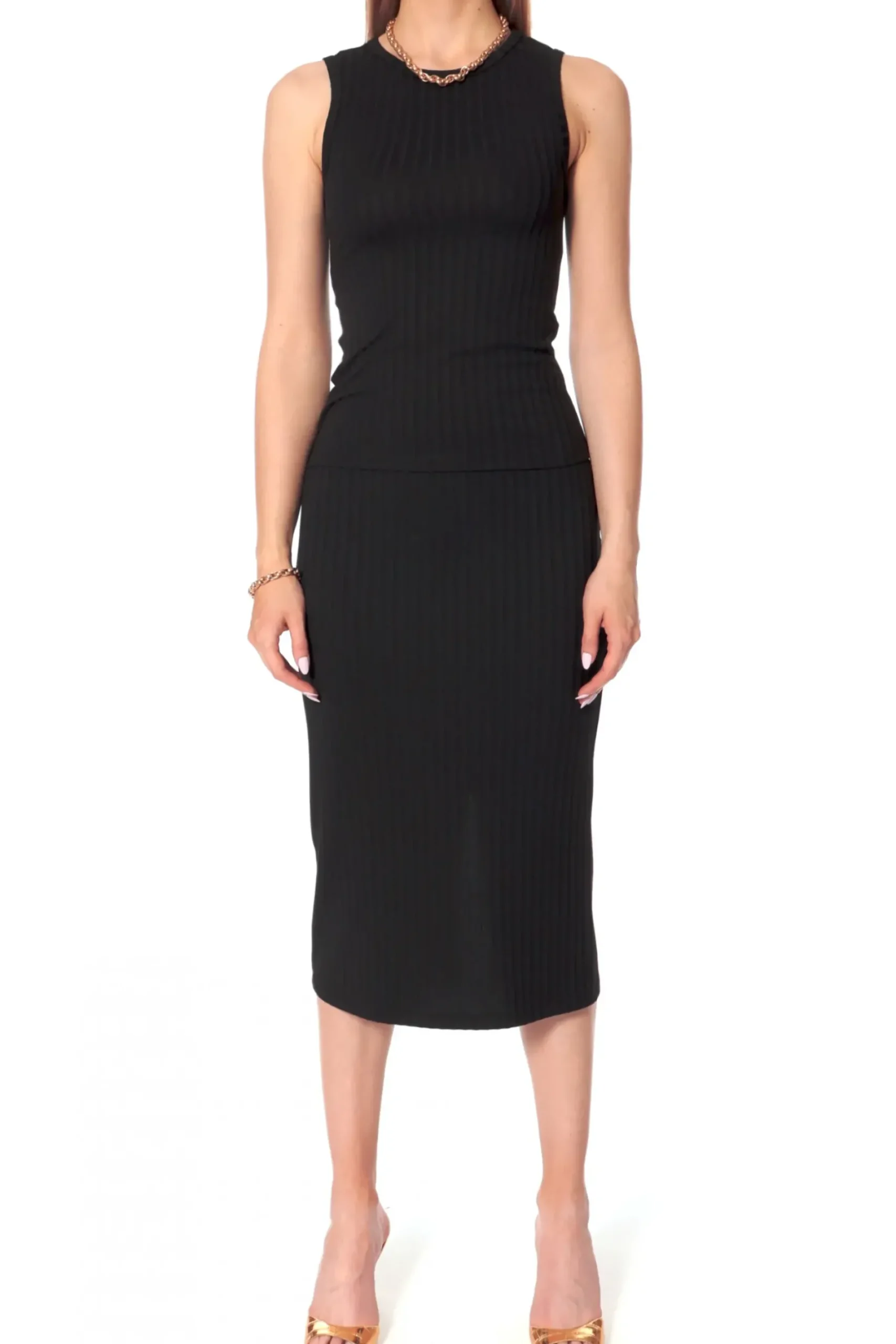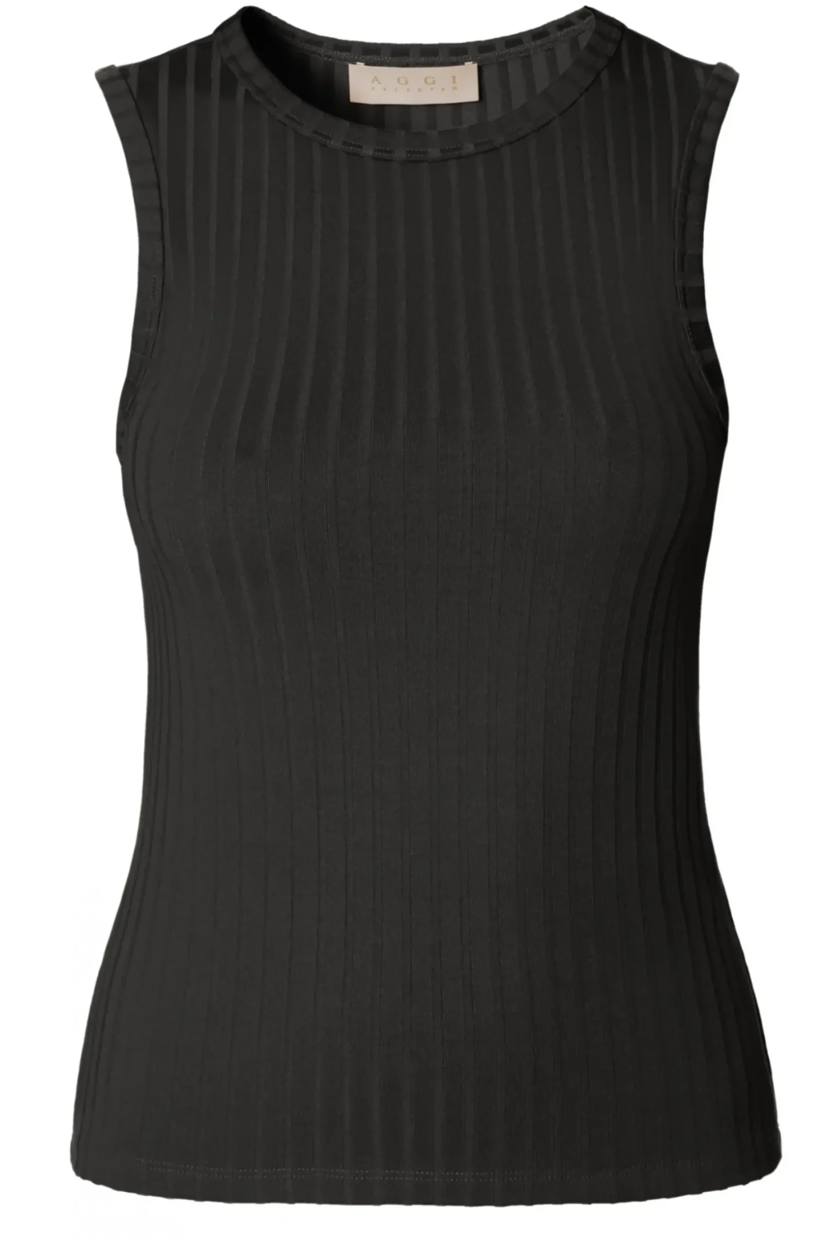Top Na Ramiaczkach Uszyty Z Prazkowanego Elastycznego Materialu Dopasowujacego Sie Do Ciala W Kolorze Czarnym. Idealnie Pasuje Do Roznych Stylizacji, A Z Spodnica Rita Pirate Black Stworzy Idealny Zestaw.