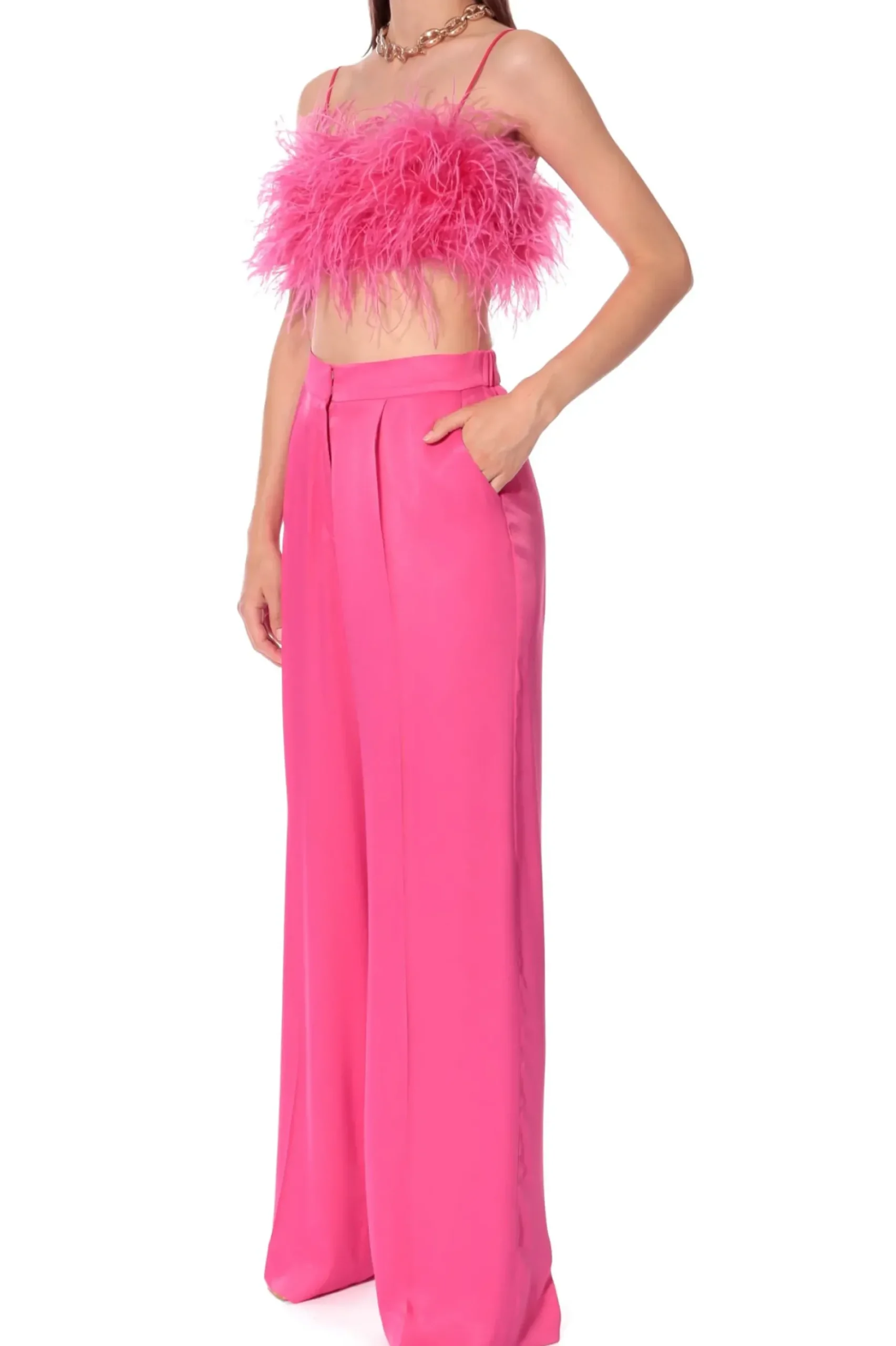 Zmyslowy Wieczorowy Top Uszyty Ze Strusich Pior Na Subtelnych Ramiaczkach Typu Makaroniki.