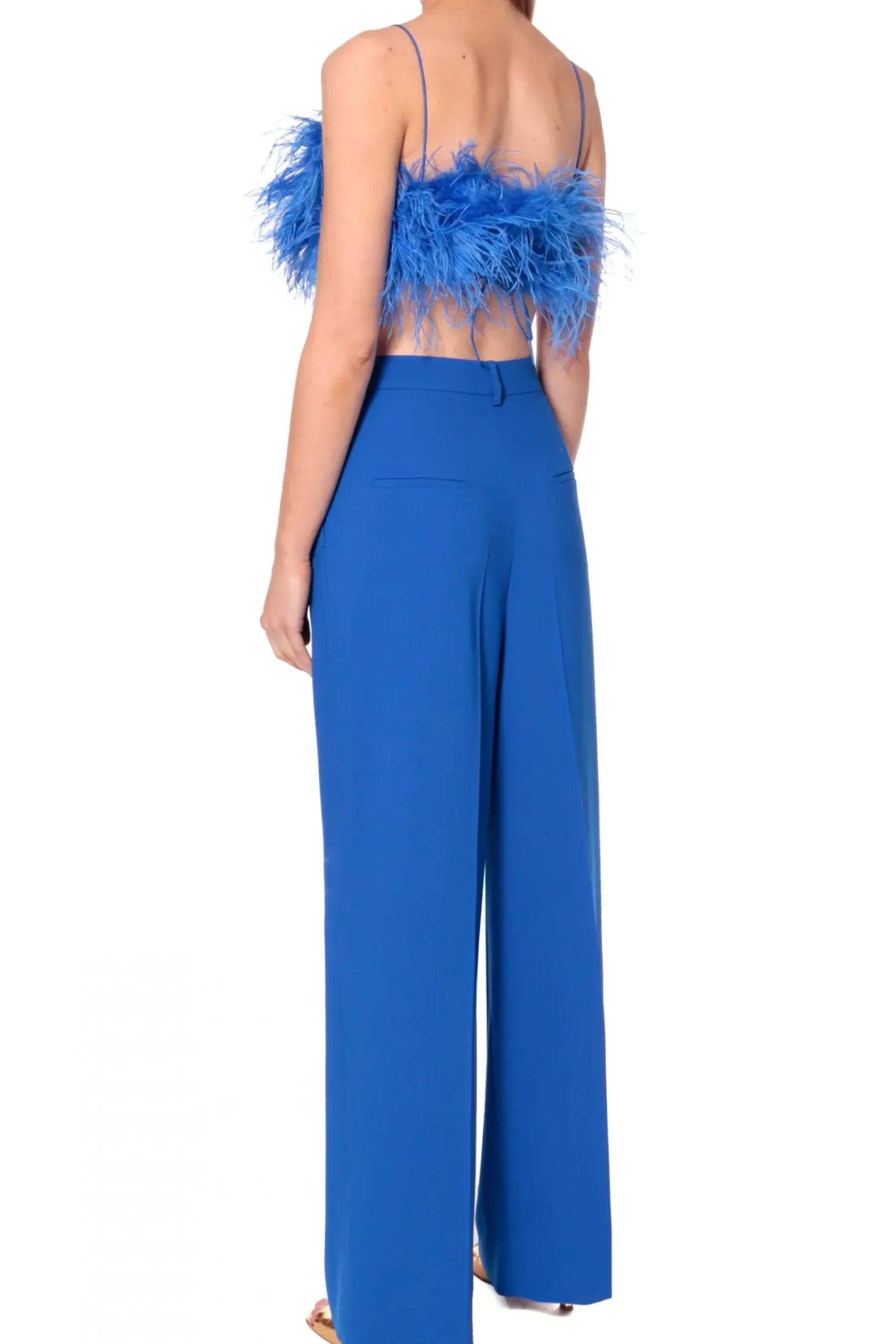 Zmyslowy Wieczorowy Top Uszyty Ze Strusich Pior Na Subtelnych Ramiaczkach Typu Makaroniki.