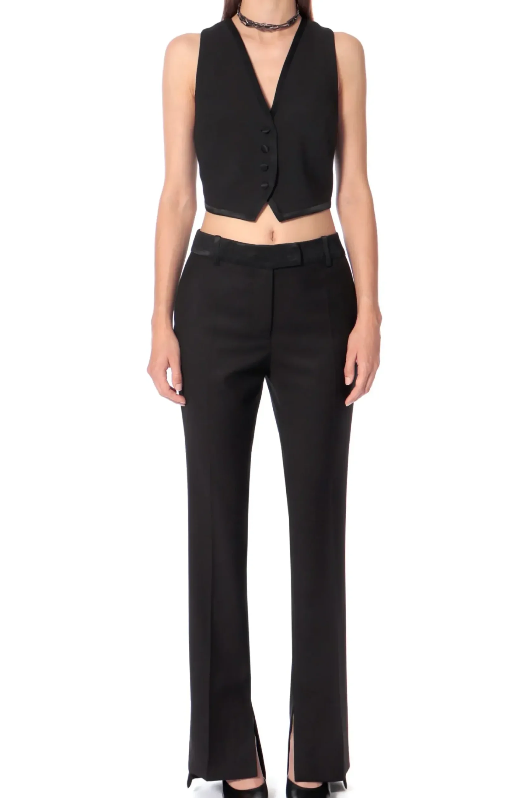 Kamizelka Uma Fashion Black To Kunsztownie Zaprojektowane I Odszyte Z Pieczolowitoscia Cacko Sztuki Krawieckiej. Polaczenie Dwoch Tkanin- Matowego, Sredniej Grubosci Miesistego Diagonalu Z Ktorego Skrojone Sa Przody I Boki Kamizelki Oraz Atlasu O Subtelnym Polysku, Ktory Zostal Wykorzystany Jako Obramowanie , Tyl Kamizelki I Detale – Patka Do Regulacji Oraz Obleczenie Guzikow I Klamerki. Calosc Na Zakardowej Podszewce W Orientalny Desen.