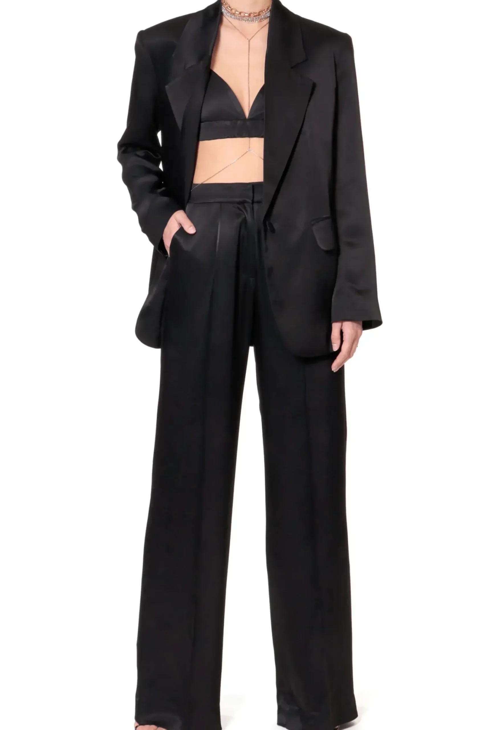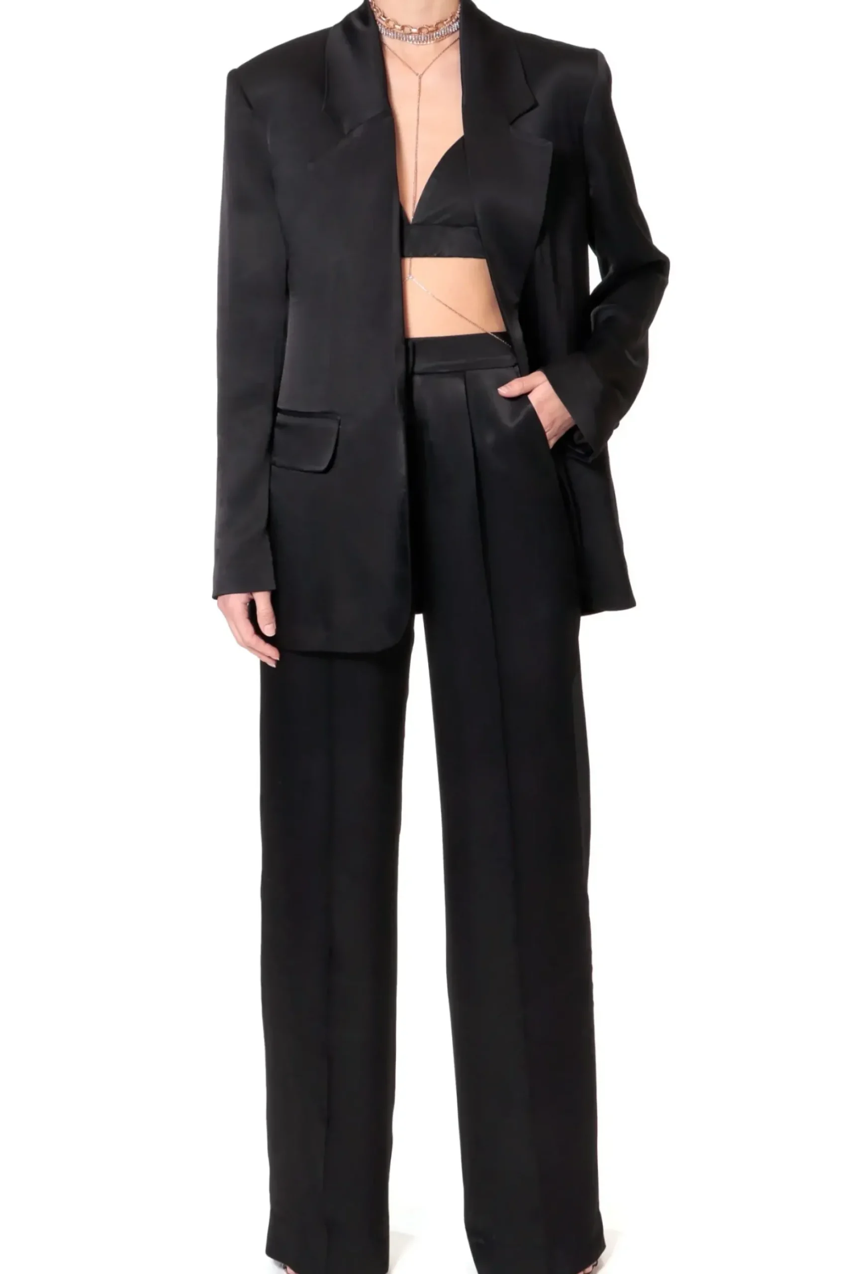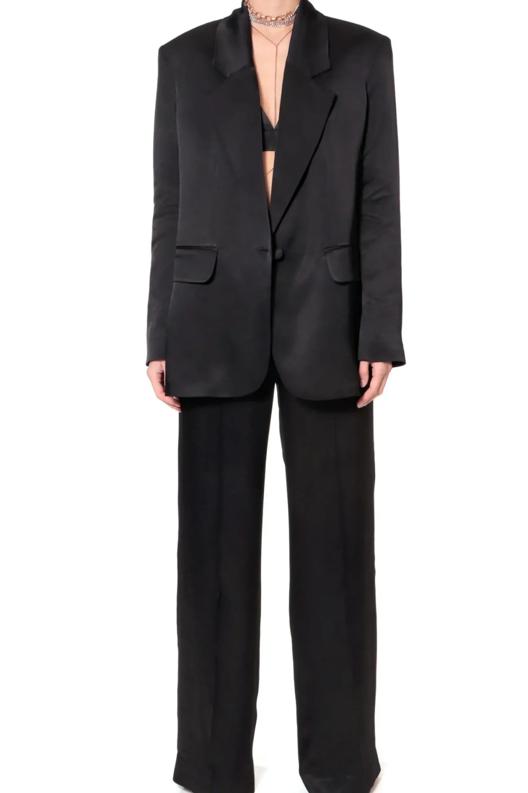 Jednorzedowa Atlasowa Marynarka O Luznym, Nieco Nonszalanckim Kroju Kroju Z Charakterystycznym Dla Projektow Aggi Kunsztem Konstrukcyjnym Zaakcentowanym W Mocniejszej, Zdecydowanie Podkreslonej Linii Ramion Oraz Precyzyjnie Wymodelowanych Klapach. Dlugie Rekawy, Miekko Ukladajaca Sie Miesista, Szlachetna Tkanina Atlasowa Pozwala Odkryc W Projekcie Zarowno Dzienny Jak I Wieczorowy Charakter Marynarki. Calosc Na Delikatnej Szyfonowej Podszewce.