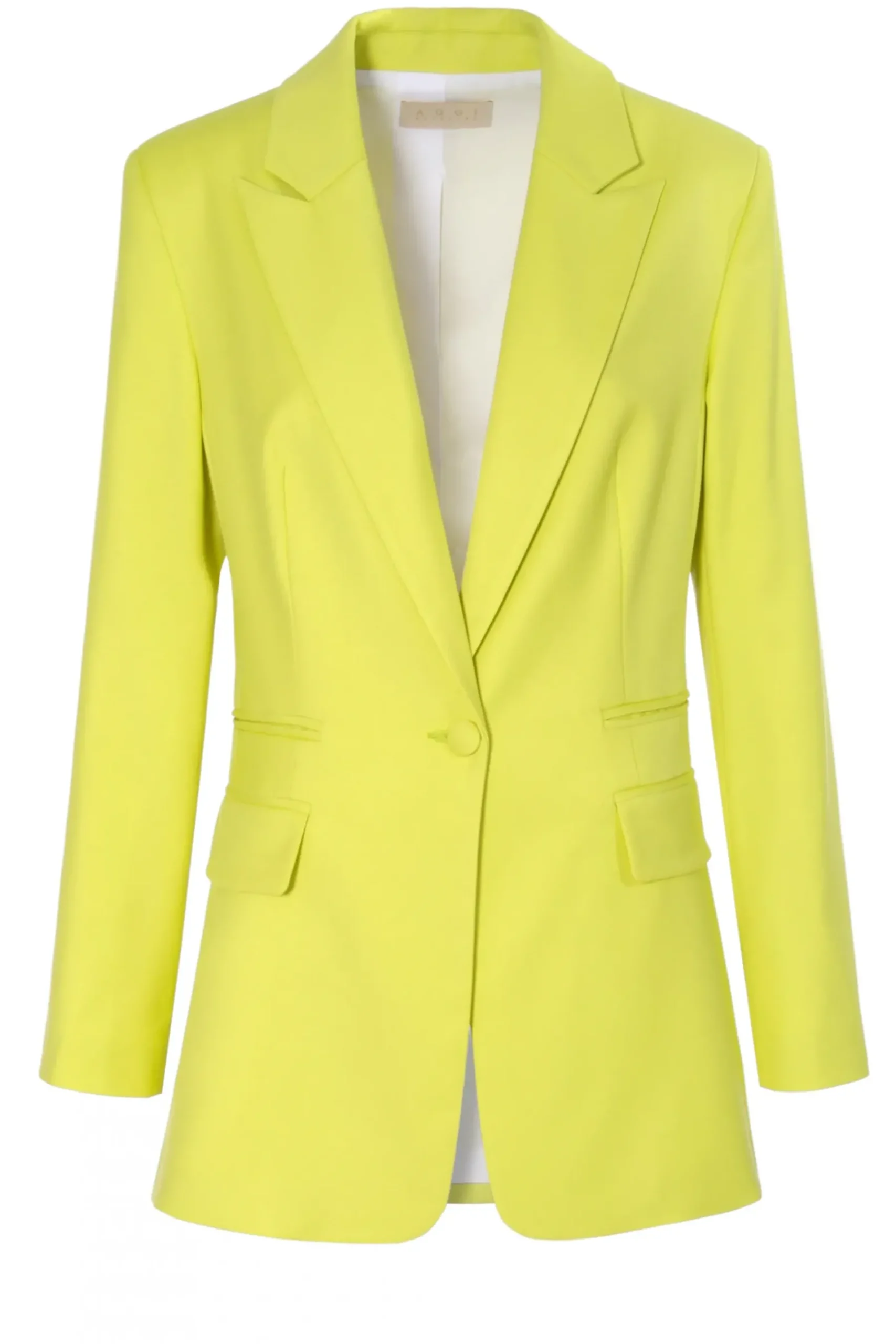 Dluga Jednorzedowa Marynarka Z Klasycznym Kolnierzem I Dlugim Dekoltem. Delikatna Linia Ramion Oraz Lekko Podkreslona Talia Dodaja Kobiecosci I Elegancji. Nos Ja Z Szortami Lucy Wild Lime.