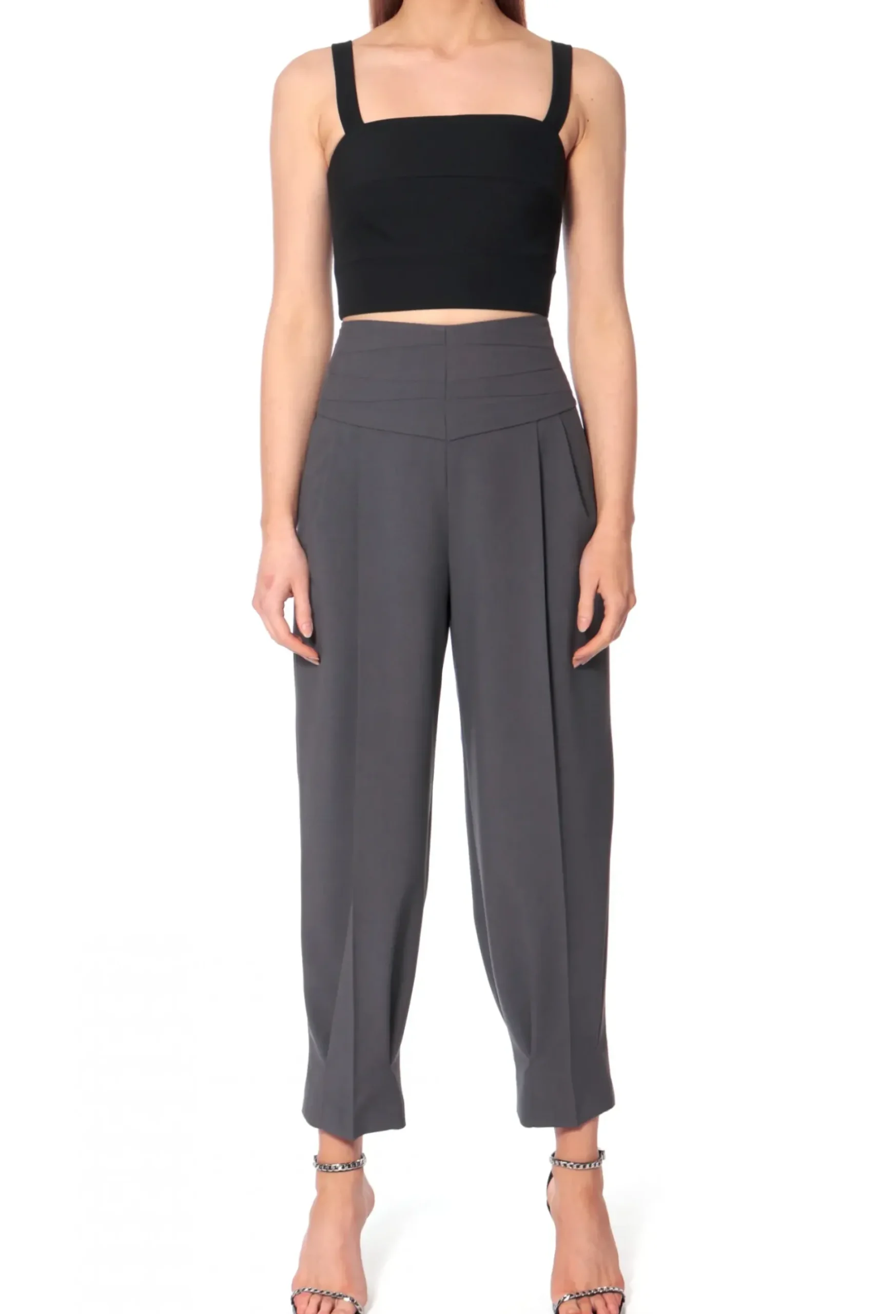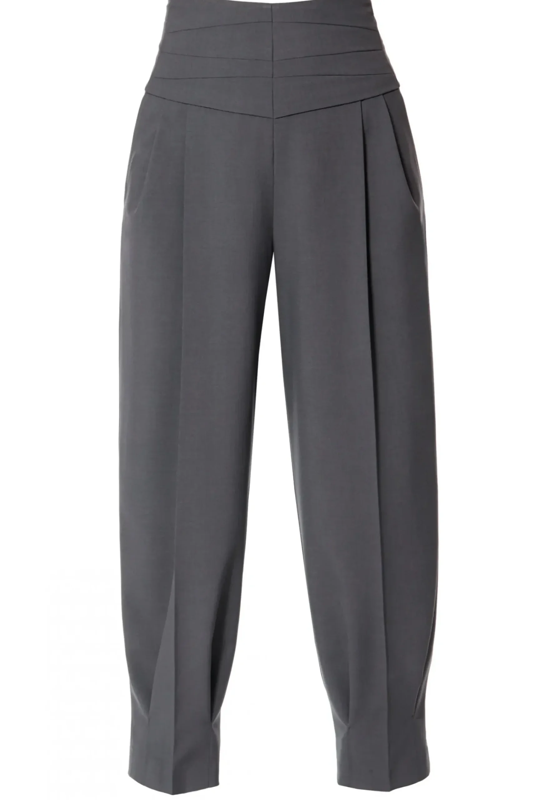 Spodnie Z Misternie Plisowanym Karczkiem I Zakladkami. Zakladki Tworza Efekt Przestrzennych, „Napompowanych” Nogawek.