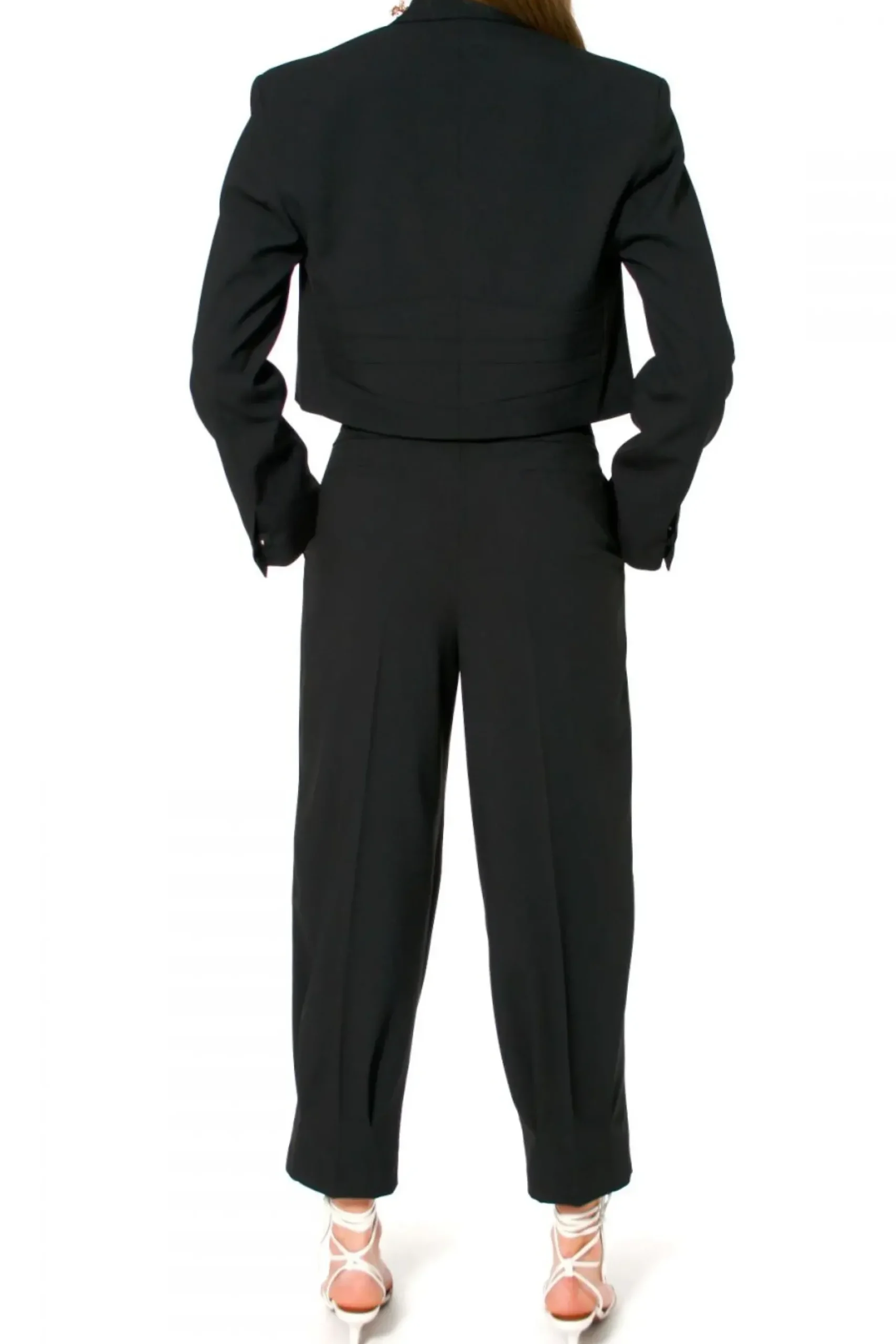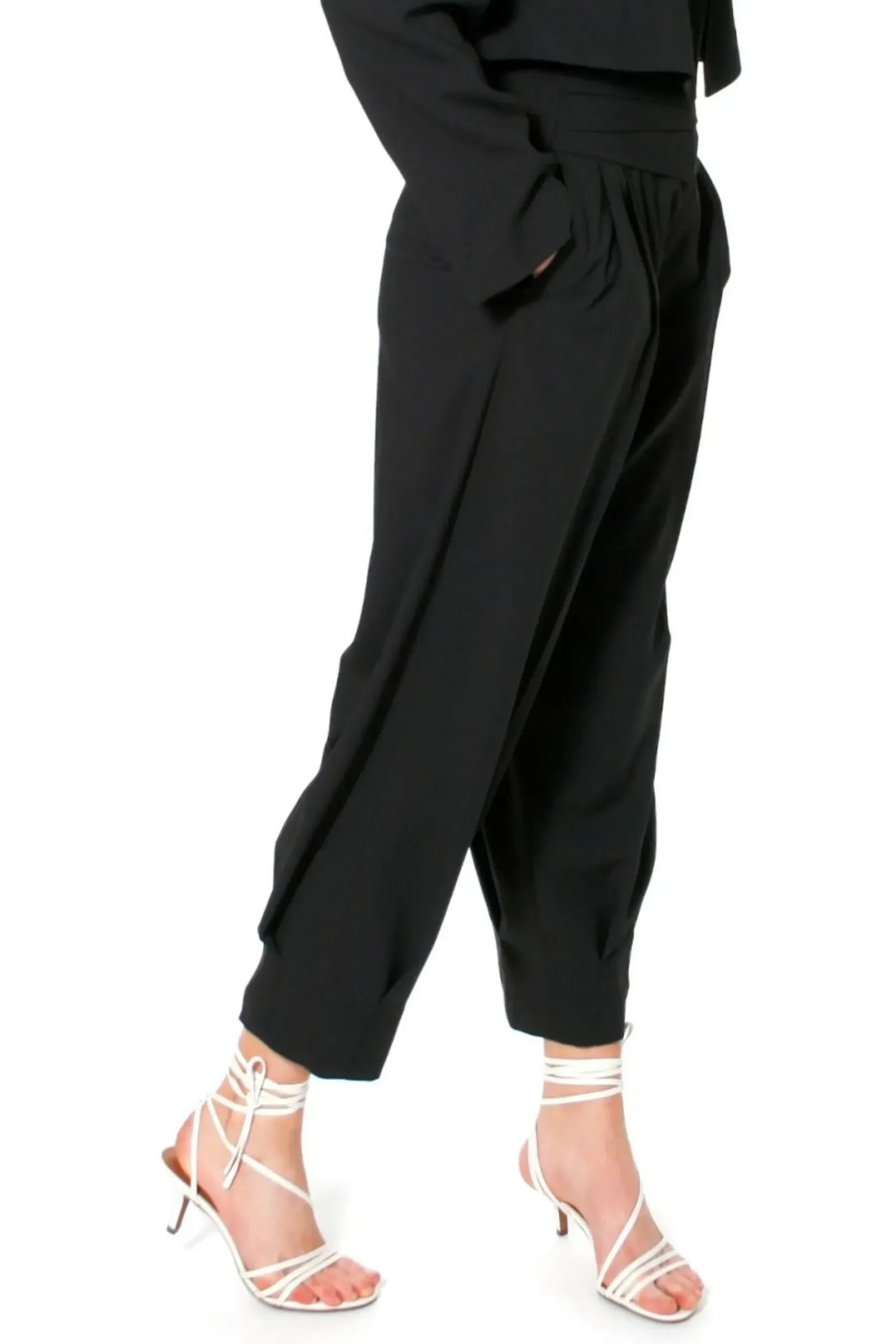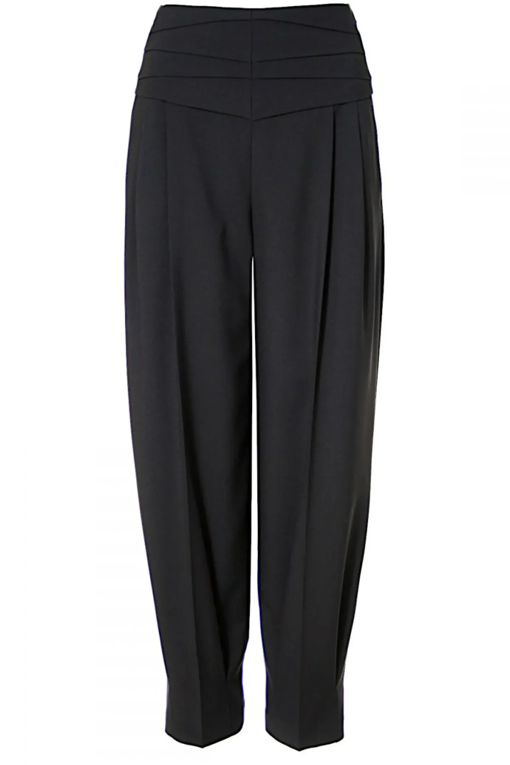 Spodnie Z Misternie Plisowanym Karczkiem I Zakladkami. Zakladki Tworza Efekt Przestrzennych, „Napompowanych” Nogawek.