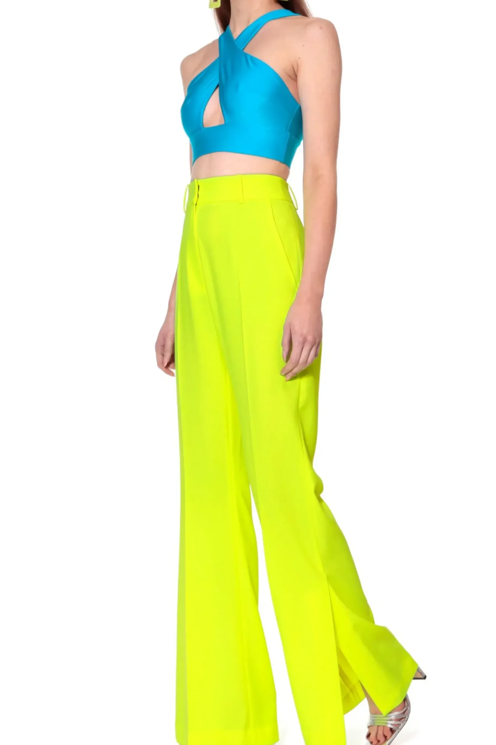 Neonowo Zolte Spodnie Dzwony Z Rozcieciami Na Zewnetrznej Stronie Nogawek.