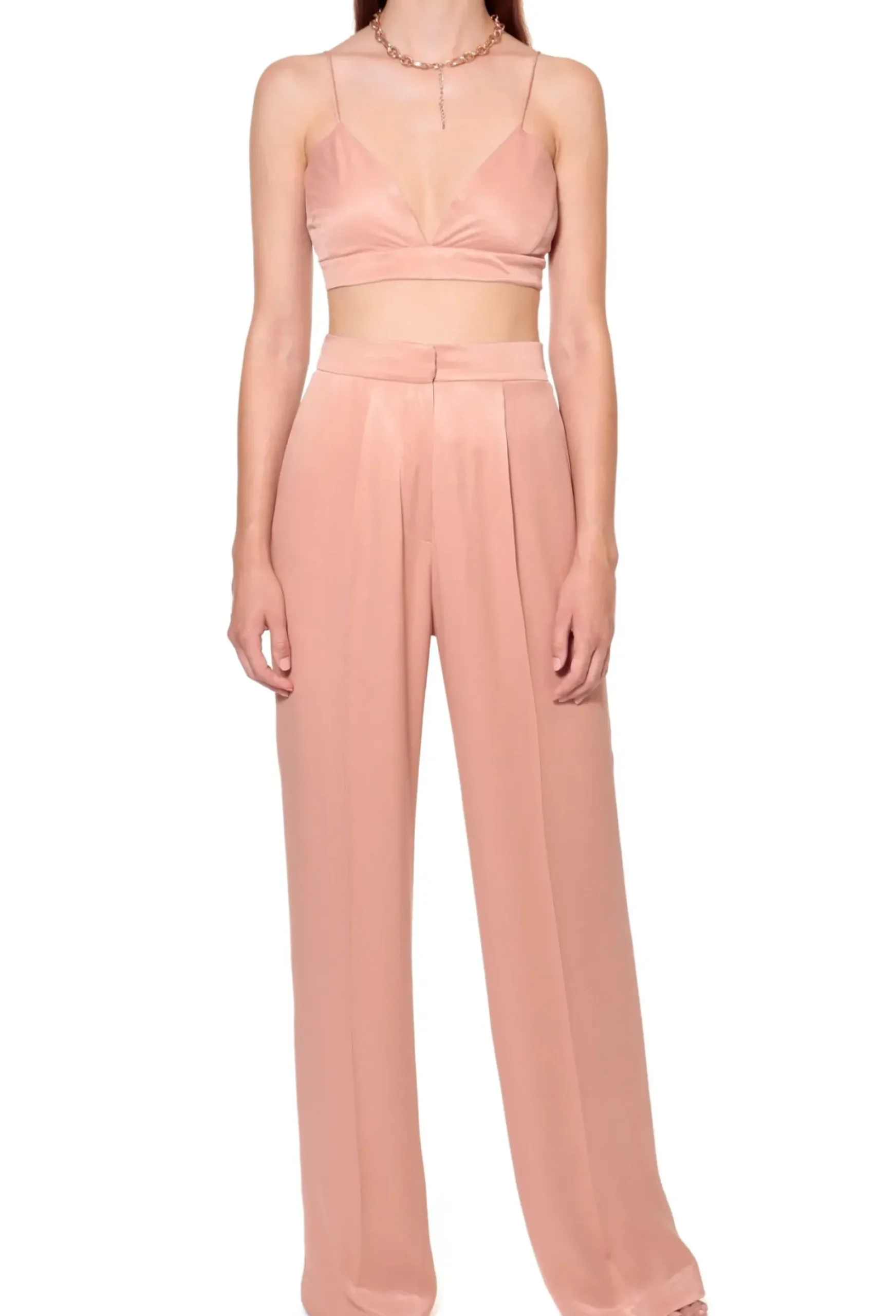 Atlasowe Spodnie Z Wyzszym Stanem Uszyte Z Miesistej, Szlachetnej, Miekko Ukladajacej Sie Tkaniny. Szerokie Proste Nogawki Nadaja Strzelistosci Sylwetce. Nos Je W Elegancki Sposob Do Klapek Na Obcasie Jako Wieczorowa Stylizacje Lub Swobodnie Do Klapek Birkenstock Lekko Obnizajac Je W Talii Tworzac Pozornie Niedbaly Pizamowy Styl. Marynarka Bellamy Satin Interface Tan I Staniczek Asha Satin Interface Tan Idealnie Dopelnia Twoja Stylizacje. Spodnie Posiadaja Wygodne Boczne Kieszenie I Elastyczny Tyl Paska.