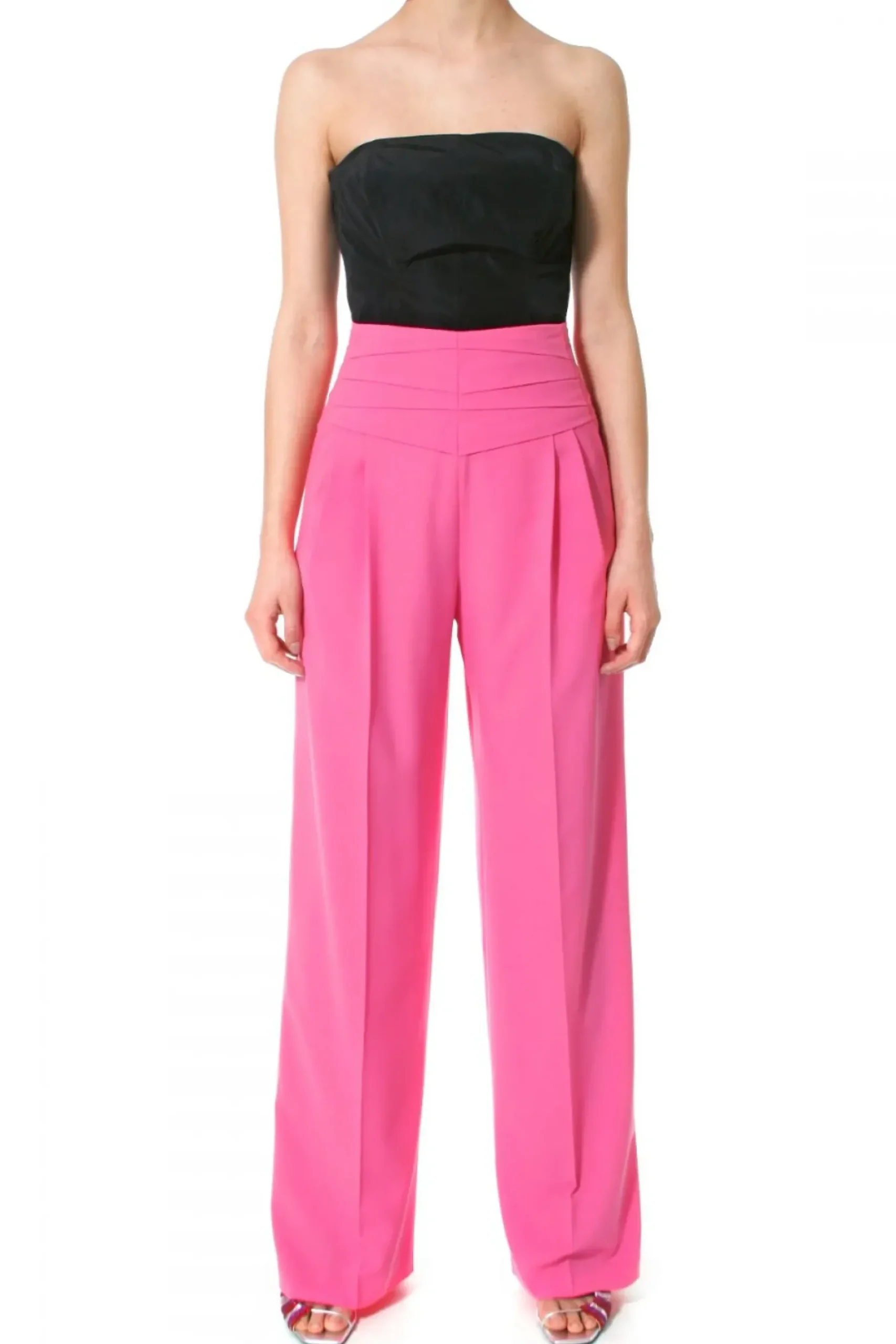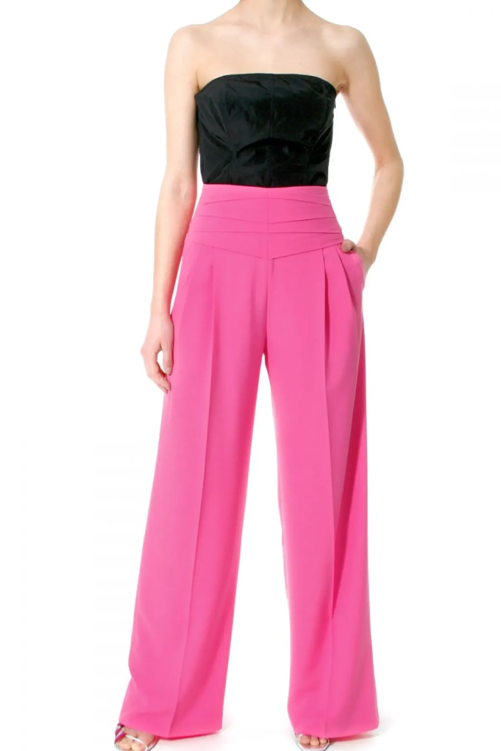 Szerokie, Dlugie Spodnie Z Zakladkami I Kieszeniami Ukrytymi W Bocznych Szwach. Ozdobny, Misternie Plisowany Karczek Modelujacy Talie.