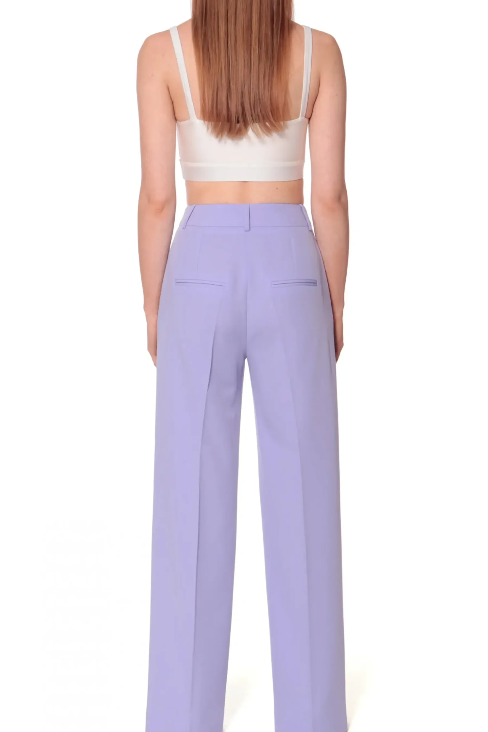 Spodnie Z Wysokim Stanem Uszyte Z Miekko Ukladajacej Sie Tkaniny. Szerokie Proste Nogawki Nadaja Strzelistosci Sylwetce. Spodnie Posiadaja Wygodne Boczne Kieszenie. By Stworzyc Pelny Look Nos Je Z Marynarka Laura Lavender.