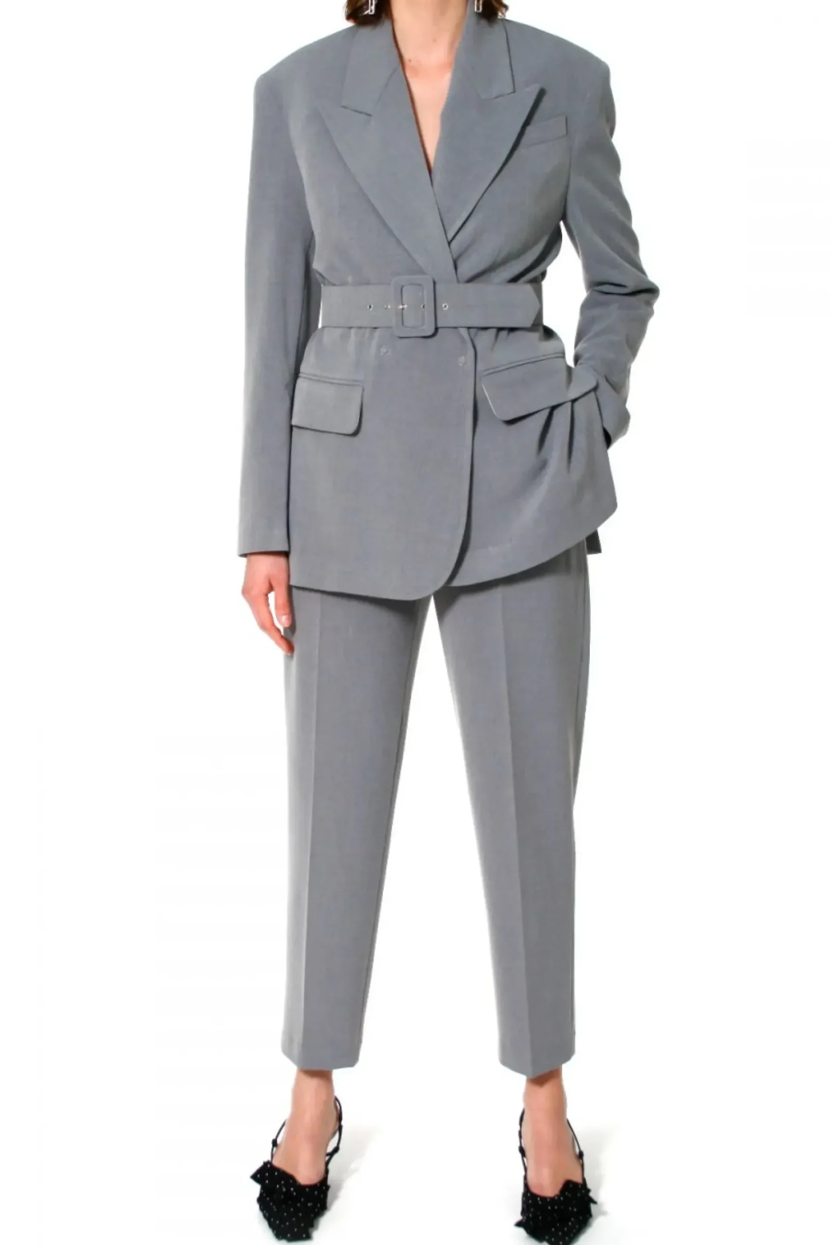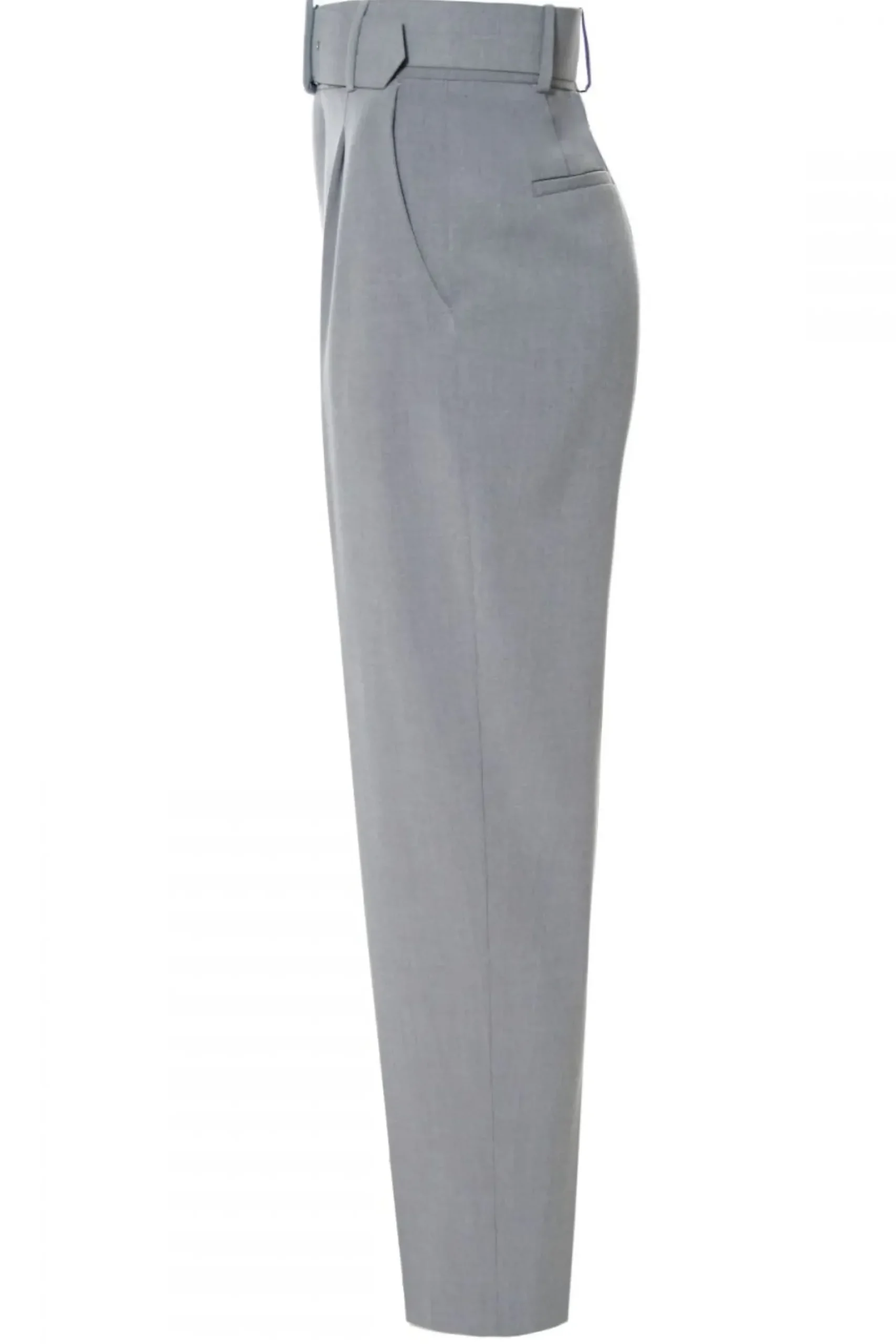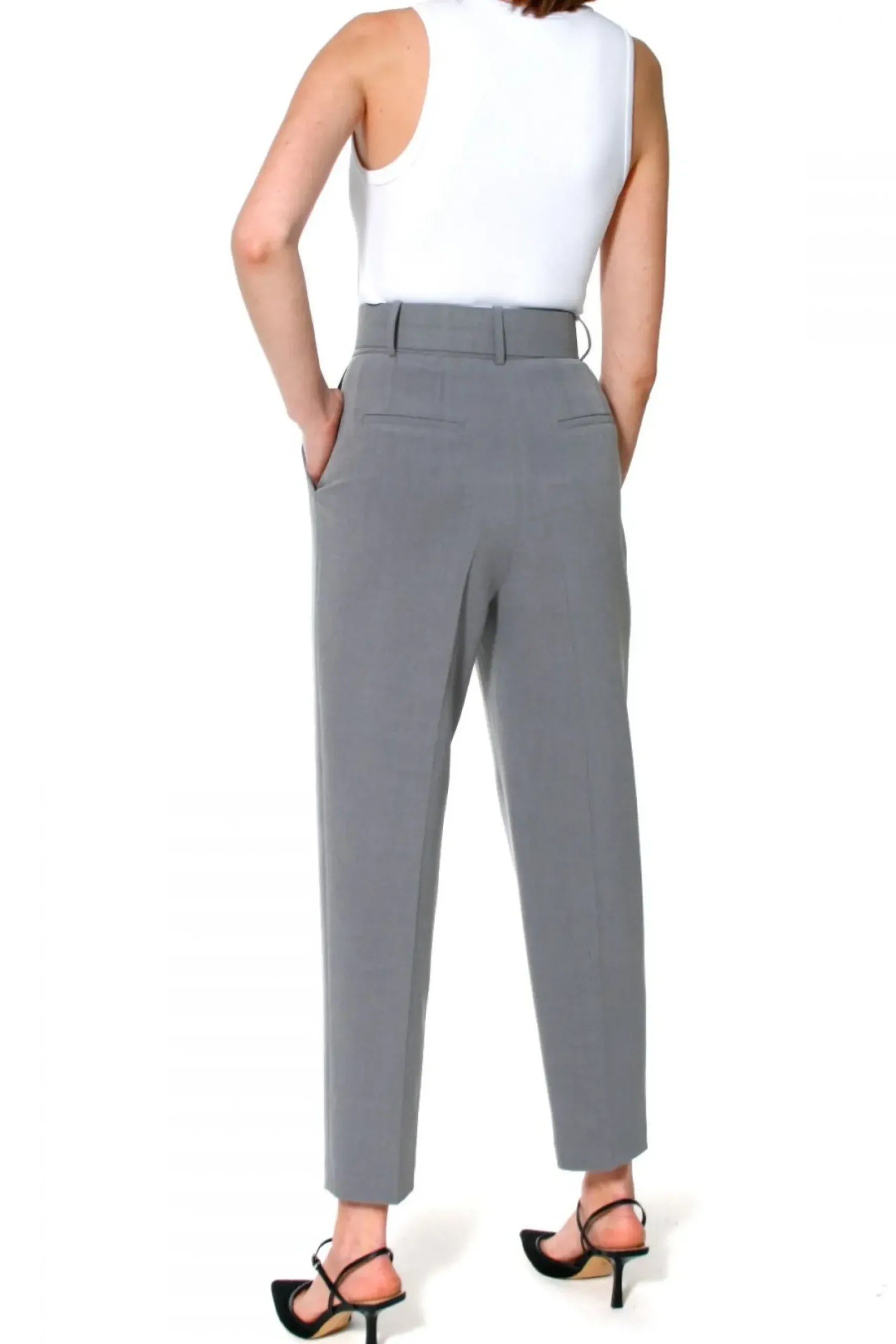 Spodnie Z Wysoka Talia, Zakladkami W Pasie I Nogawkami Przed Kostke. Pasek Z Oblekana Klamra Rewelacyjnie Eksponuje Talie. Wygodne Kieszenie. Swietne Do Kompozycji Z Marynarka, Bluzka Badz Prostym T-Shirtem.