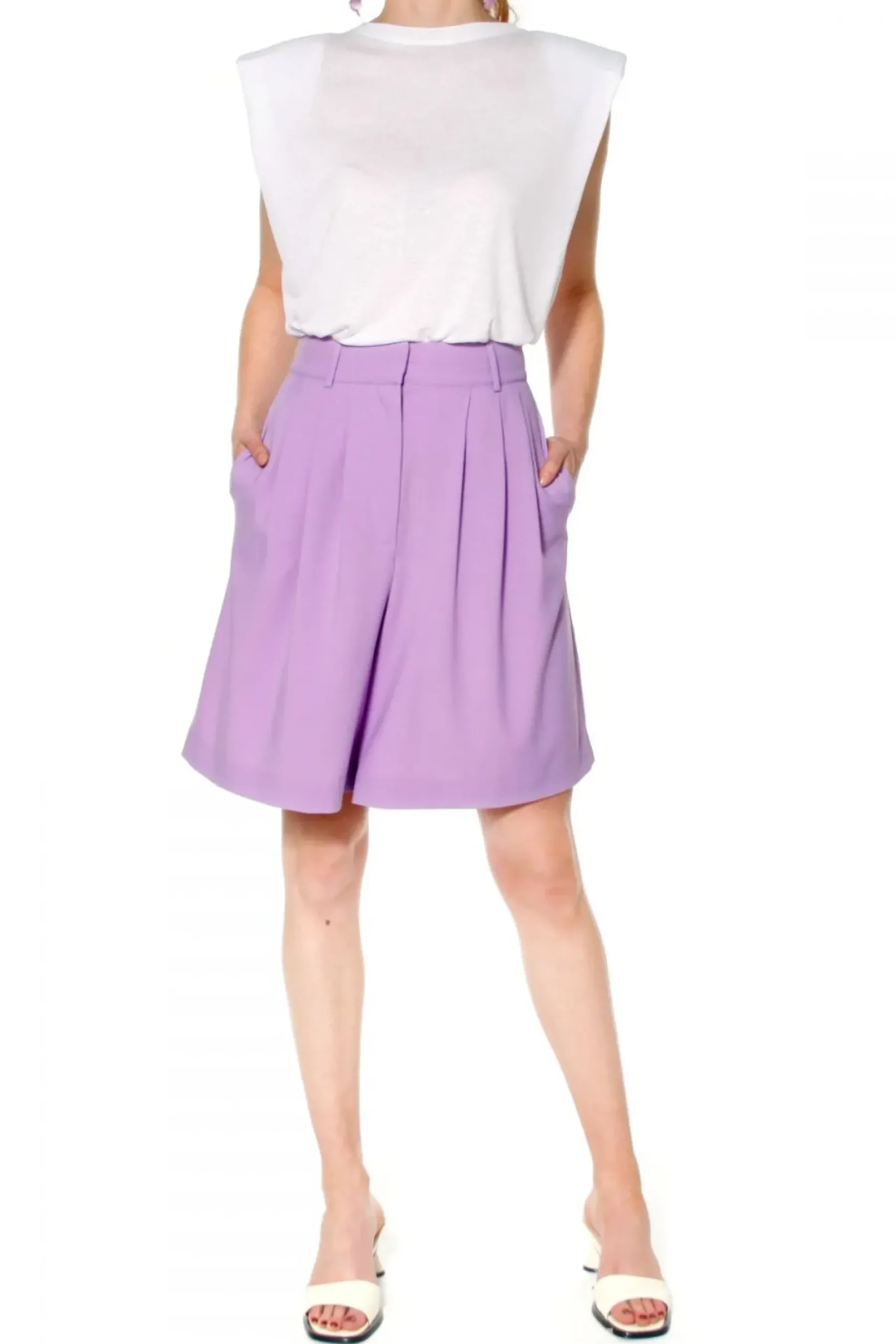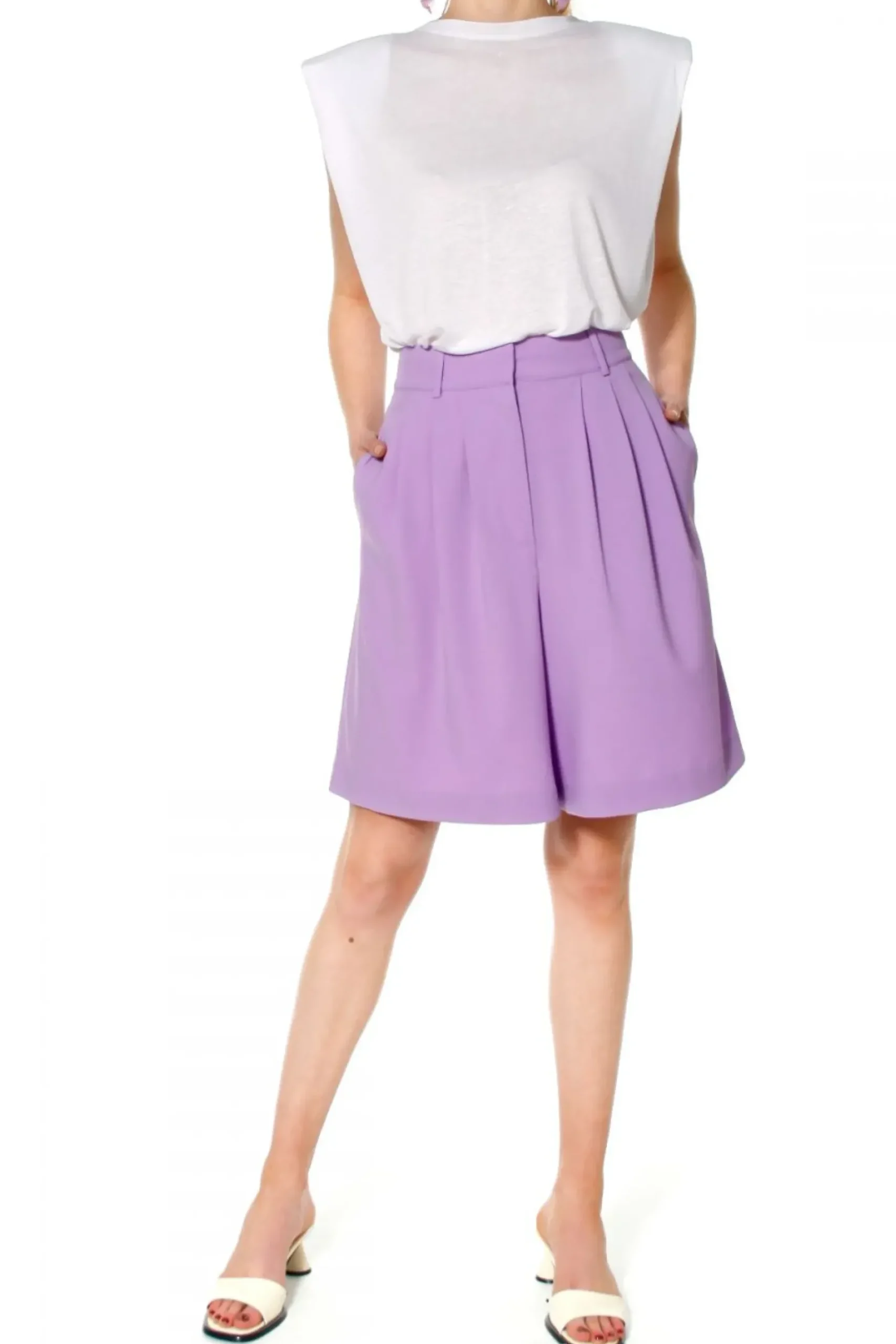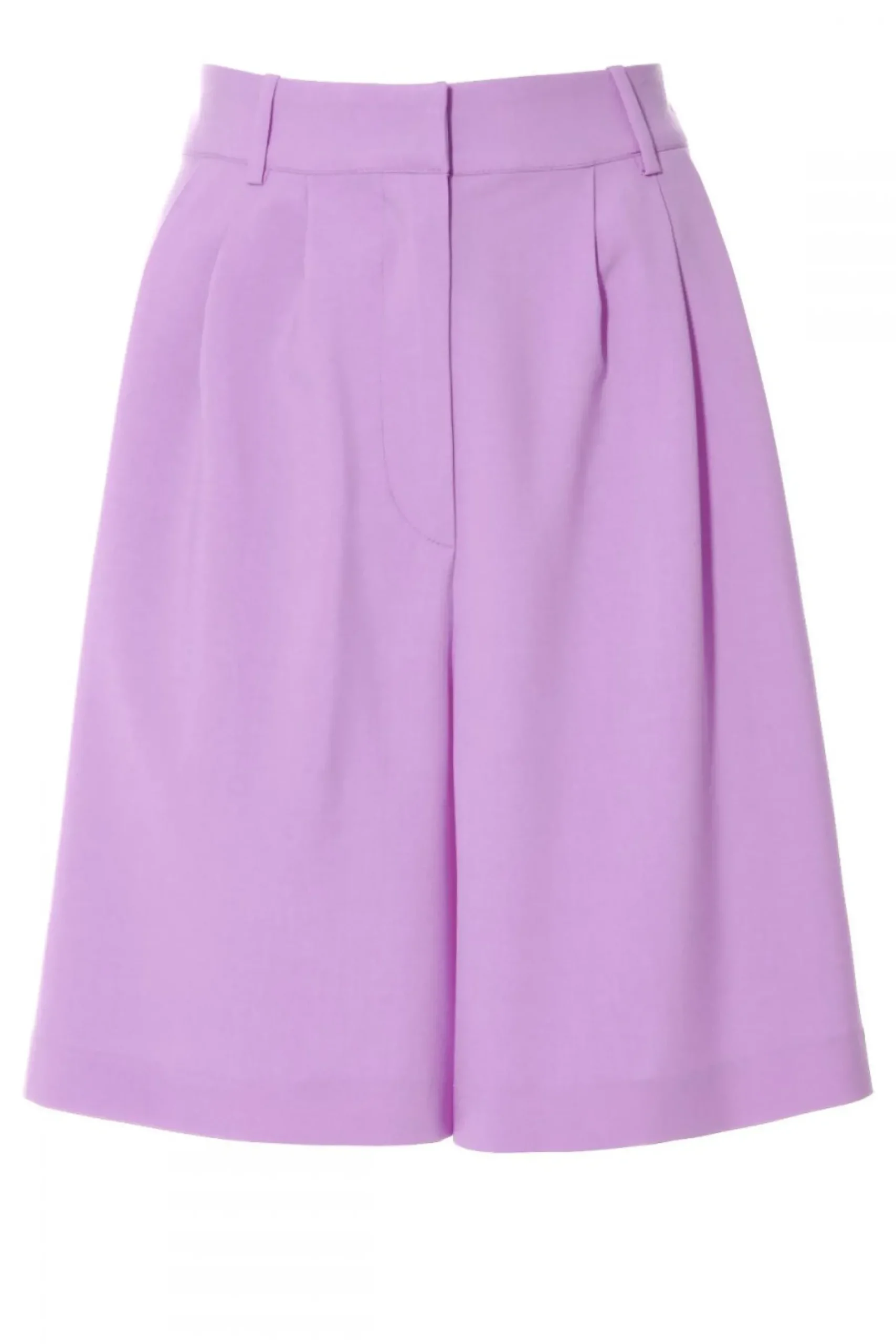 Szerokie Szorty/Bermudy Z Zakladkami Dodajacymi Przestrzeni I Kobiecego Charakteru Projektowi. Wysoki Stan Podkreslajacy Talie. W Szwach Bocznych Ukryte Wygodne Kieszenie.