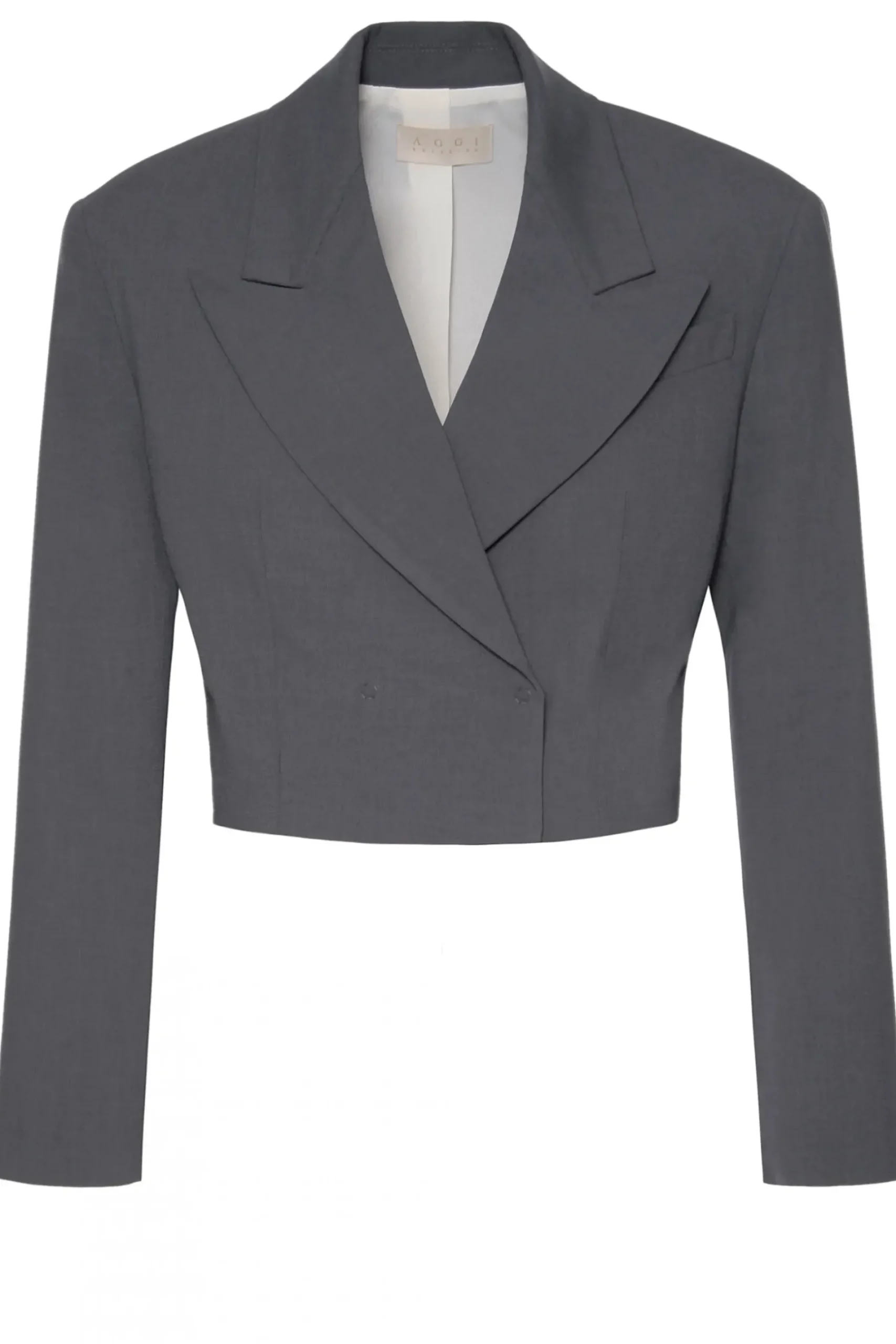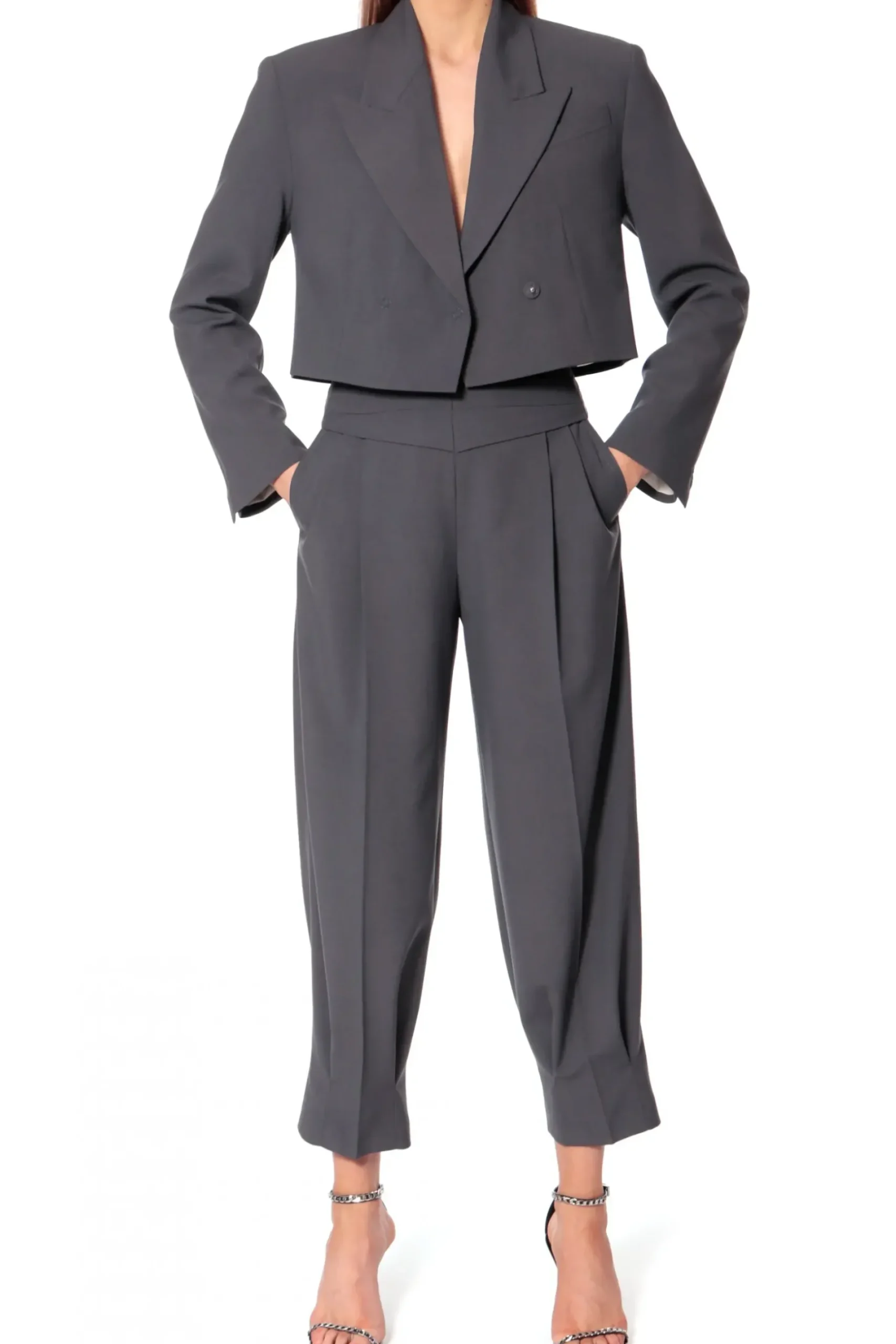 Krotka, Dwurzedowa Marynarka Z Szerokimi Klapami. Z Tylu Ozdobne, Misterne Plisowanie Nadajace Projektowi Unikatowego Charakteru.