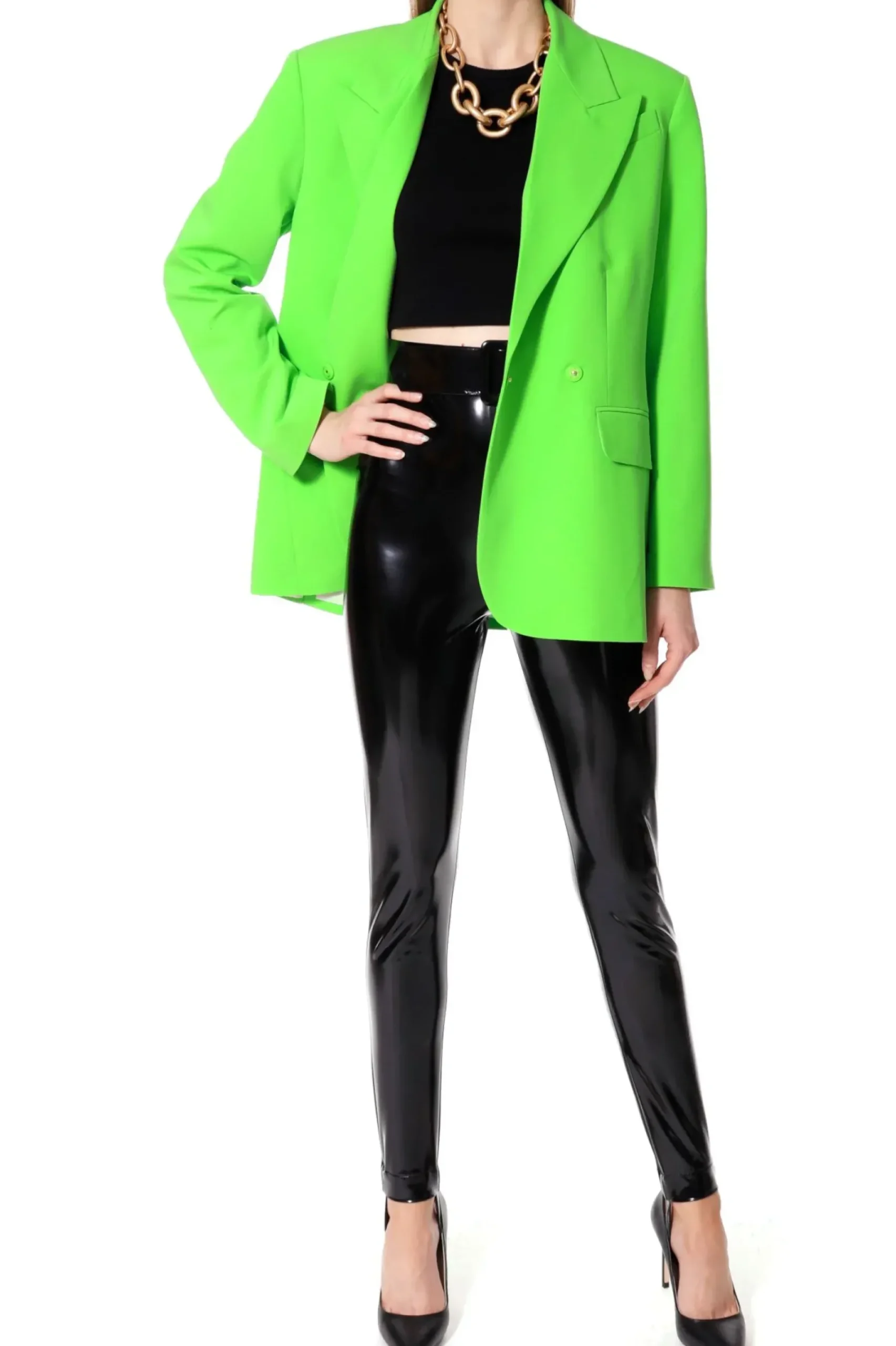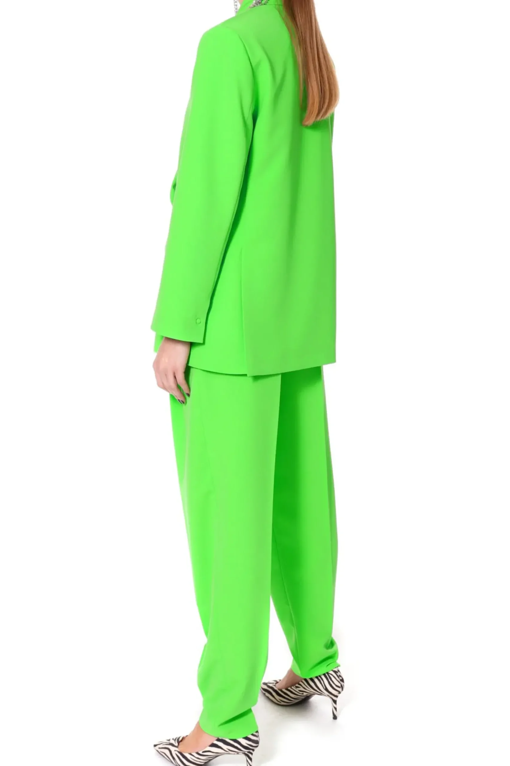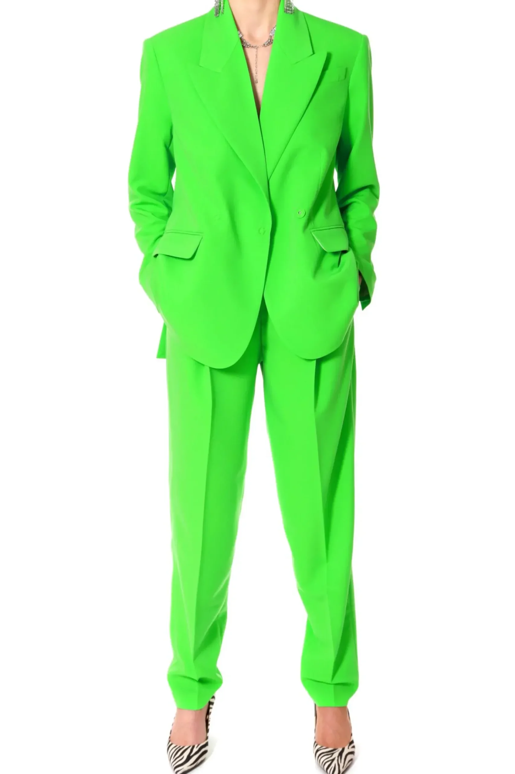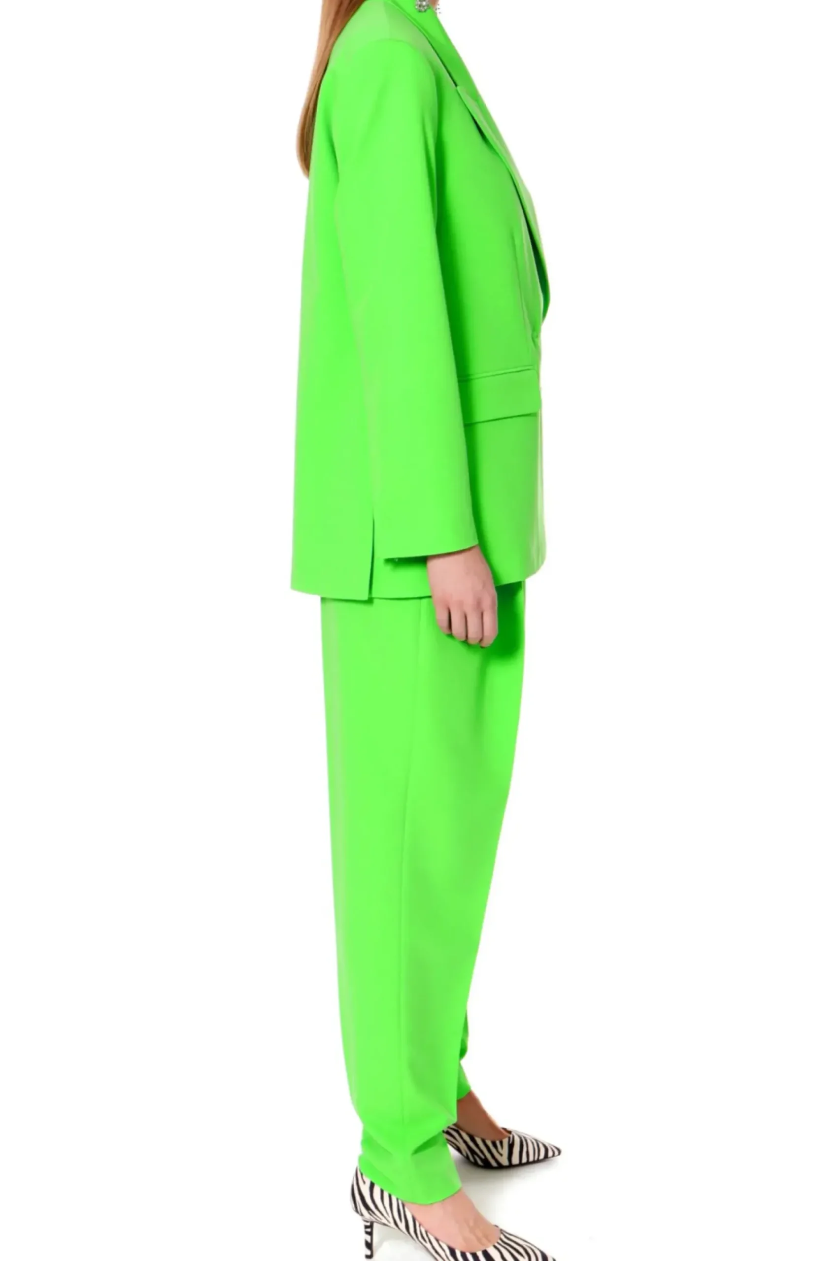 Marynarka O Oversizowym Kroju Inspirowana Marynarka Z Meskiego Garnituru. Maskulinistyczny Fason W Zestawieniu Z Intensywnym Kolorem Tkaniny Tworzy Efektowny, Oryginalny Projekt. Szerokie Klapy, Mocno Zarysowane Ramiona Wystajace Poza Linie Sylwetki, Rozciecia Z Tylu Marynarki.