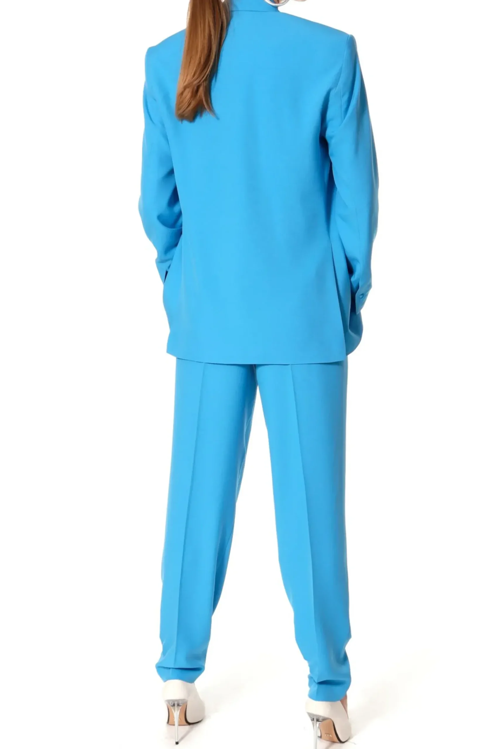 Marynarka O Oversizowym Kroju Inspirowana Marynarka Z Meskiego Garnituru. Maskulinistyczny Fason W Zestawieniu Z Intensywnym Kolorem Tkaniny Tworzy Efektowny, Oryginalny Projekt. Szerokie Klapy, Mocno Zarysowane Ramiona Wystajace Poza Linie Sylwetki, Rozciecia Z Tylu Marynarki.