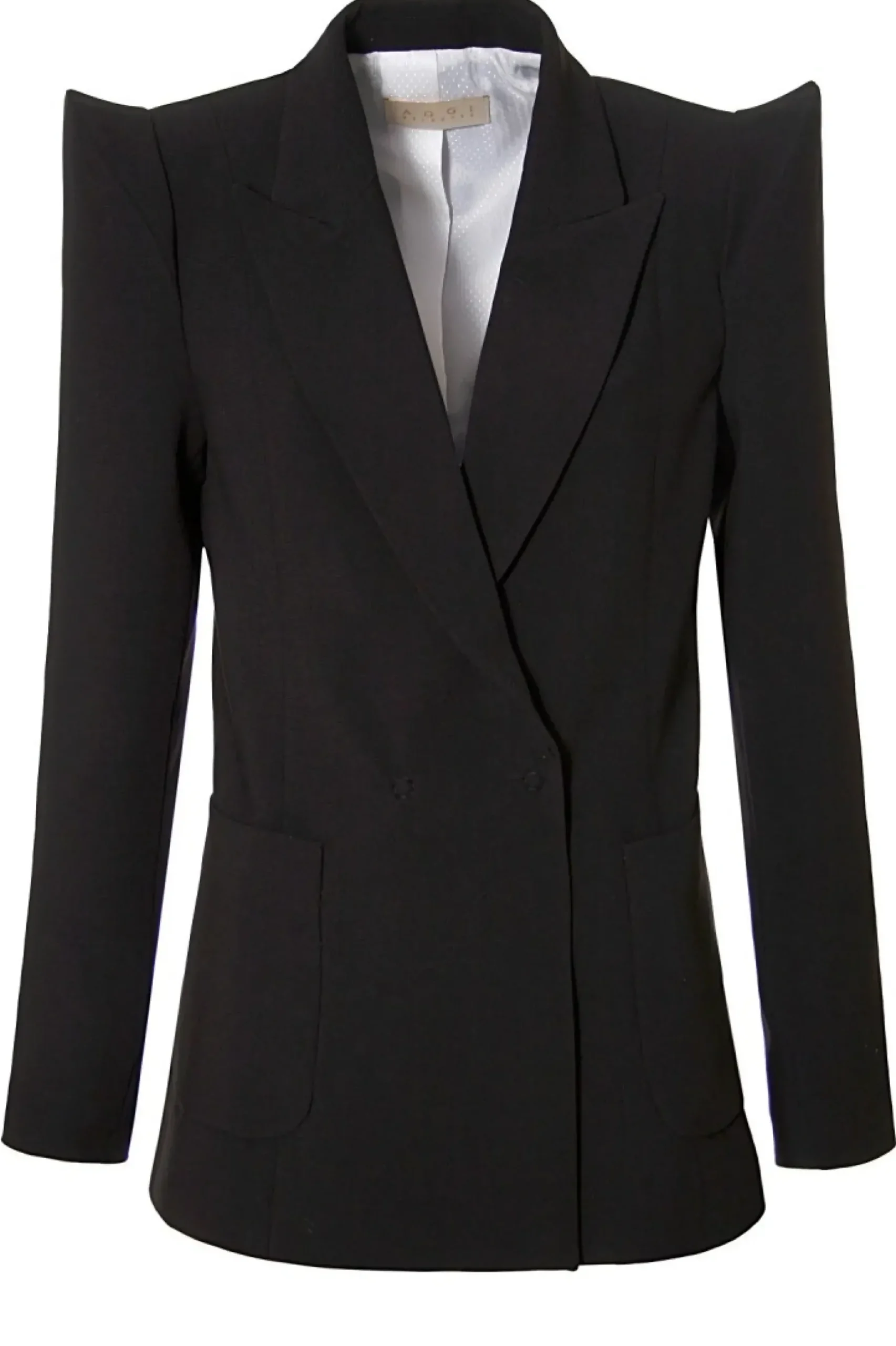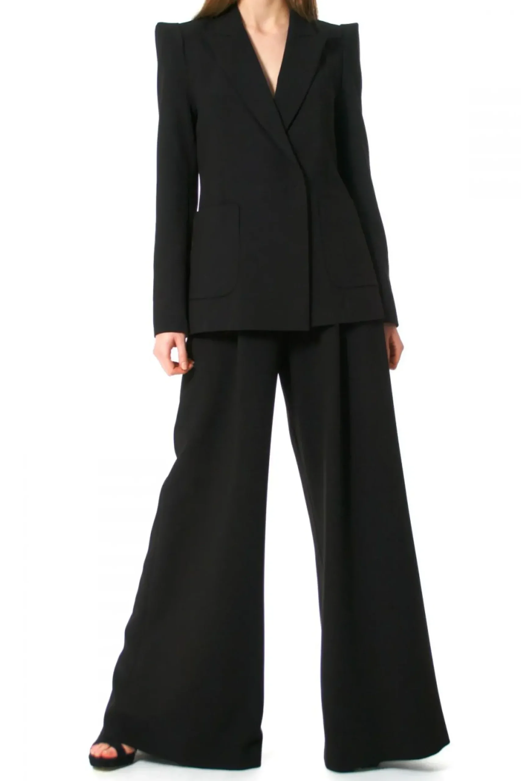 Zakiet O Futurystycznej, Geometrycznej Linii Ramion Przemyslanie Korespondujacej Z Linia Klap. Recznie Nahaftowane Zapiecia Z Przodu I Przy Mankietach. Nakladane Kieszenie. Calosc Na Zakardowej Podszewce W Desen Malenkich Groszkow. Glebokosc Dekoltu Pozwala Na Noszenie Marynarki Bez Bluzki.