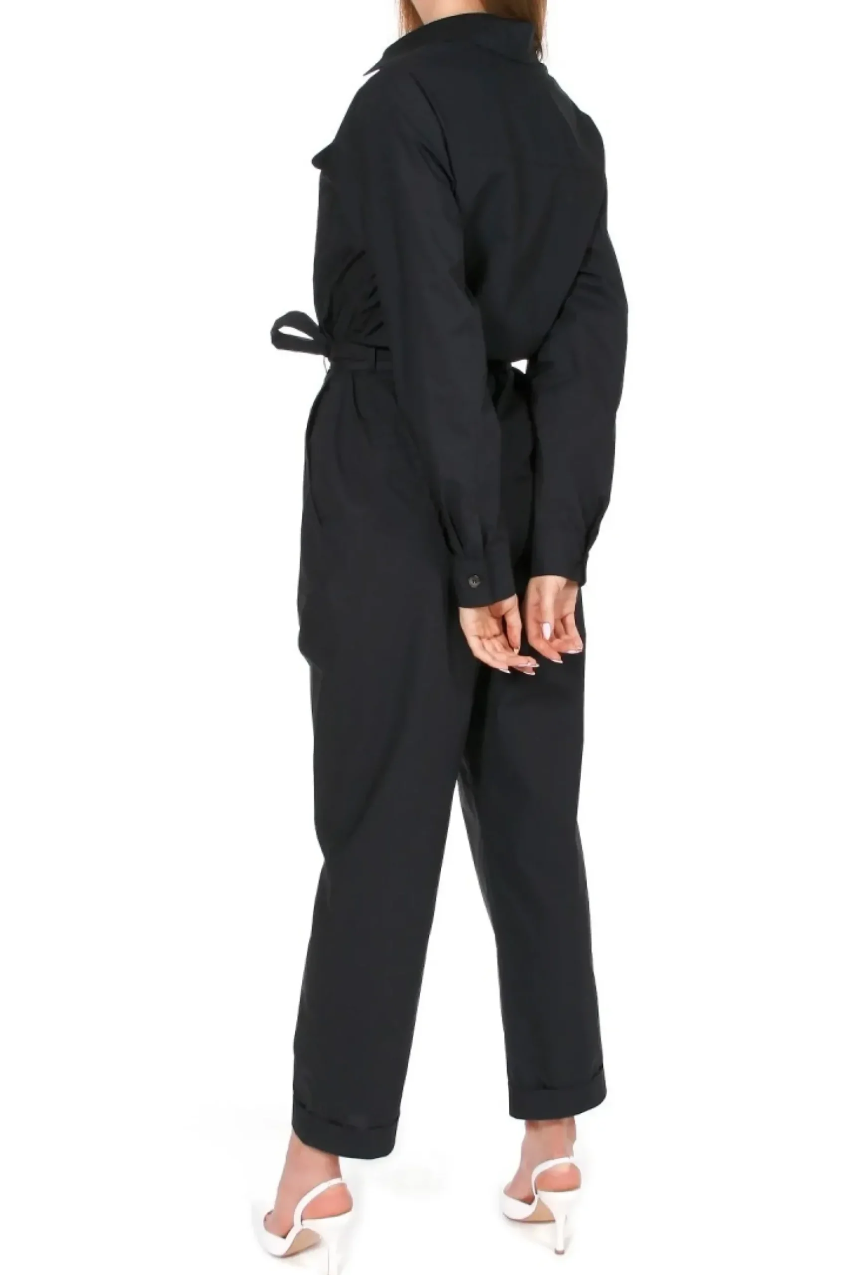 Kombinezon Utility Uszyty Z Lekko Sztywnej Bawelny O Papierowym Chwycie. Oversizowa Linia Modelu Nadaje Projektowi Nonszalancji I Sklania Do Roznych Wariacji Stylizacyjnych. Koszulowa Gora Z Duzymi Nakladanymi Kieszeniami Zapinana Na Szylkretowe Guziki. Czesc Spodniowa Z Glebokimi Kieszeniami. Luzne Nogawki Wykonczone Mankietem Daja Mozliwosc Podwiniecia I Skrocenia. W Talii Szlufki I Wiazany Pasek. Swietnie Komponuje Sie Z Botkami Kowbojskimi, Pantoflami Na Kaczuszce I Z Klasycznymi Sandalami Na Wysokiej Szpilce.