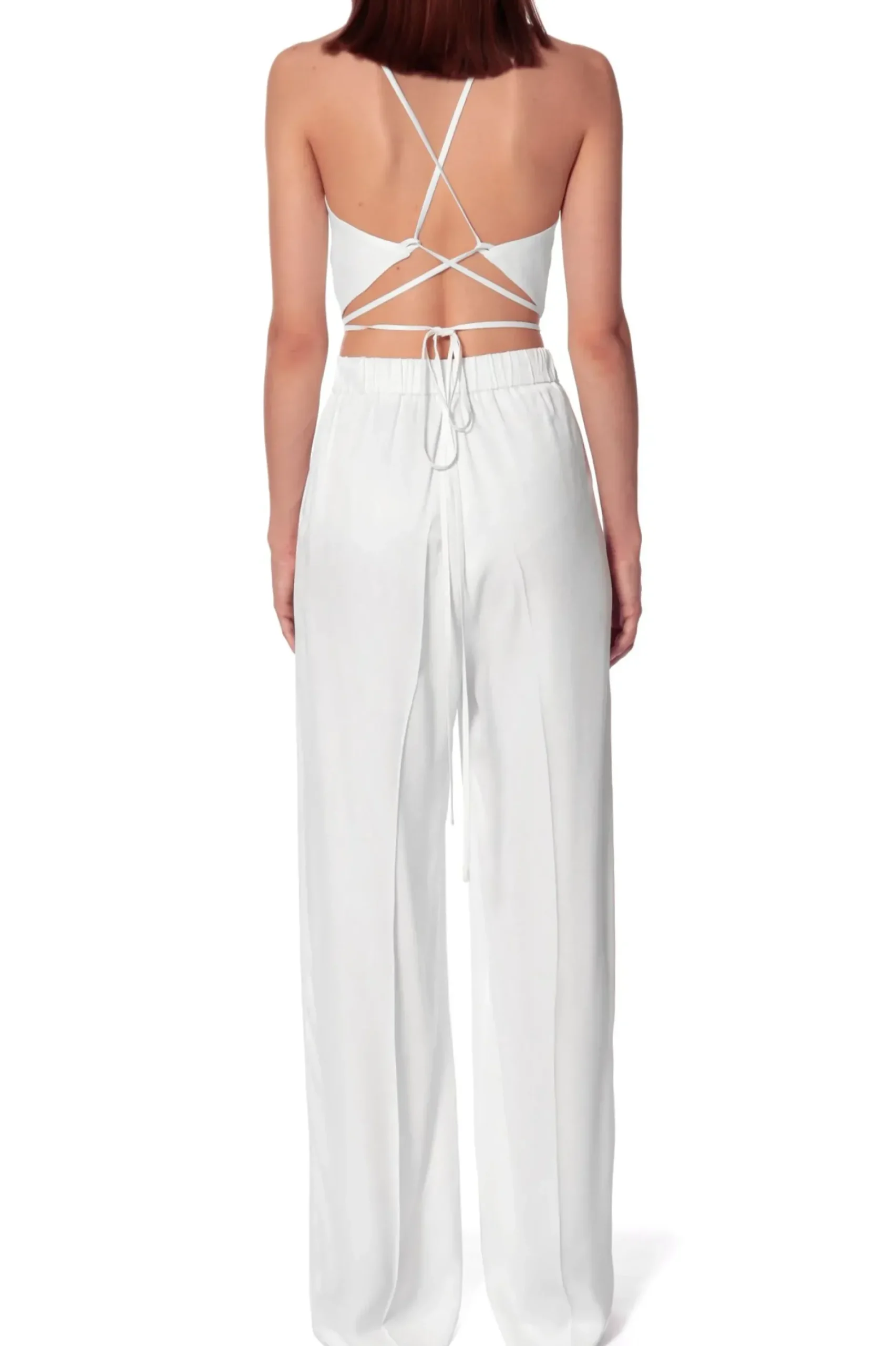 Zmyslowy, Drapowany Top Z Odkrytymi Plecami Wykonany Z Miesistej Szlachetnej Satyny. Misterne Wiazanie Cienkich, Makaronikowych Paseczkow Krzyzujacych Sie Na Plecach I Wokol Talii