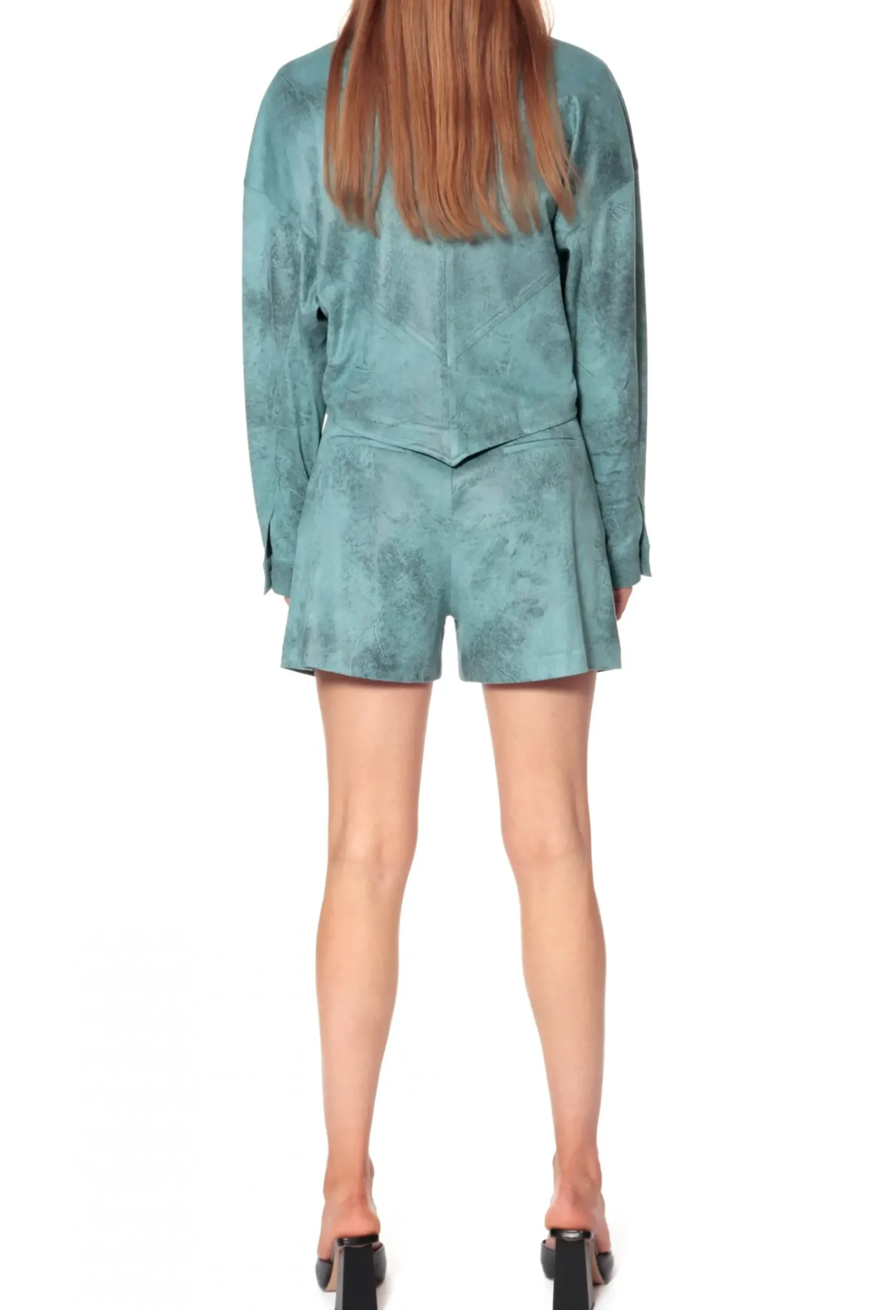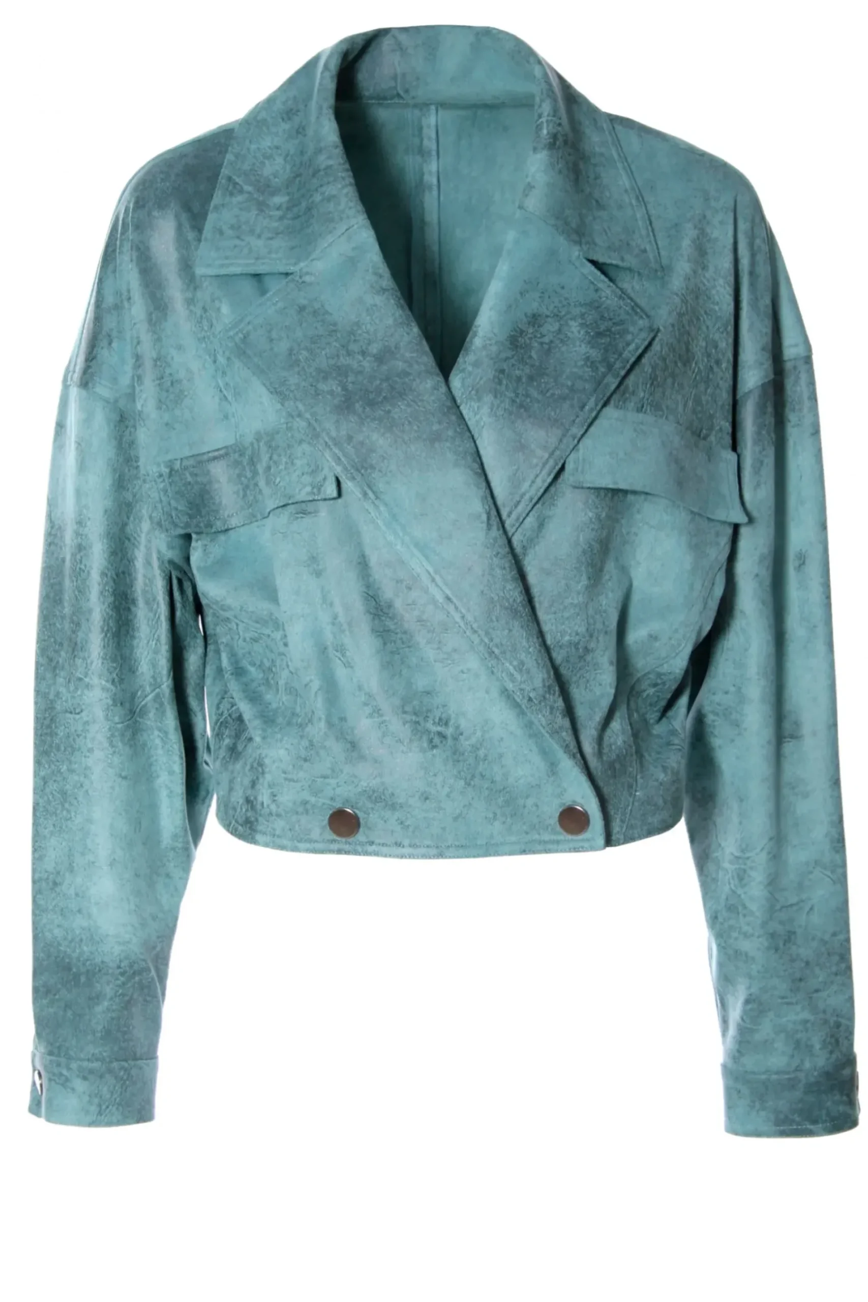 Krotka Kurtka W Stylu Lat 80 Tych Wykonana Z Miekkiego I Delikatnego Materialu O Ciekawej Strukturze Zapinana Na Dwie Napy . Skomponuj Ja Z Szortami Vera Mineral Blue, By Stworzyc Idealny Look.