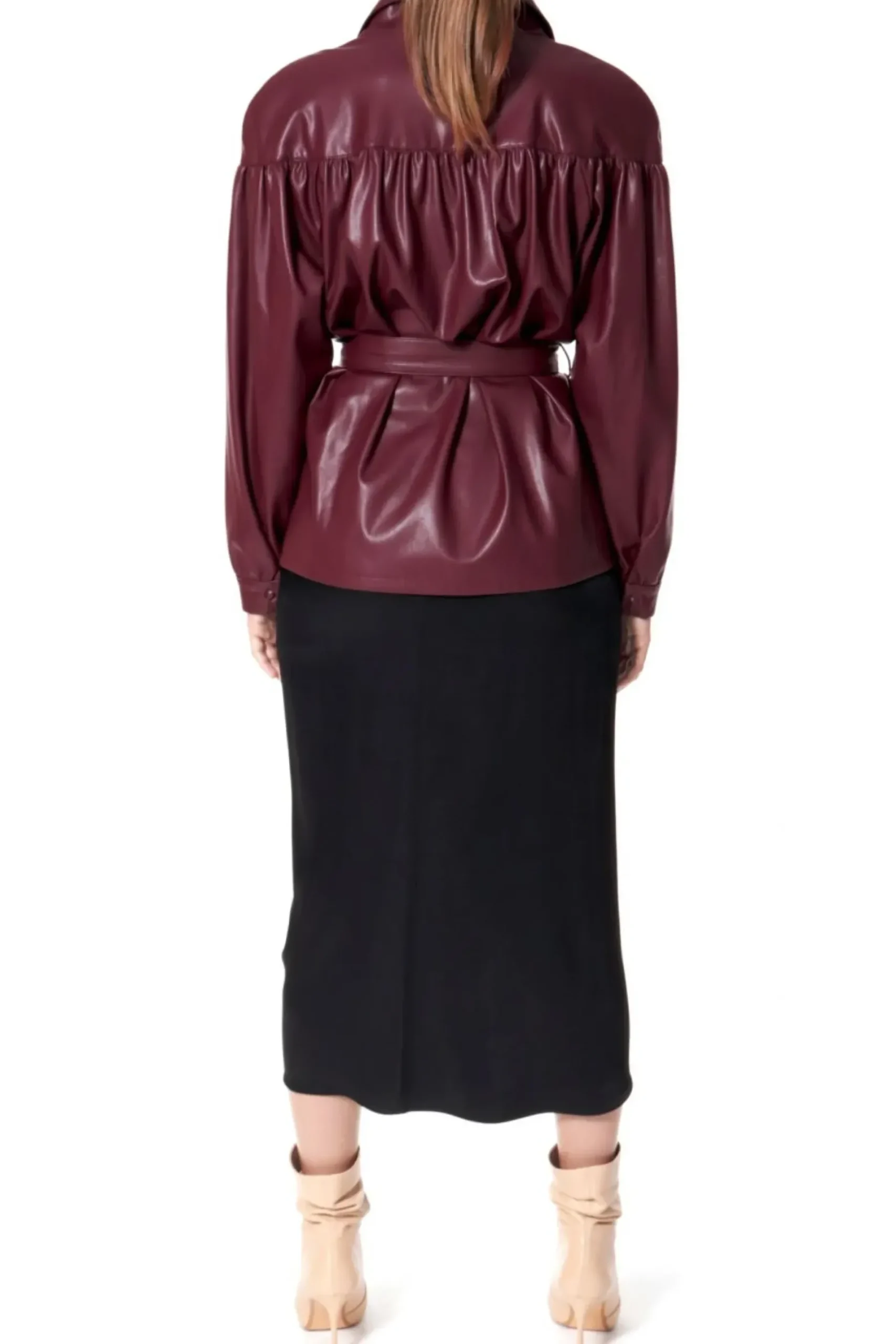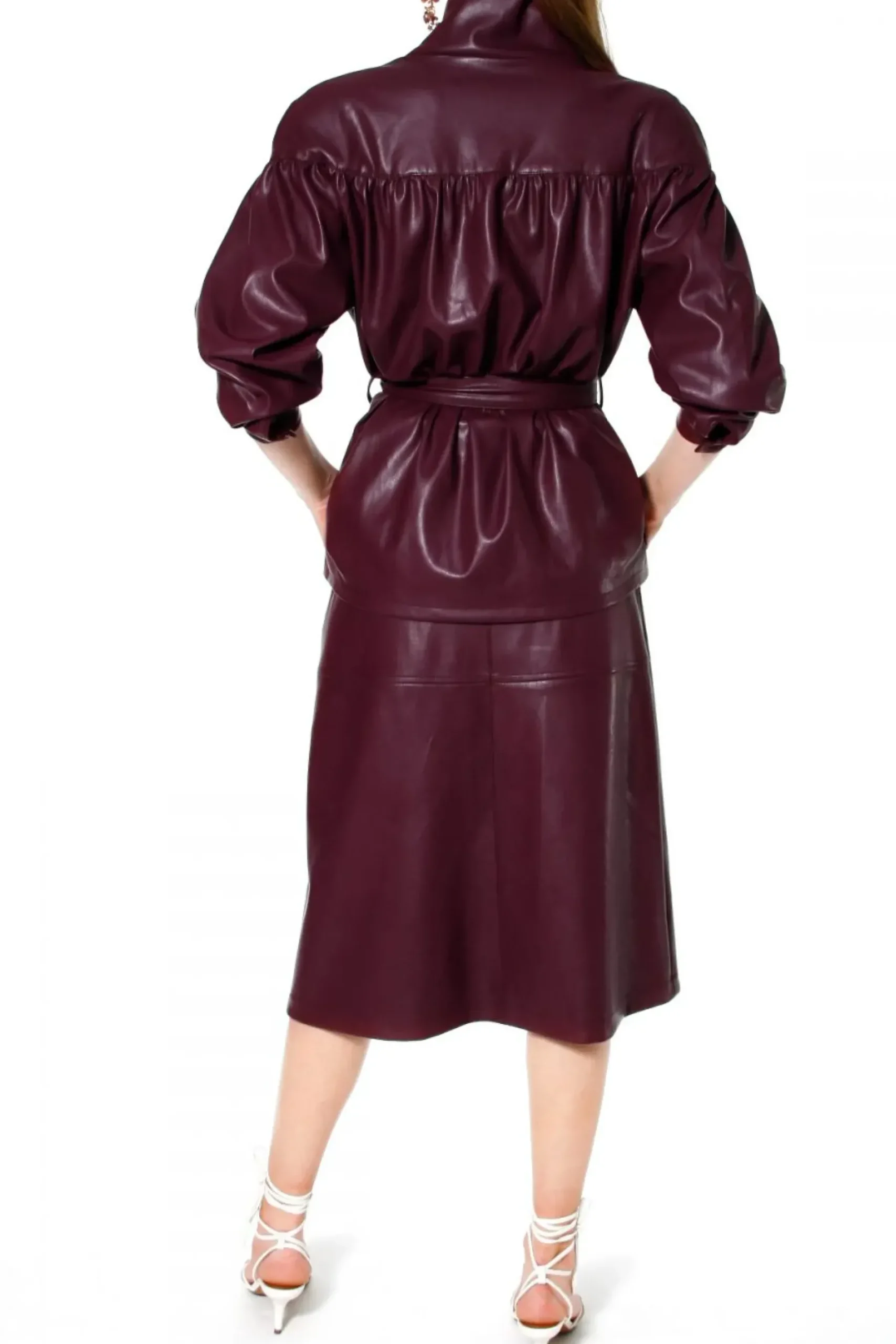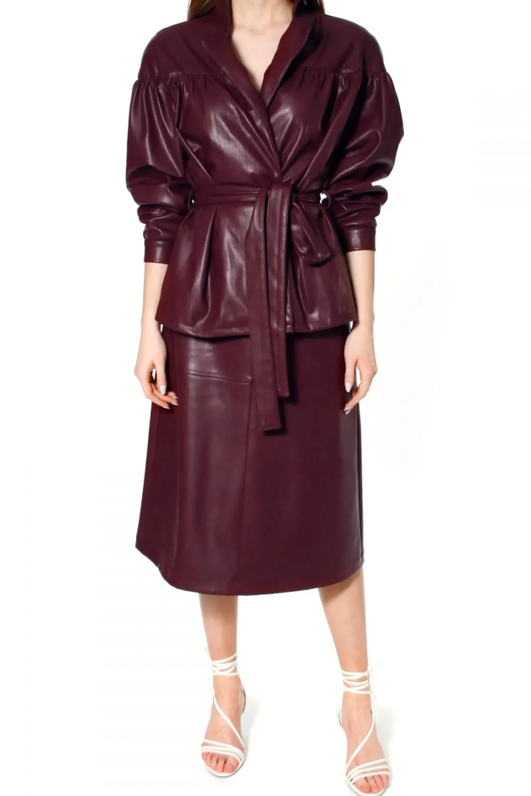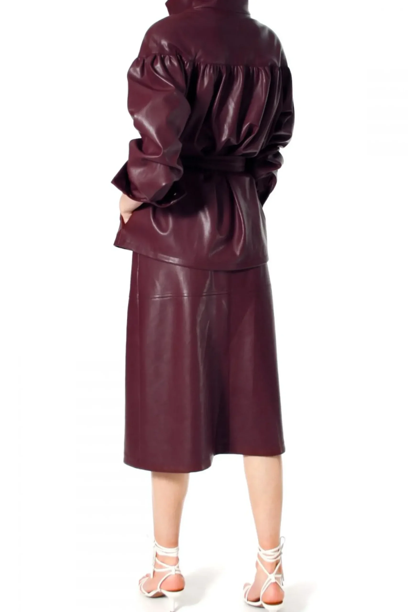 Kurtka Wykonana Z Miekkiej, Delikatnej W Dotyku, Wysokogatunkowej Skory Weganskiej. Projekt Nawiazujacy Do Trendow Lat 80-Tych. Projekt Z Doskonale Dopracowana Konstrukcja Karczka Modelujacego Linie Ramion – Dodatkowo Zaakcentowana Wszytymi Owalnymi Poduszkami. Marszczenie Na Rekawach, Przodach I Plecach Nadajace Przestrzeni Oraz Kobiecego Charakteru Projektowi.