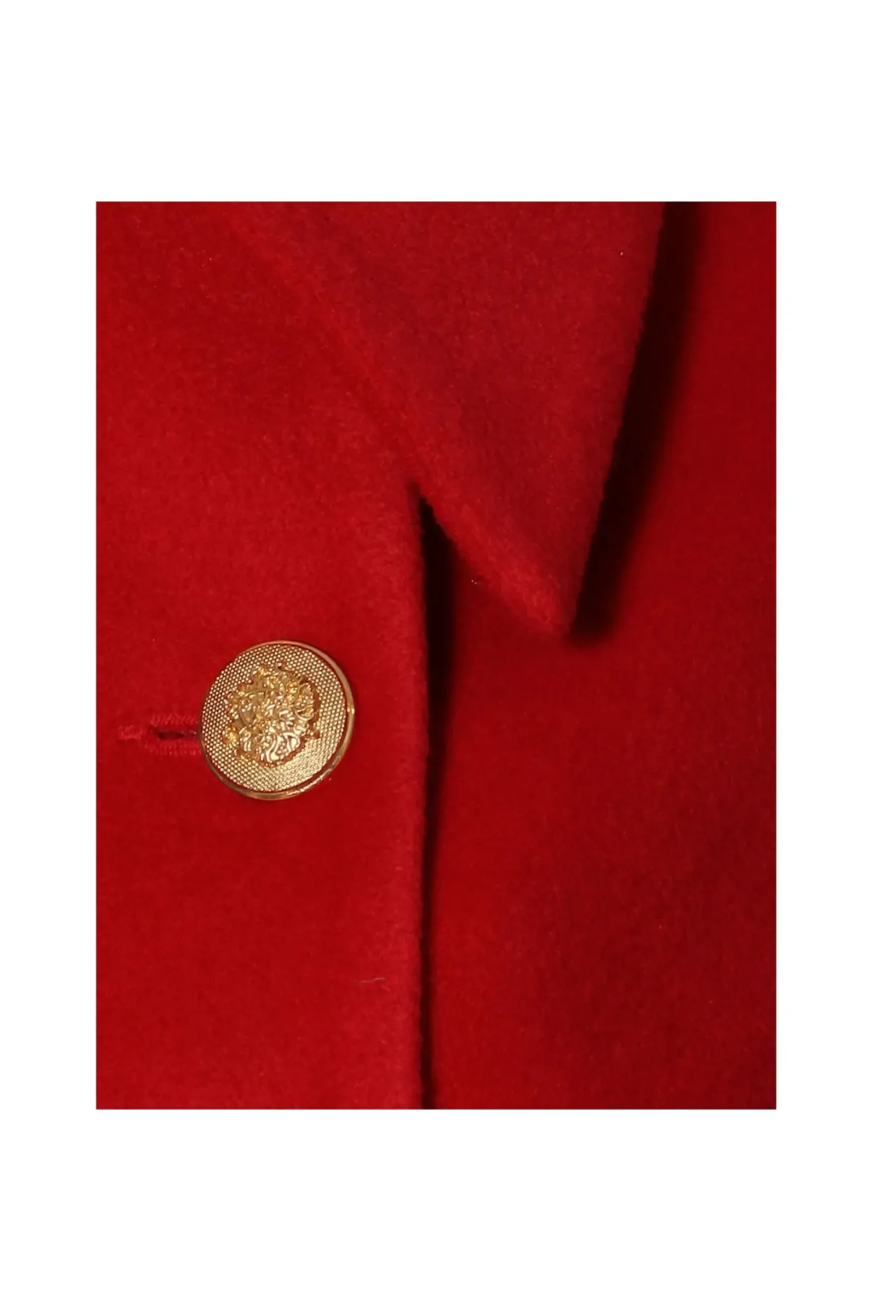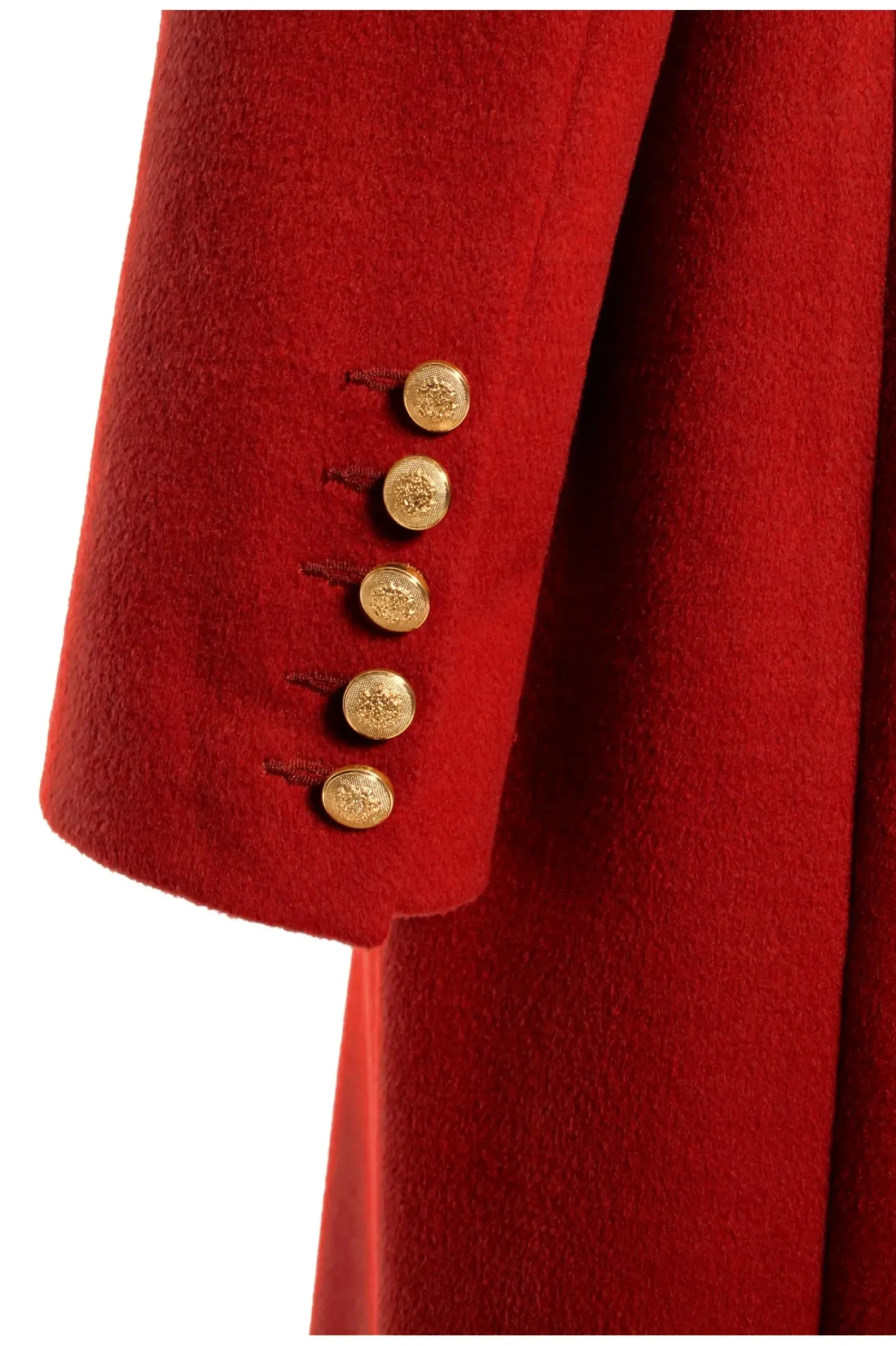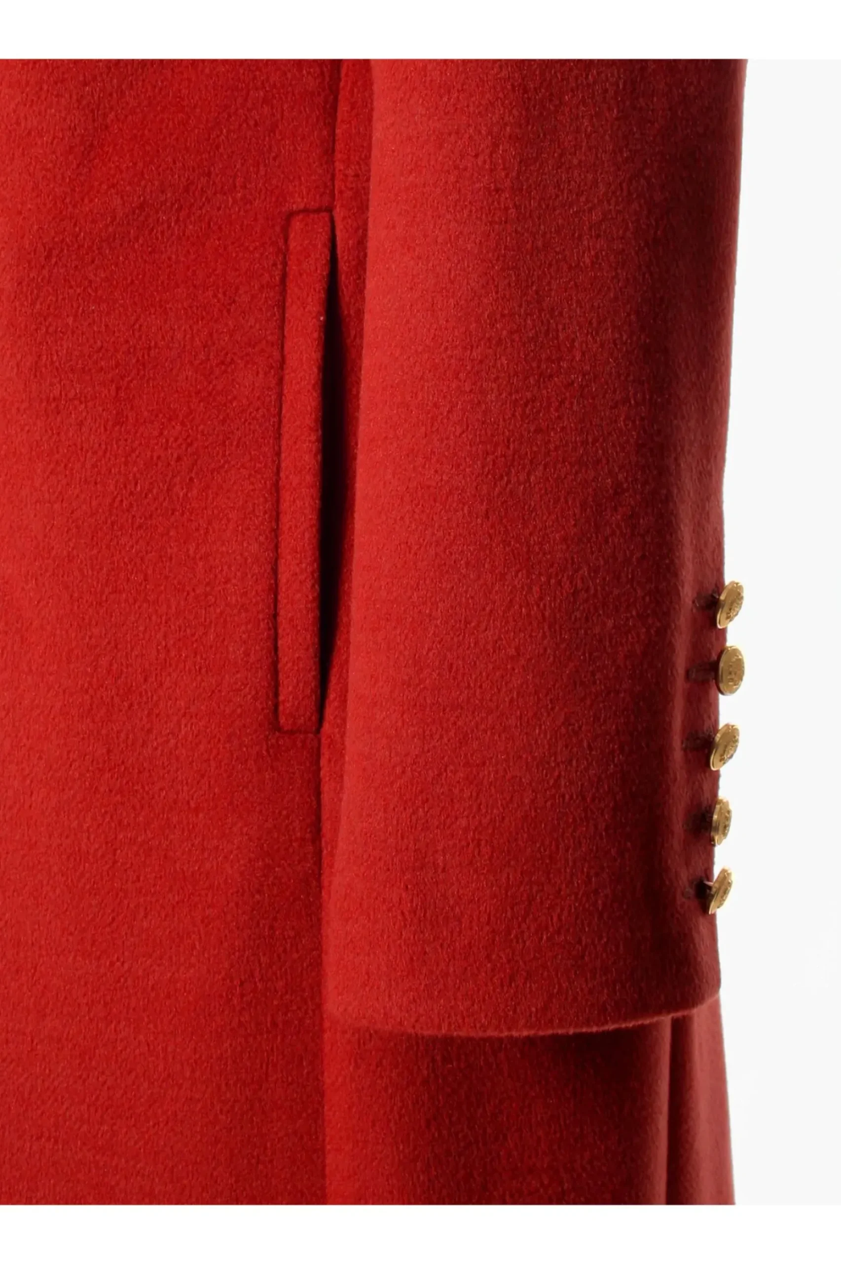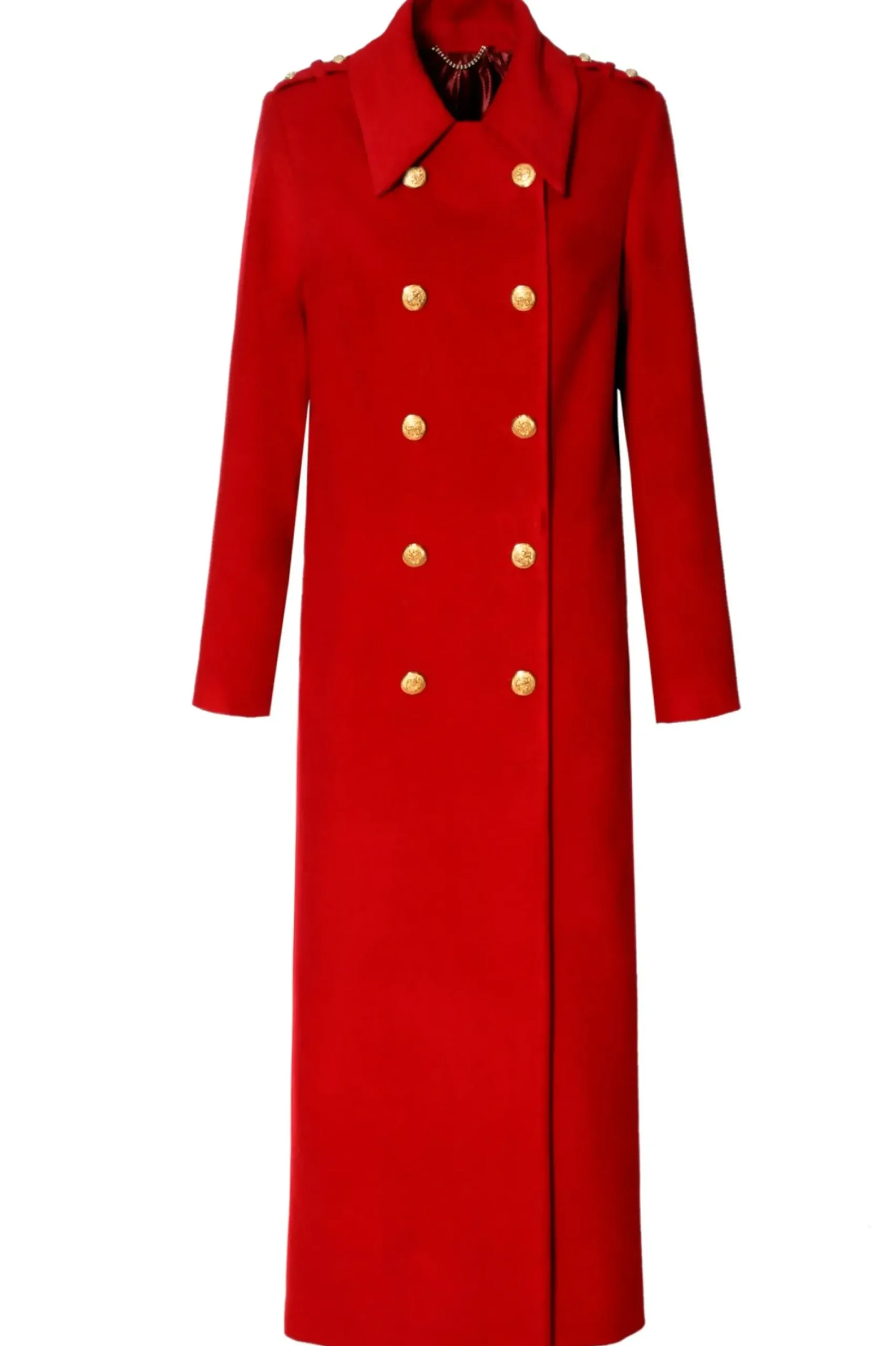 Plaszcz Maxi W Stylu Militarnym, Wykonany Z Miesistego, Miekkiego Materialu. Dwurzedowy, Zapinany Na Dekoracyjne Zlote Guziki, Ktore Znajduja Sie Rowniez Na Pagonach I Prostych Mankietach. Kieszenie Ukryte W Bocznych Szwach Z Mala Padka. Szeroka Linia Ramion, Prosty Kroj Oraz Kolnierz Zapinany Pod Szyja Nadaja Calosci Maskulistyczny Wyglad. Calosc Podszyta Zakardowa Podszewka. Swietnie Skomponuje Sie Z Wysokimi Butami W Stylu Militarnym.