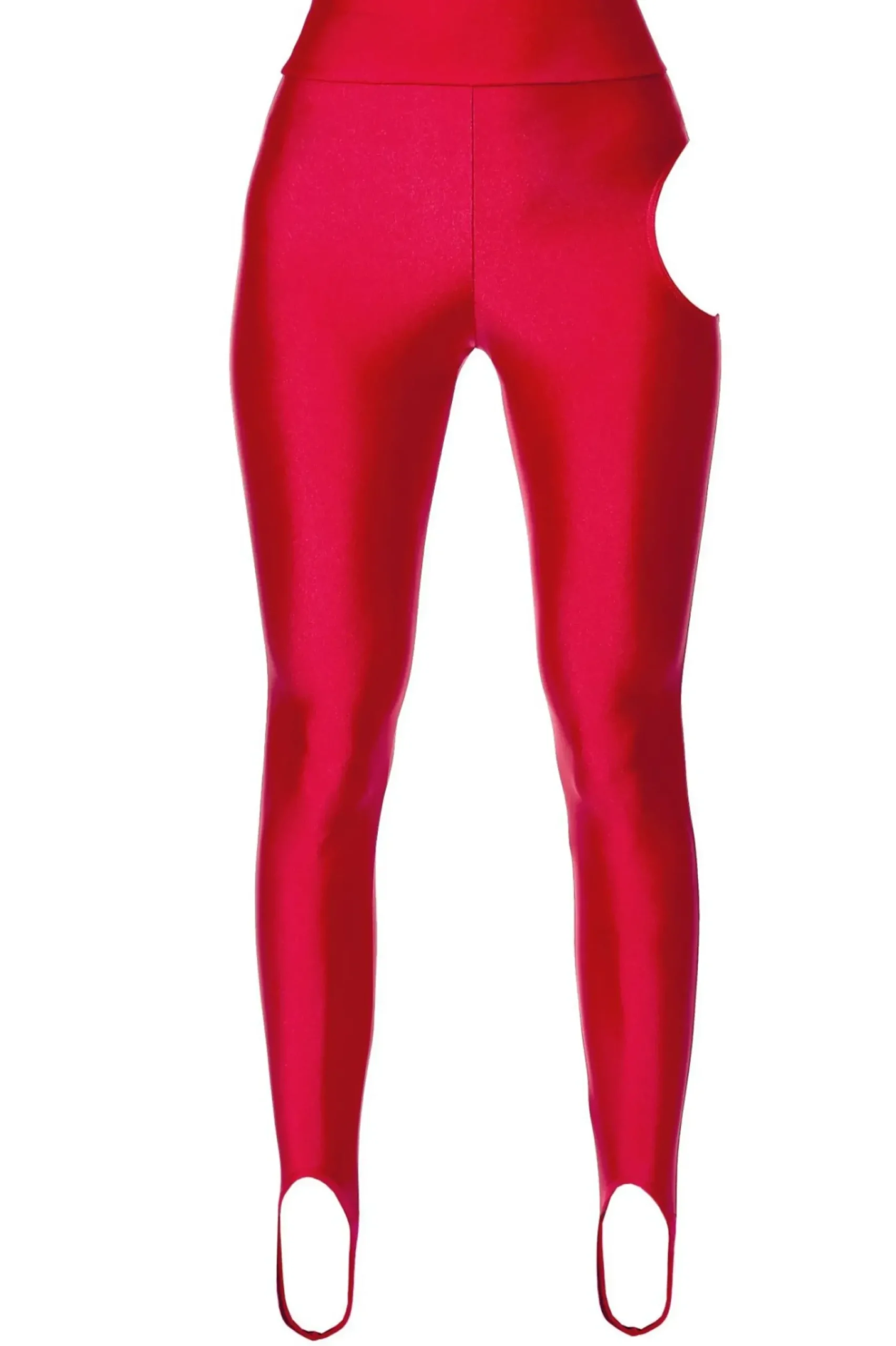 Legginsy Ze Strzemiaczkami I Smialym Wycieciem Na Lewym Biodrze. Nasz Projekt To Swietny Wybor Na Joge, A Takze Do Stworzenia Wieczorowej Lub Streetowej Stylizacji. Uszyte Z Wysokoelastycznego, Swietnie Dopasowujacego Sie Materialu Z Polyskiem. Jako Ozdoba I Urozmaicenie Legginsy Posiadaja Smiale Wyciecie Na Lewym Biodrze Odslaniajace Cialo Co Czyni Projekt Wyjatkowym I Ciekawym. Inspirowane Sportowym Stylem Lat 80 Gwiazd Takich Jak Brooke Shields. Cwicz W Nich Joge I Pilates, Oraz Nos Do Szpilek I Oversizowej Marynarki Tworzac Dzienna Ekstrawagancka Stylizacje.