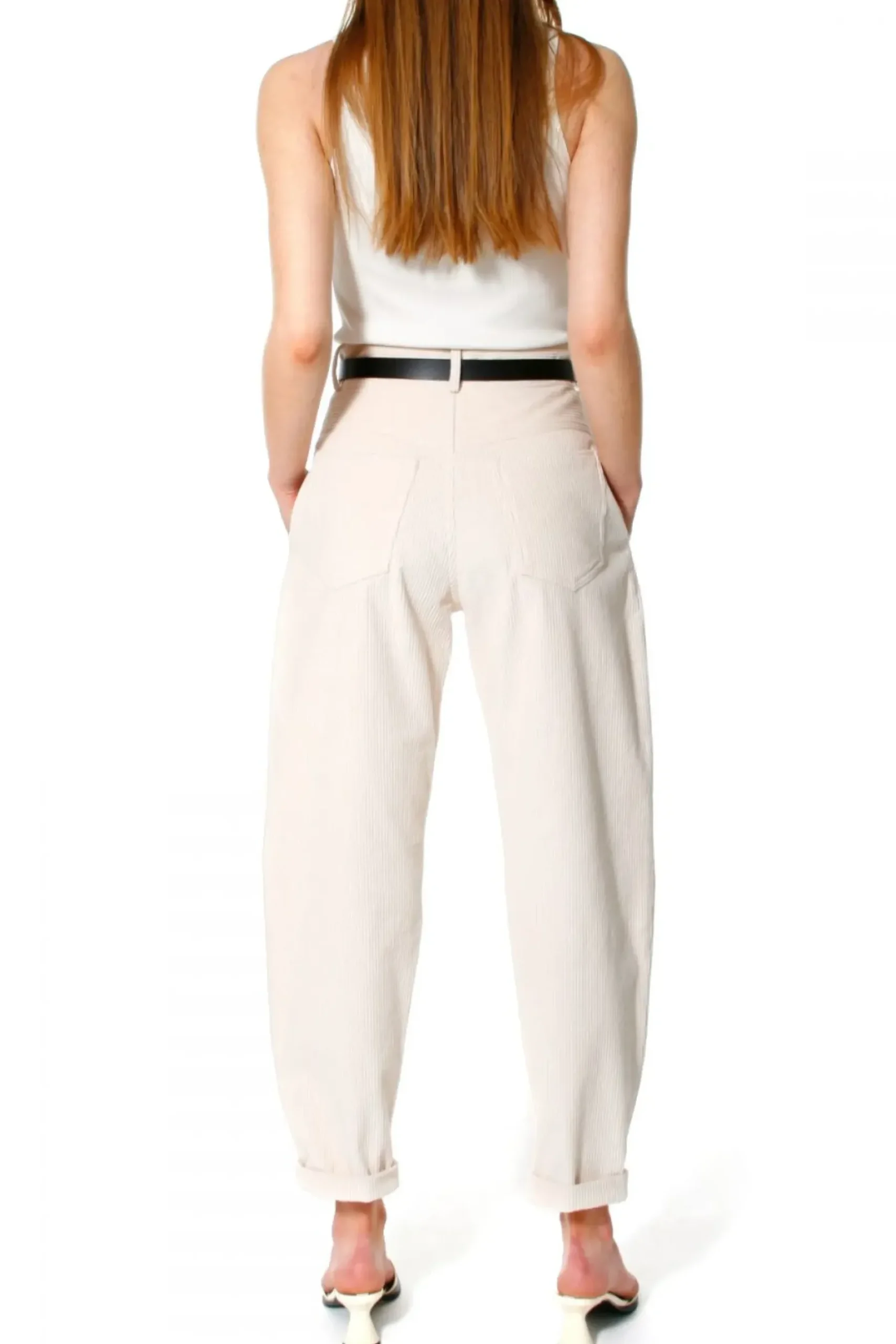 Sztruksowe Spodnie Z Karczkiem Nawiazujace Do Stylu Lat 80-Tych. Z Przodu Dodajace Przestrzeni Zakladki, Rozszerzane W Udach Balonowe Nogawki Zwezajace Sie Ku Dolowi. Z Przodu Ukosne Kieszenie. Z Tylu Dwie Duze Nakladane Kieszenie. Uszyte Sa Z Miekkiej Tkaniny Sztruksowej O Sredniej Grubosci Prazka. Dodatek Elastanu Niesie Za Soba Komfort W Swobodzie Ruchow I Zapobiega Wypychaniu Sie Tkaniny Na Posladkach I Kolanach. Nos Je Z Butami Typu Moules Lub Botkami. Do Sportowych Stylizacji Dobierz Do Nich Sneakersy.