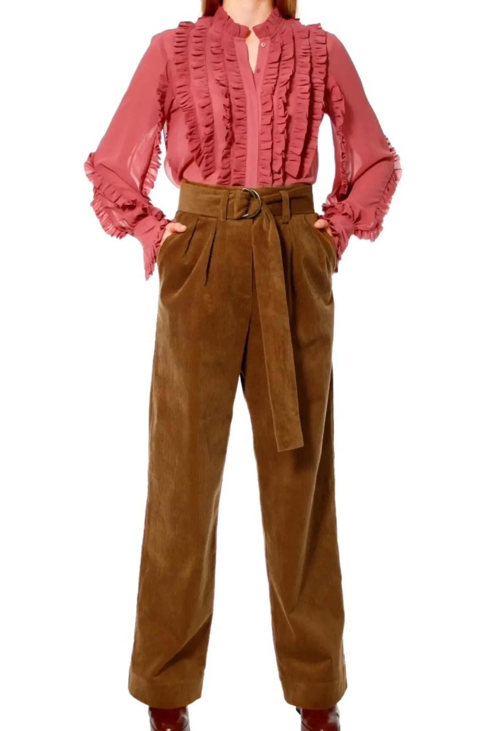 Szerokie Spodnie Typu Szwedy Ze Sztruksu Z Zakladkami Na Przodzie. W Talii Pasek Z Klamerka W Kolorze Starego Zlota. Model Posiada Boczne Kieszenie, Szlufki Na Pasku Oraz Ciete Kieszonki Z Wypustka Z Tylu. Model Inspirowany Postaciami Grety Garbo I Marleny Dietrich. Nos Je Do Mokasynow, Botkow Na Koturnie Lub Wspolczesnie W Stylu Sportowej Elegancji Do Sneakersow. Spodnie Sztruksowe Z Wysoka Talia, Sztruksy O Fasonie Szwedy.