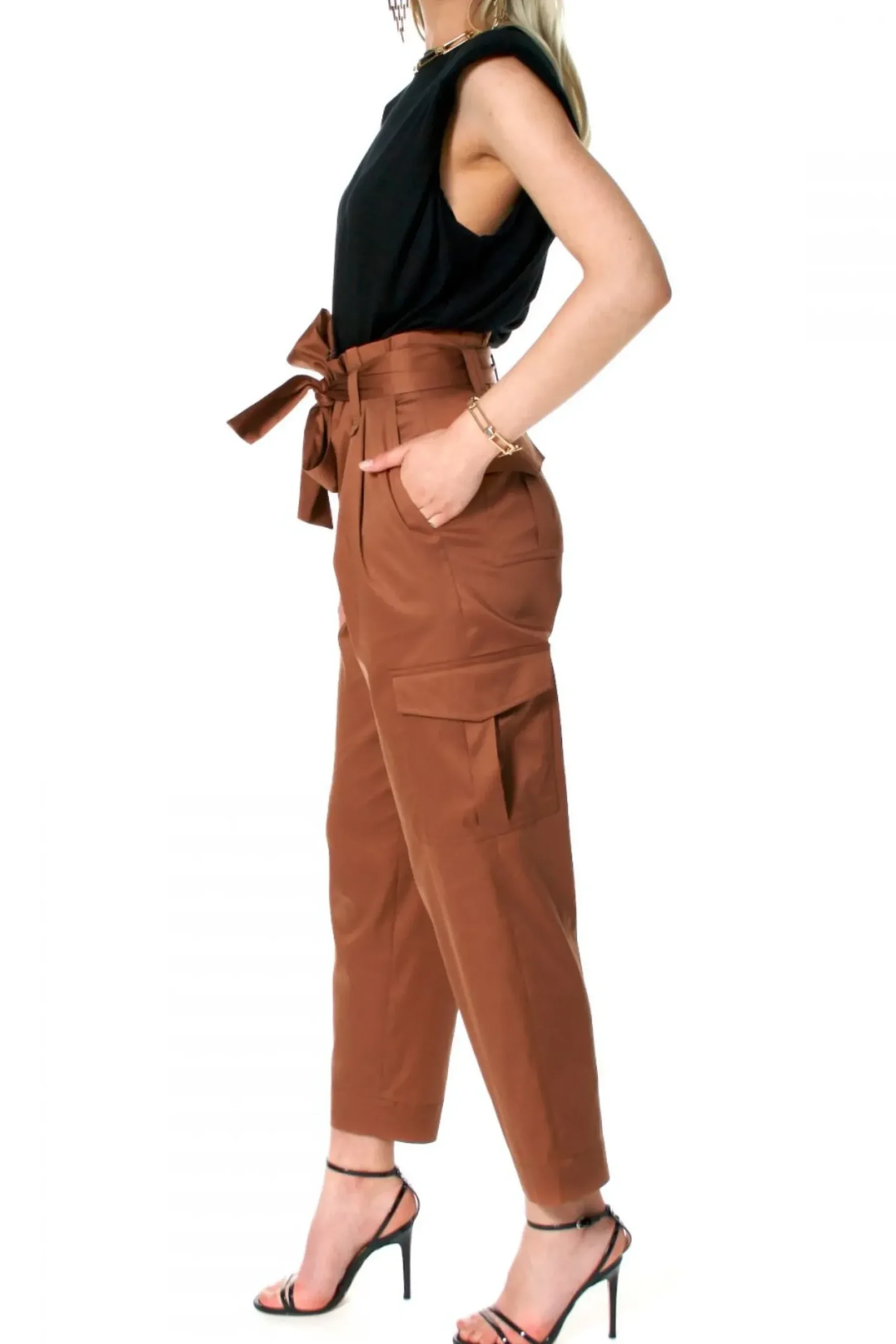 Spodnie Z Talia Typu Paper Bag W Klimacie Miejskiego Safari. Wysoka Talia Z Kontrafaldami Z Przodu; Z Tylu Dopasowanie Do Sylwetki Modelujacymi Zaszewkami. Efektowne, Duze Kieszenie Z Patkami Na Udach Oraz Nieco Mniejsze Na Posladkach. Pasek- Szarfa Przeciagniety W Szerokich Szlufkach Wiazany Na Supel Z Kokarda. Uszyte Z Cienszej Lecz Lekko Sztywnej Bawelny O Delikatnym Blysku Z Dodatkiem Elastanu. Na Letni Wieczor Zaloz Do Nich Sandaly Na Wysokim Obcasie Lub Sneakersy Do Codziennej Stylizacji.