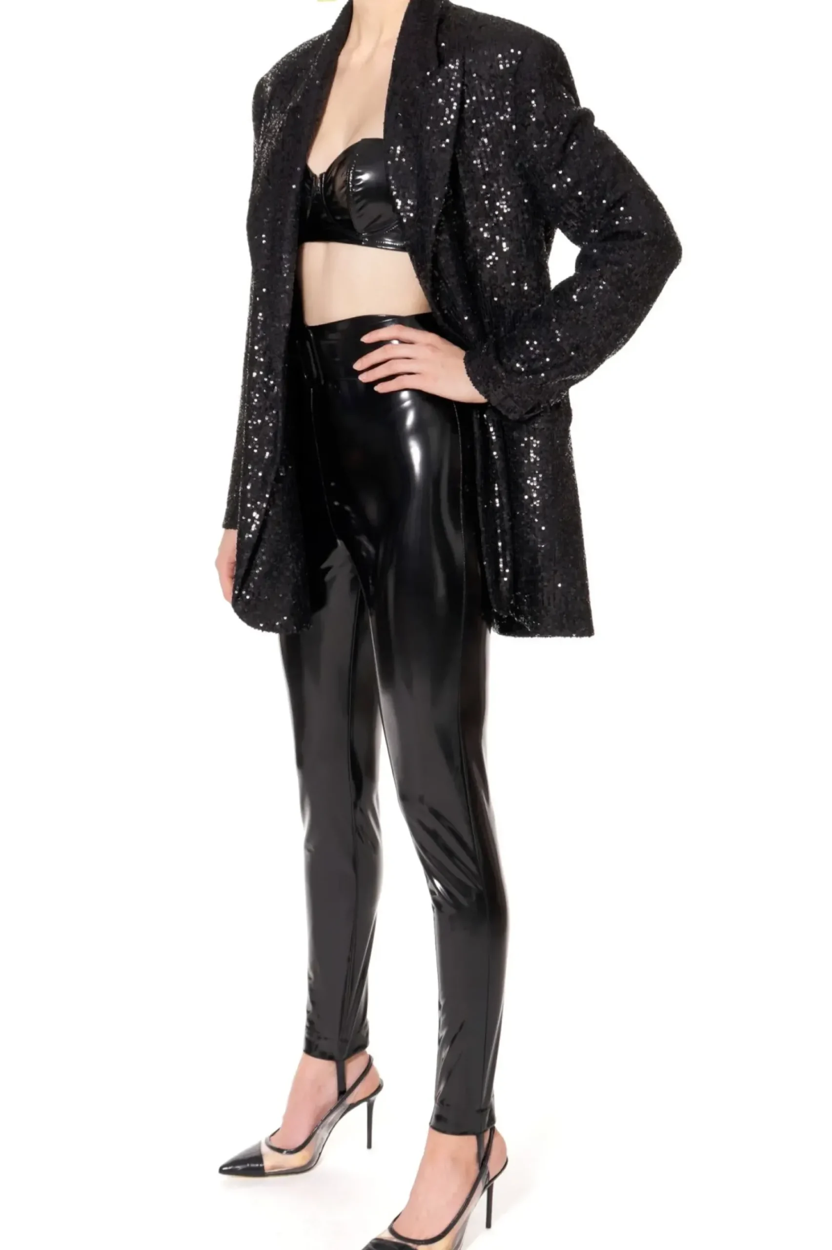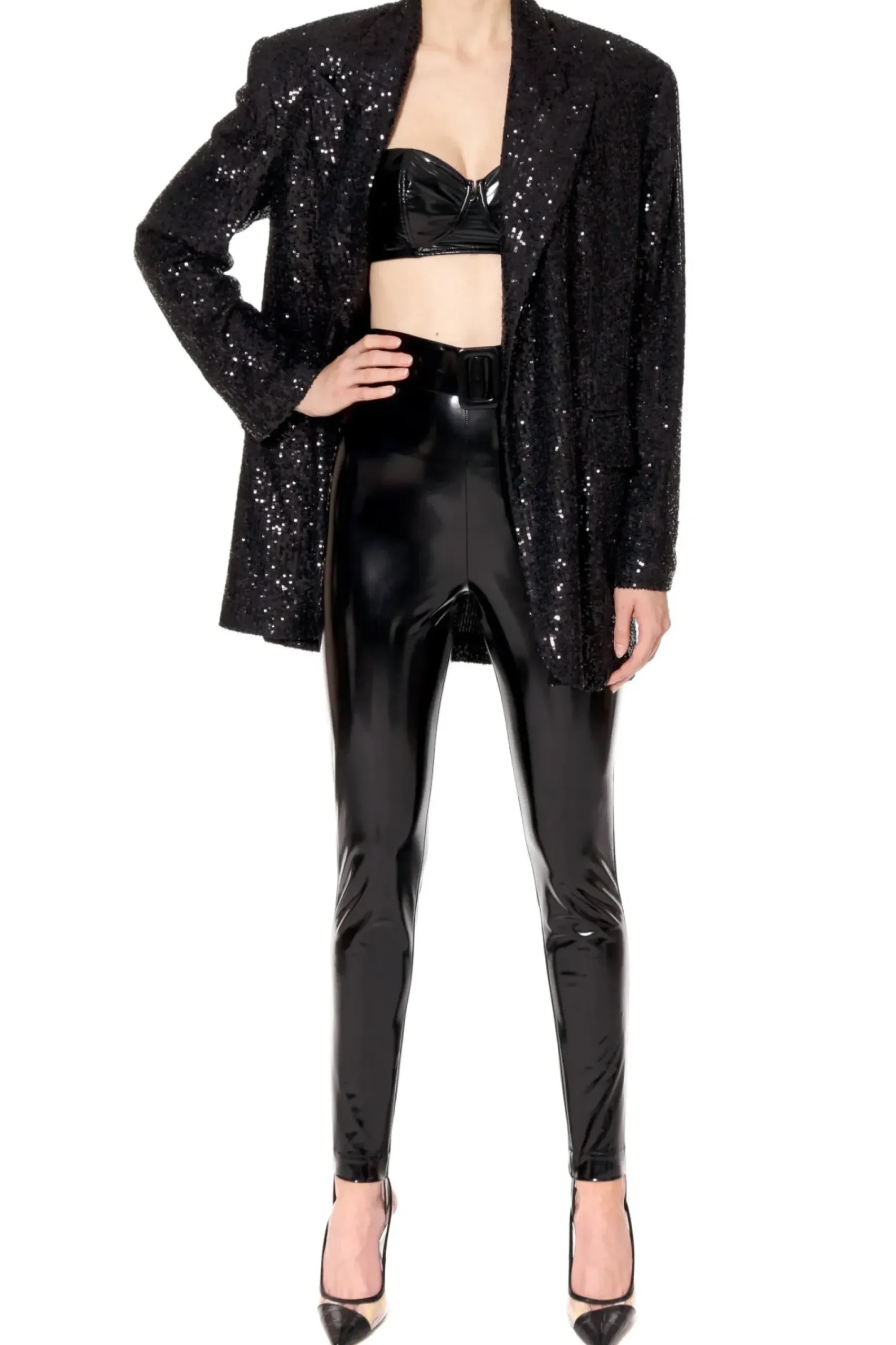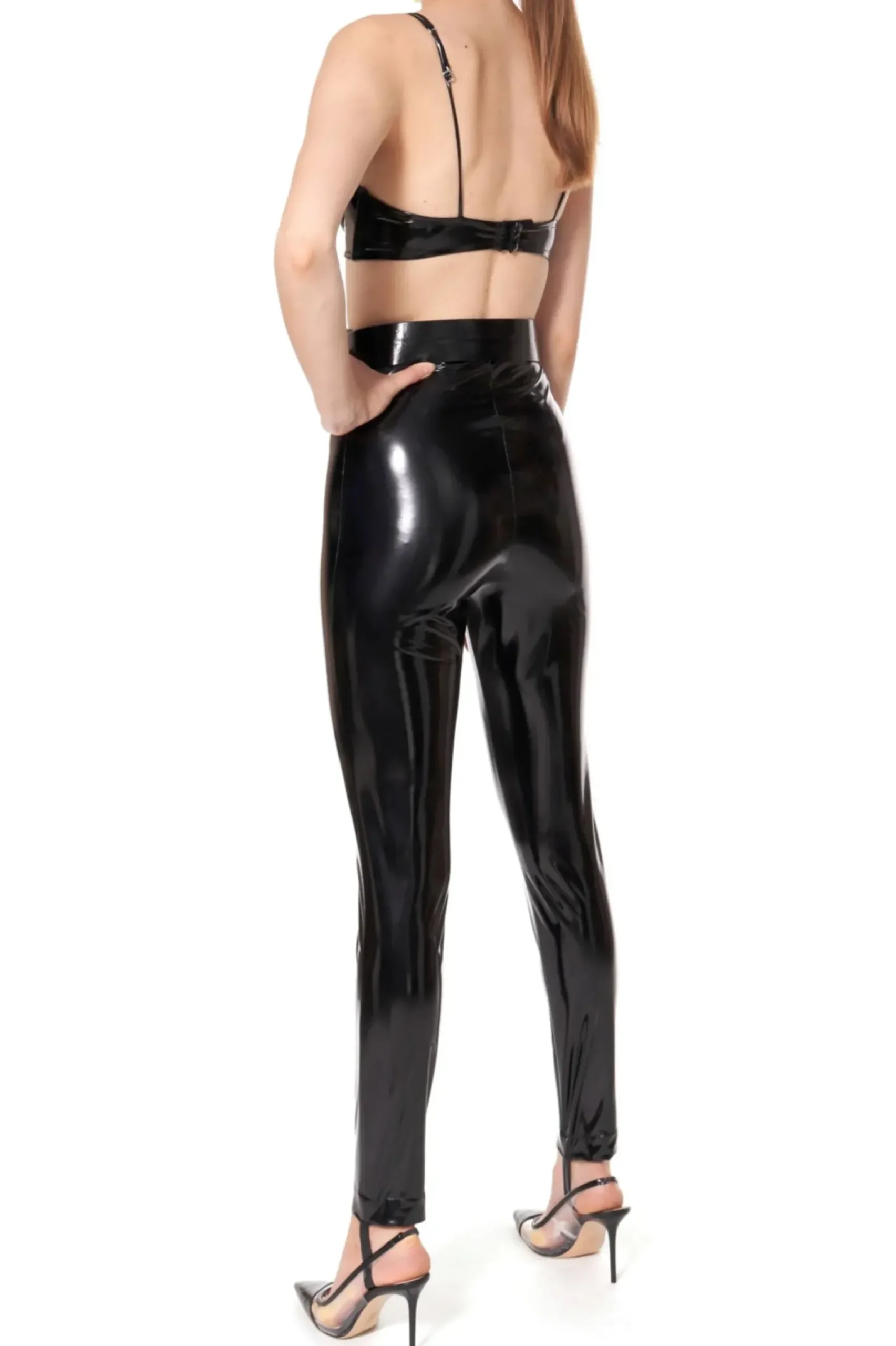 Lateksowe Spodnie-Legginsy Wykonane Z Mocno Elastycznego, Swietnie Pracujacego Z Sylwetka Materialu O Lakierowanym Polysku. Talia Mocno Zaakcentowana Paskiem Z Klamra. Pod Stopa Zakladany Paseczek-Zapietek. Proponujemy Zakup Rozmiaru Mniejszego Niz Zwykle Noszony.