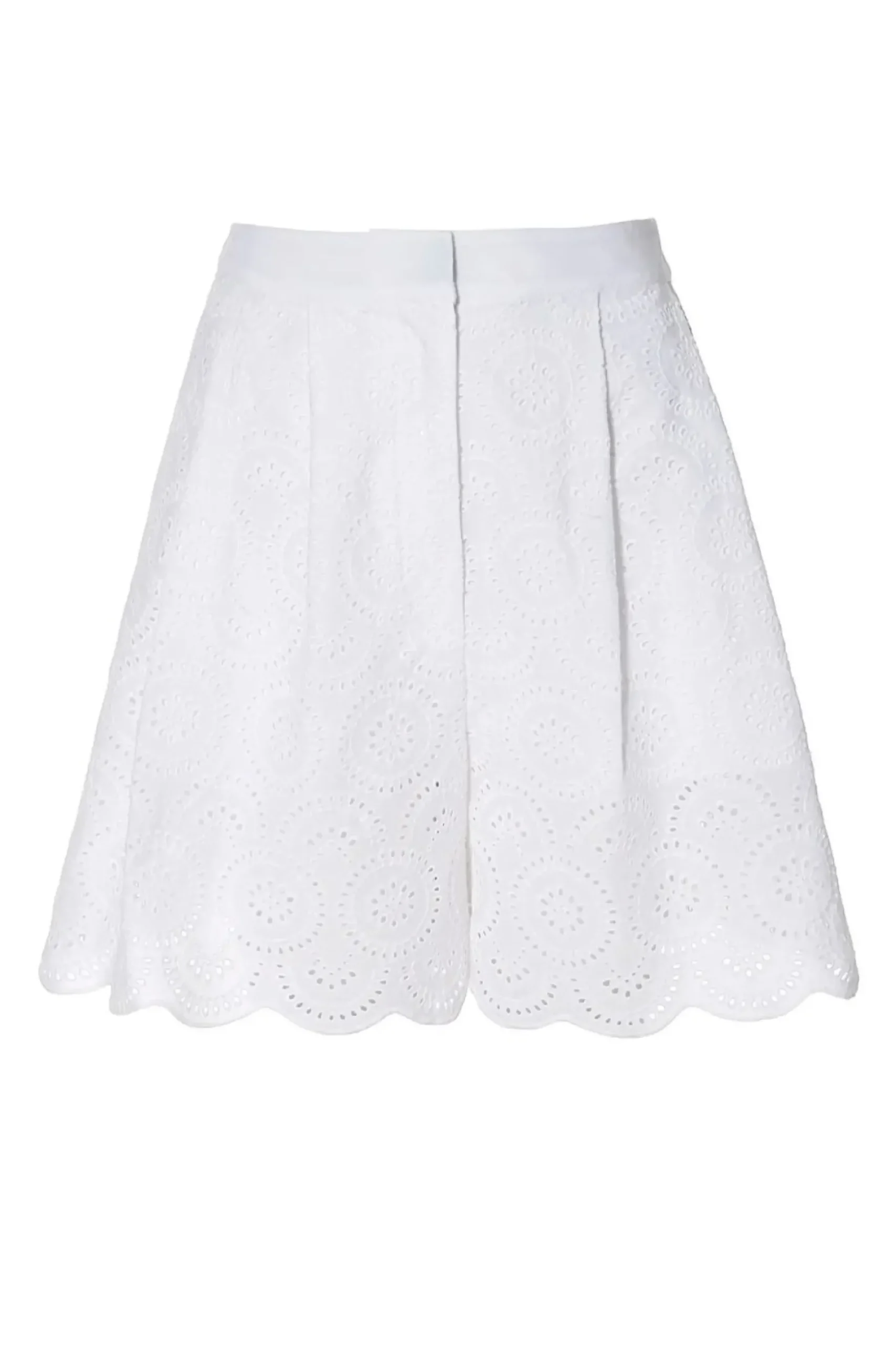 Szorty W Romantycznym Stylu Francuskiej Riwiery. Projekt Z Glebokimi Zakladkami Wykonany Z Gesto Haftowanej Bawelny Z Pieknym Azurowym Wykonczeniem Nogawek. Niezwykle Kobieca Linia Szortow, Ktora Tworzy Wysoka Talia I Trapezowy Ksztalt Nogawek Idealnie Komponuje Sie Z Krotkim Topem Lub Bandeau. W Szwach Bocznych Kieszenie. Szorty Czesciowo Na Podszewce Z Bawelnianego Woalu. Nos Je Do Sandalow, Espadryli, Botkow Oraz Sneakersow.