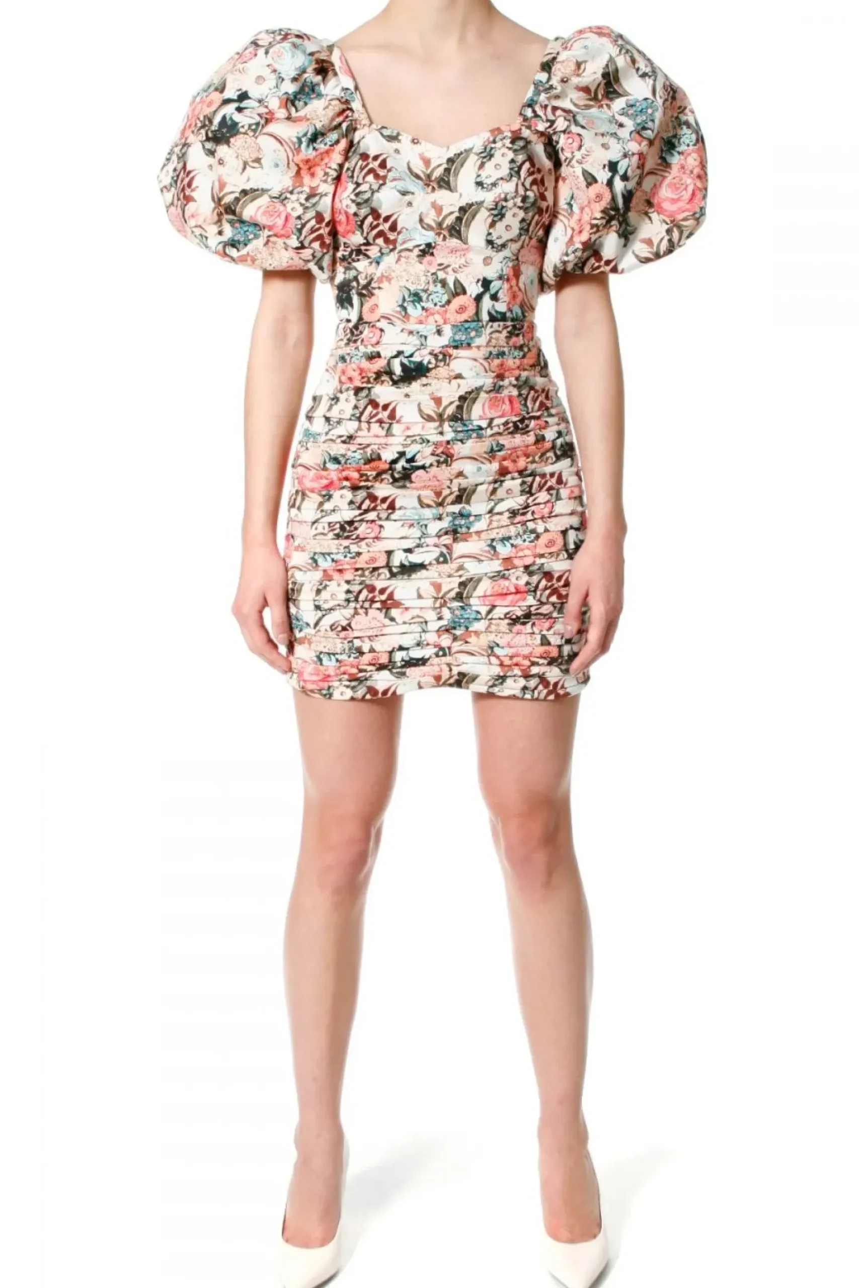 Bufiaste Rekawy O Przestrzennej Formie, Bogate, Misterne Zakladki I Drapowania Wyrzezbione Z Tkaniny W Malarski Rozany Desen.