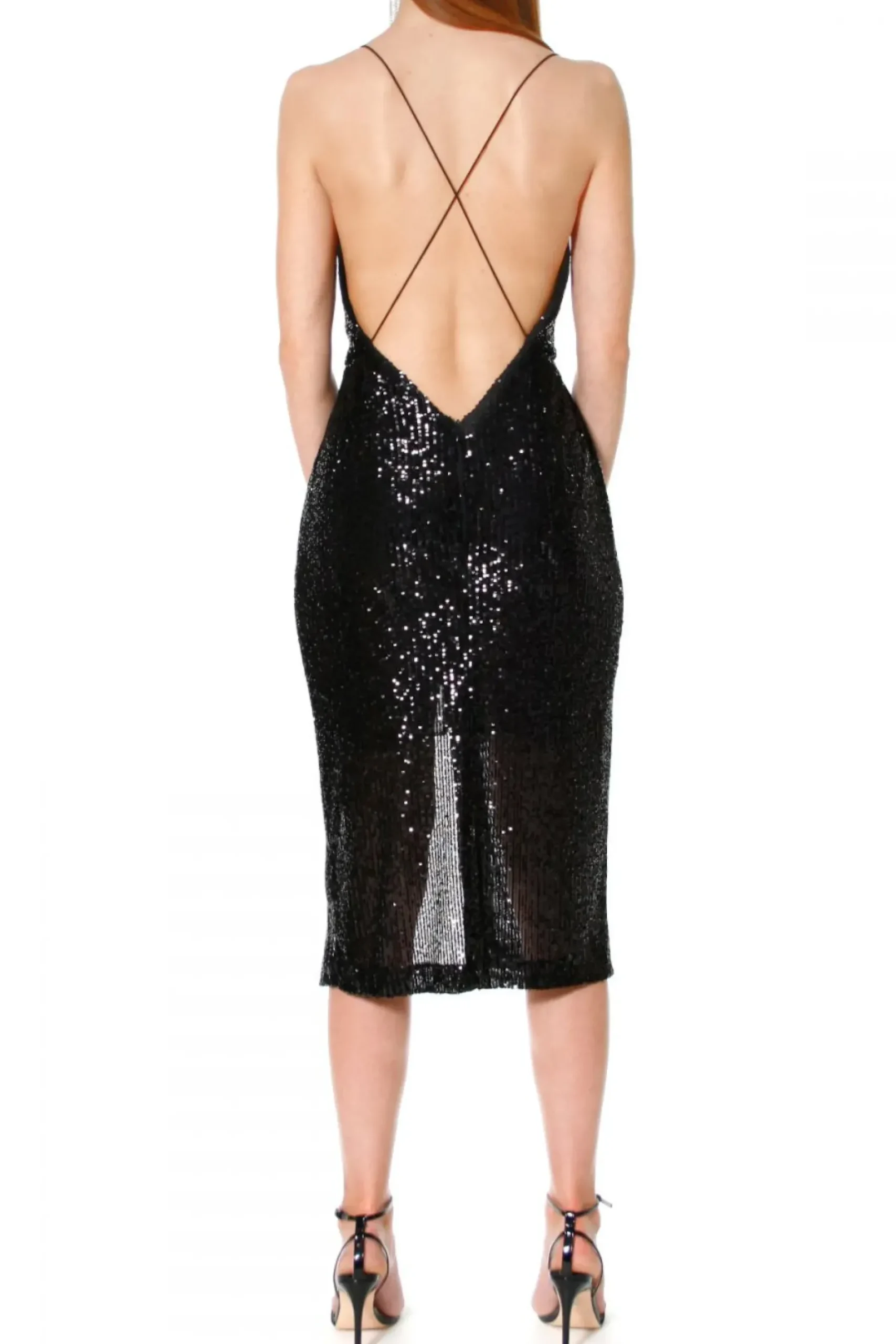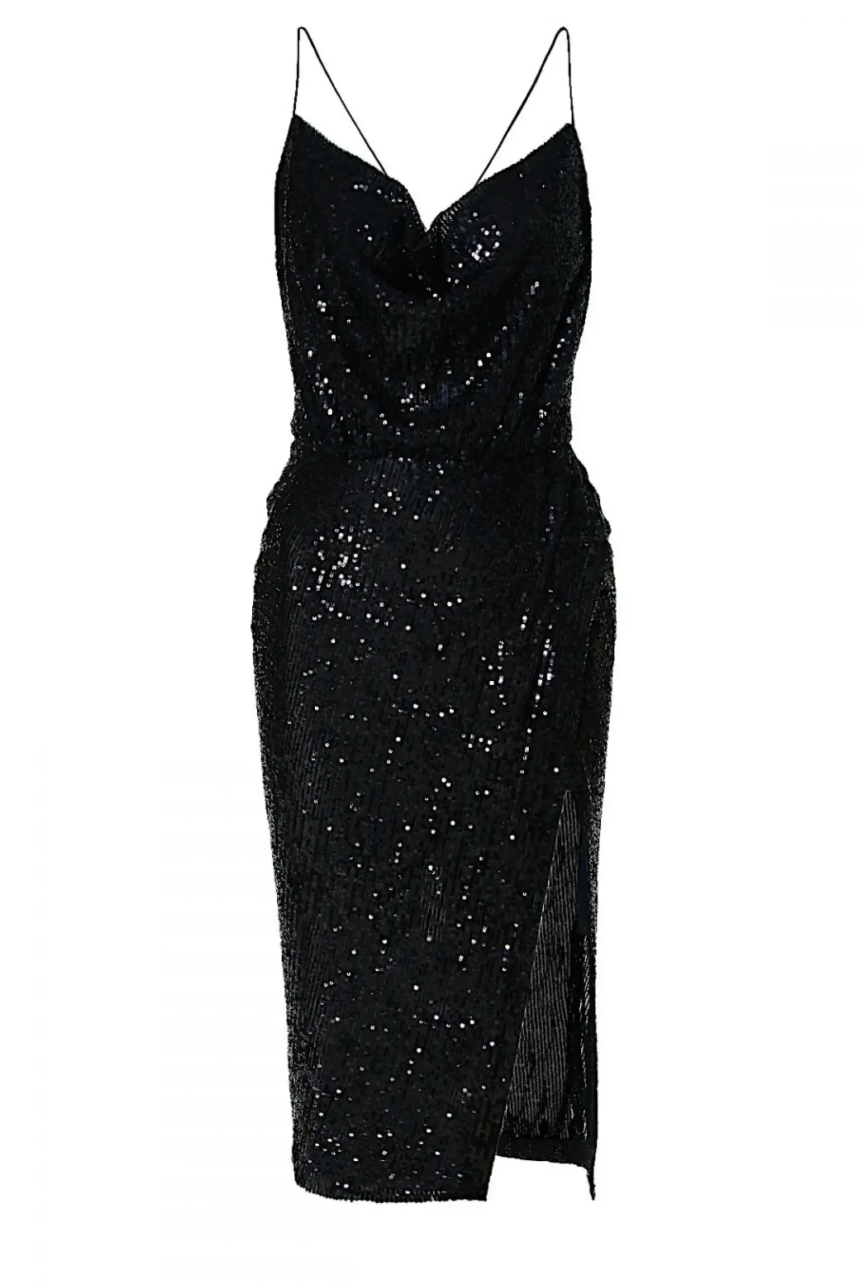 Sukienka Midi Wyszywana Drobnymi Polyskujacymi Cekinami. Dekolt Z Drapowaniem Ukladajacym Sie W Miekka Fale.