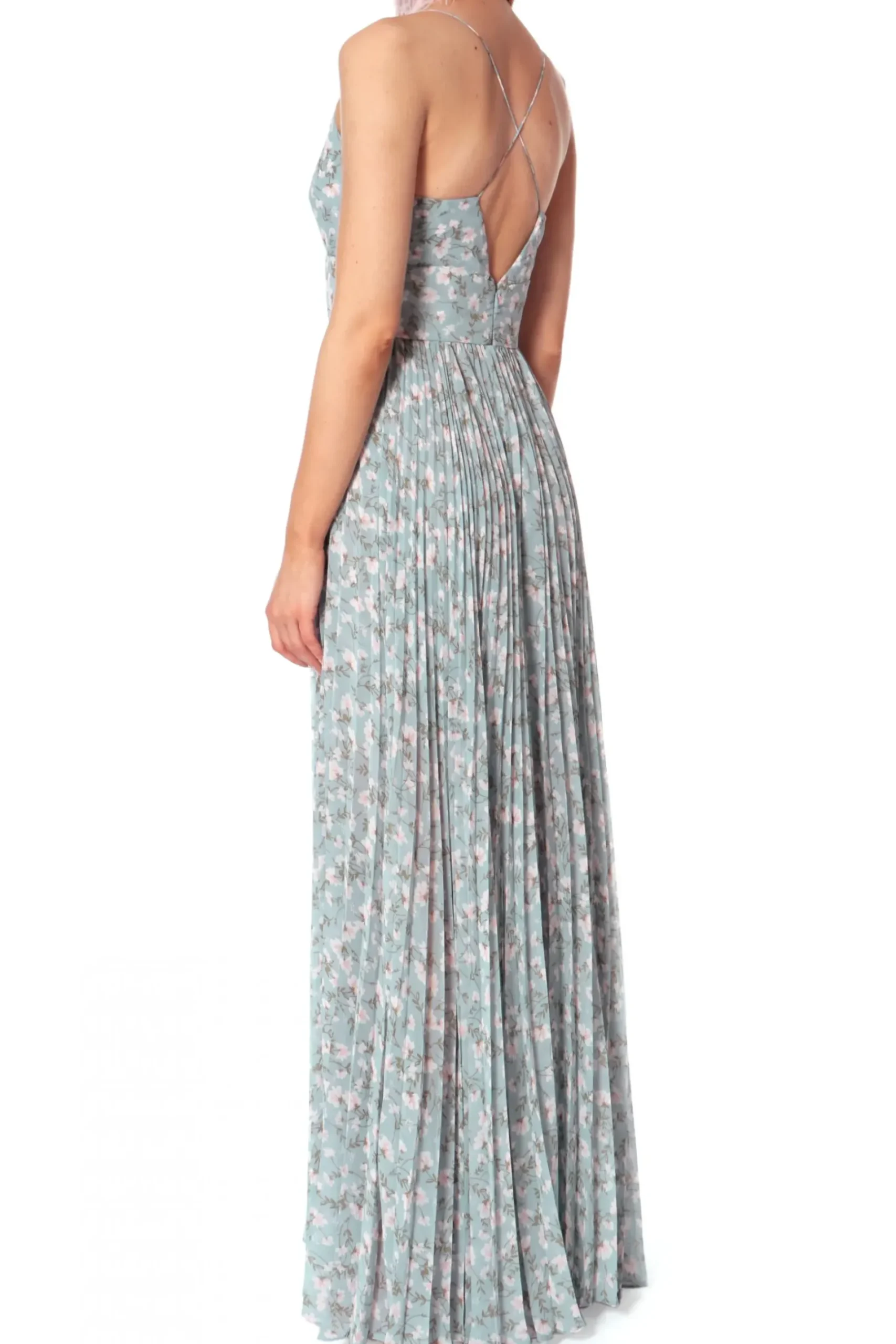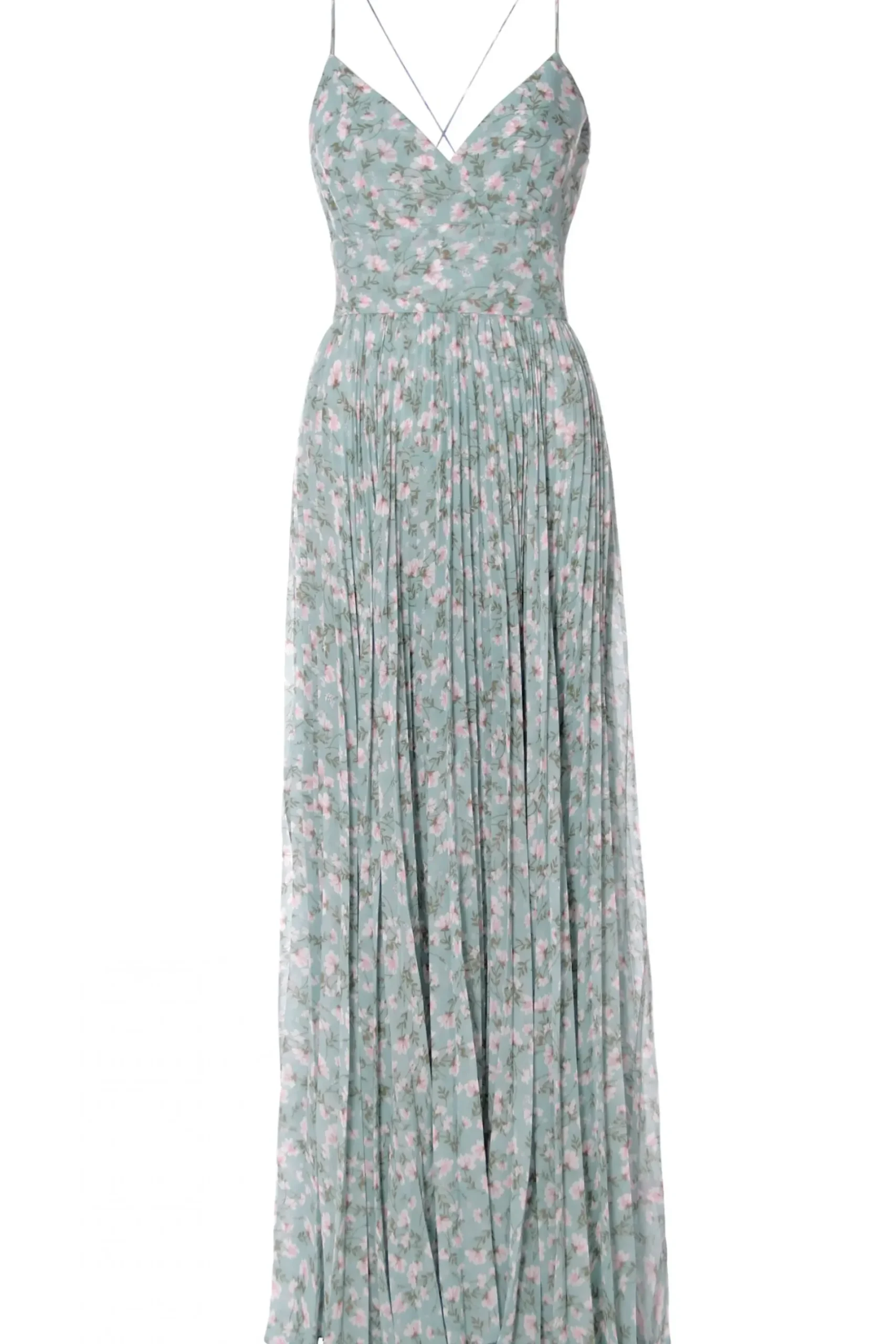Zjawiskowa Sukienka Maxi Z Odkrytymi Plecami Uszyta Z Cienkiego Zwiewnego Szyfonu. Wysoka Talia Podkreslona Szerokim Pasem. Bogaty, Efektowny Plisowany Dol Sukni Z Pelnego Kola Plastycznie I Lekko Kolysze Sie Podczas Ruchu Nadajac Lekkosci Sylwetce. Tyl Sukni Gleboko Wykrojony W Ksztalt Podkreslajacy Smuklosc Plecow. Dekolt W Szpic Z Cieniutkimi Ramiaczkami Typu Makaroniki Krzyzujacymi Sie Zmyslowo Pomiedzy Lopatkami, Z Tylu Zapinana Na Kryty Zamek Blyskawiczny.