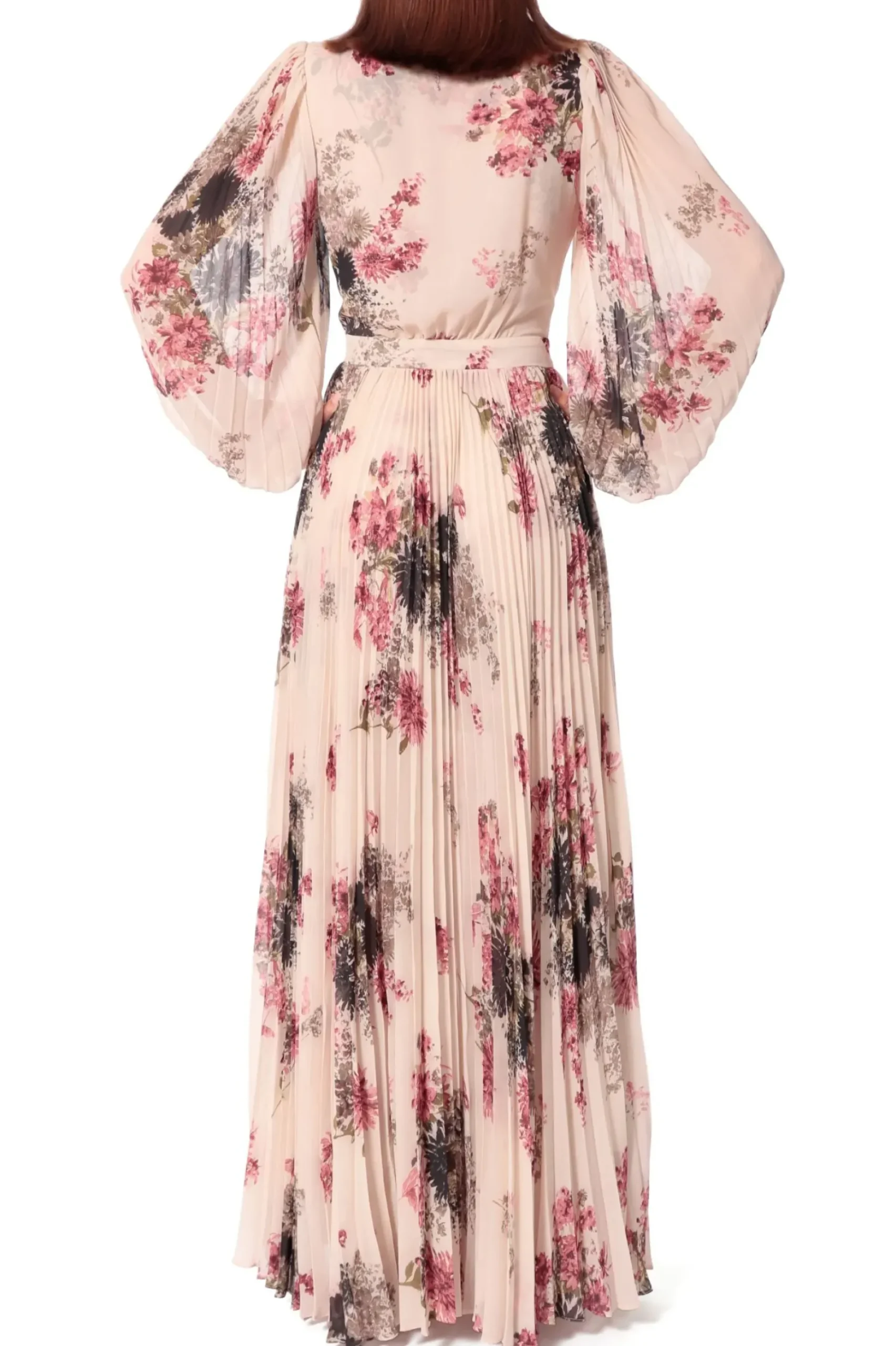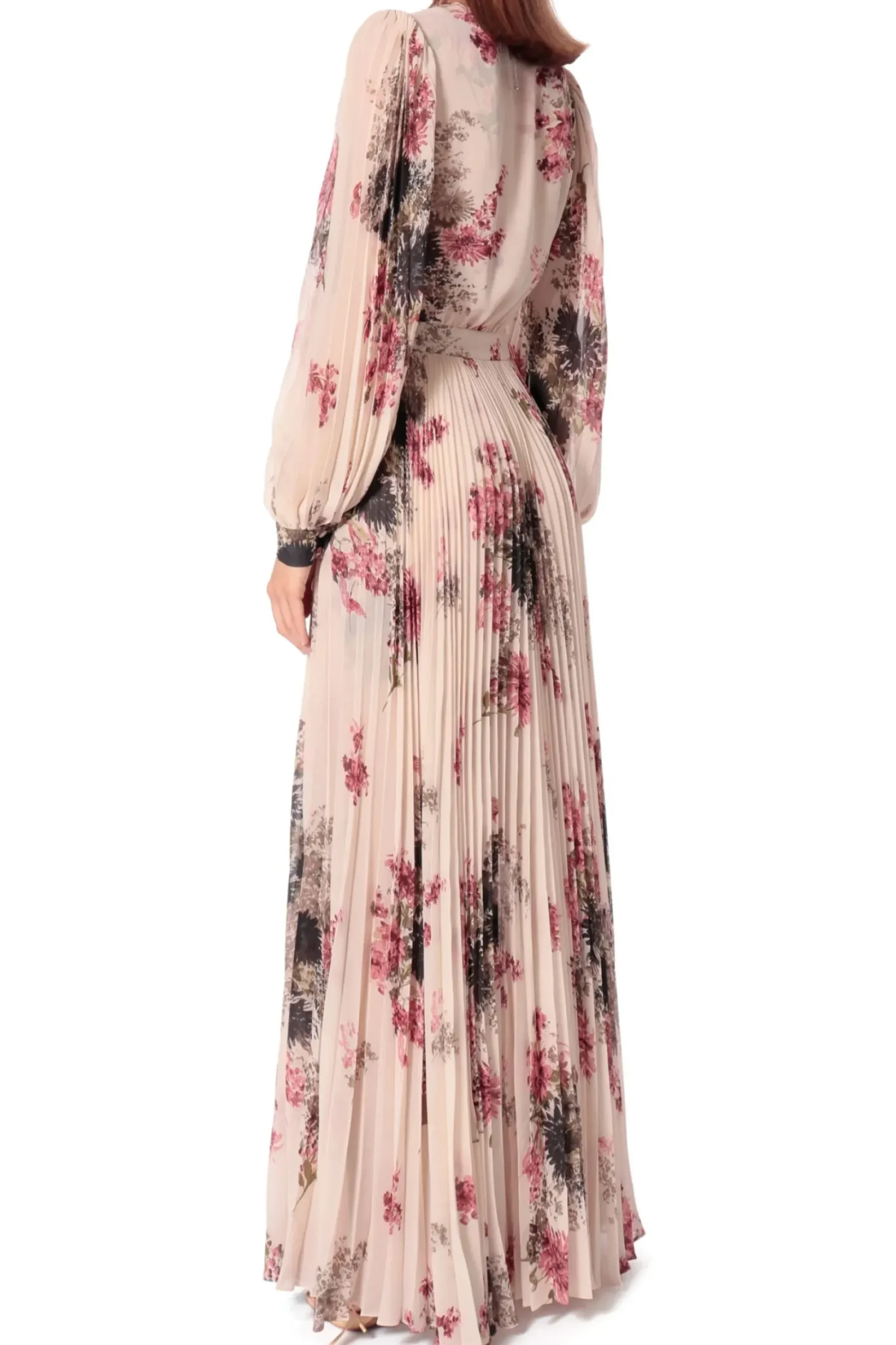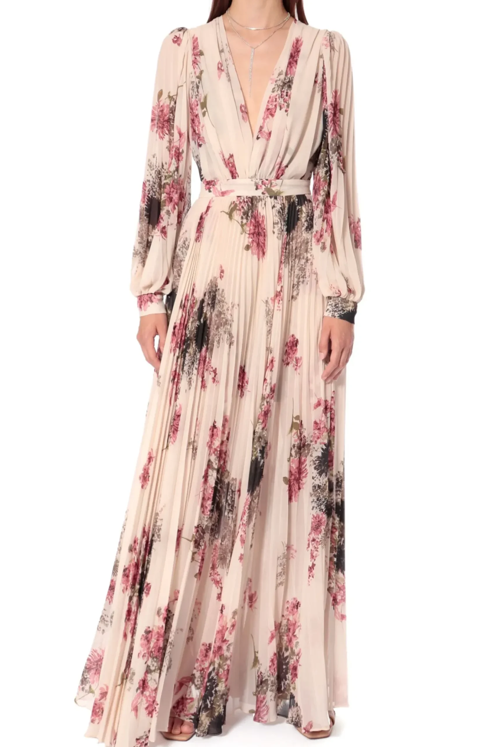 Plisowana Suknia Maxi Z Zamaszysta A Zarazem Lekka I Powiewna Czescia Spodnicowa, Miekko Kolyszaca Sie Podczas Ruchu. Gleboki, Zmyslowy Dekolt.