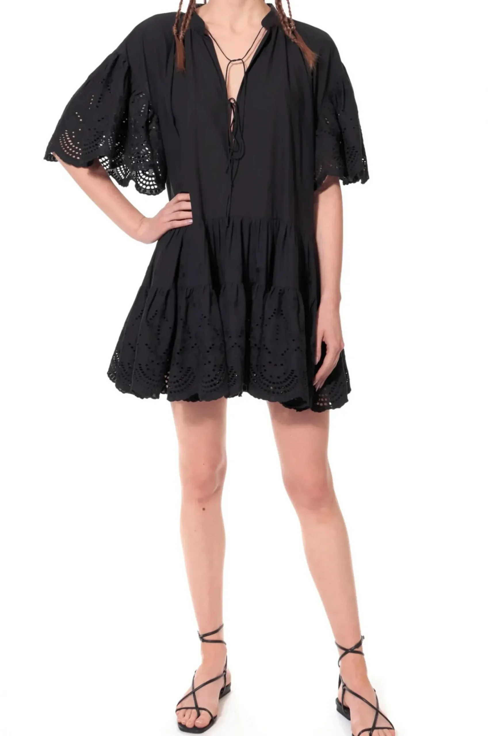 Sukienka Boho Z Lekkiego Bawelnianego Woalu. Misternie Haftowane Rekawy Oraz Dol Sukienki Haftem Richelieu. Z Przodu Glebokie Pekniecie Wiazane Na Dwoch Poziomach Na Troczki, Pozwalajace Ma Regulacje Glebokosci Dekoltu. Bogate Rekawy Siegajace Lokcia O Linii Skrzydel Motyla. Tyl Sukienki Nieco Dluzszy Od Przodu. Sukienki W Stylu Boho Swietnie Komponuja Sie Z Kowbojkami, Sandalami I Trampkami.