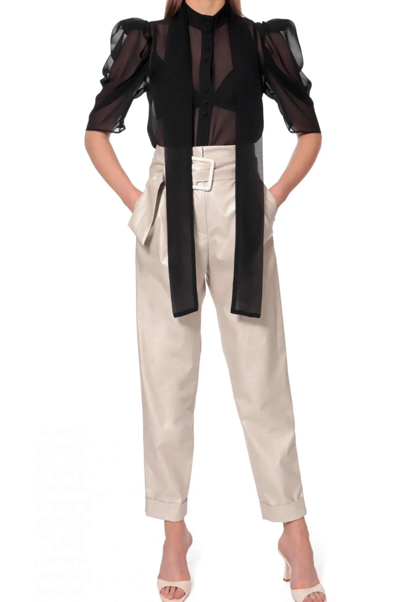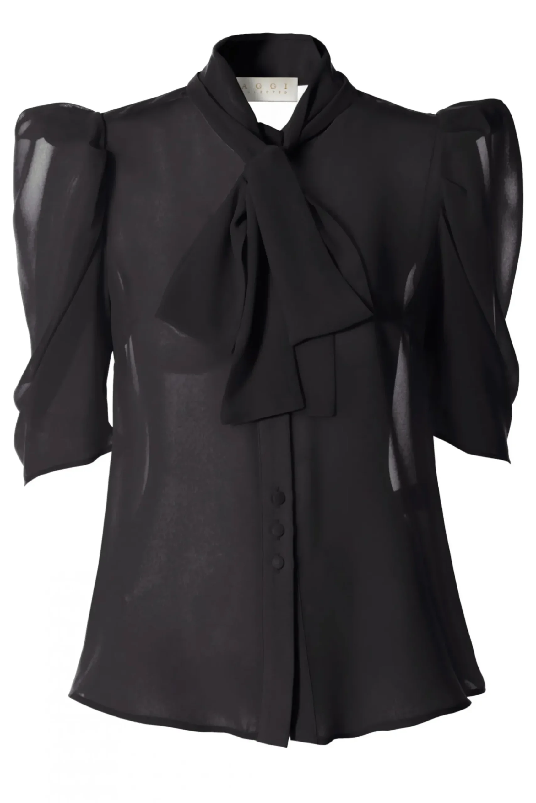 Bluzka Z Bufiastymi Rekawami Uszyta Z Delikatnego, Miekko Ukladajacego Sie Jedwabnego Szyfonu. Efektowna, Przestrzenna Forma Rekawow Podkreslona Mala Poduszka To Najgoretszy Trend Sezonu. Wykonczona Stojka Do Ktorej Jest Doszyta Szarfa, Ktora Mozna Wiazac Na Kilka Sposobow Lub Nosic Nonszalancko Rozwiazana. Bluzka Zapinana Jest Na Oblekane Guziki.