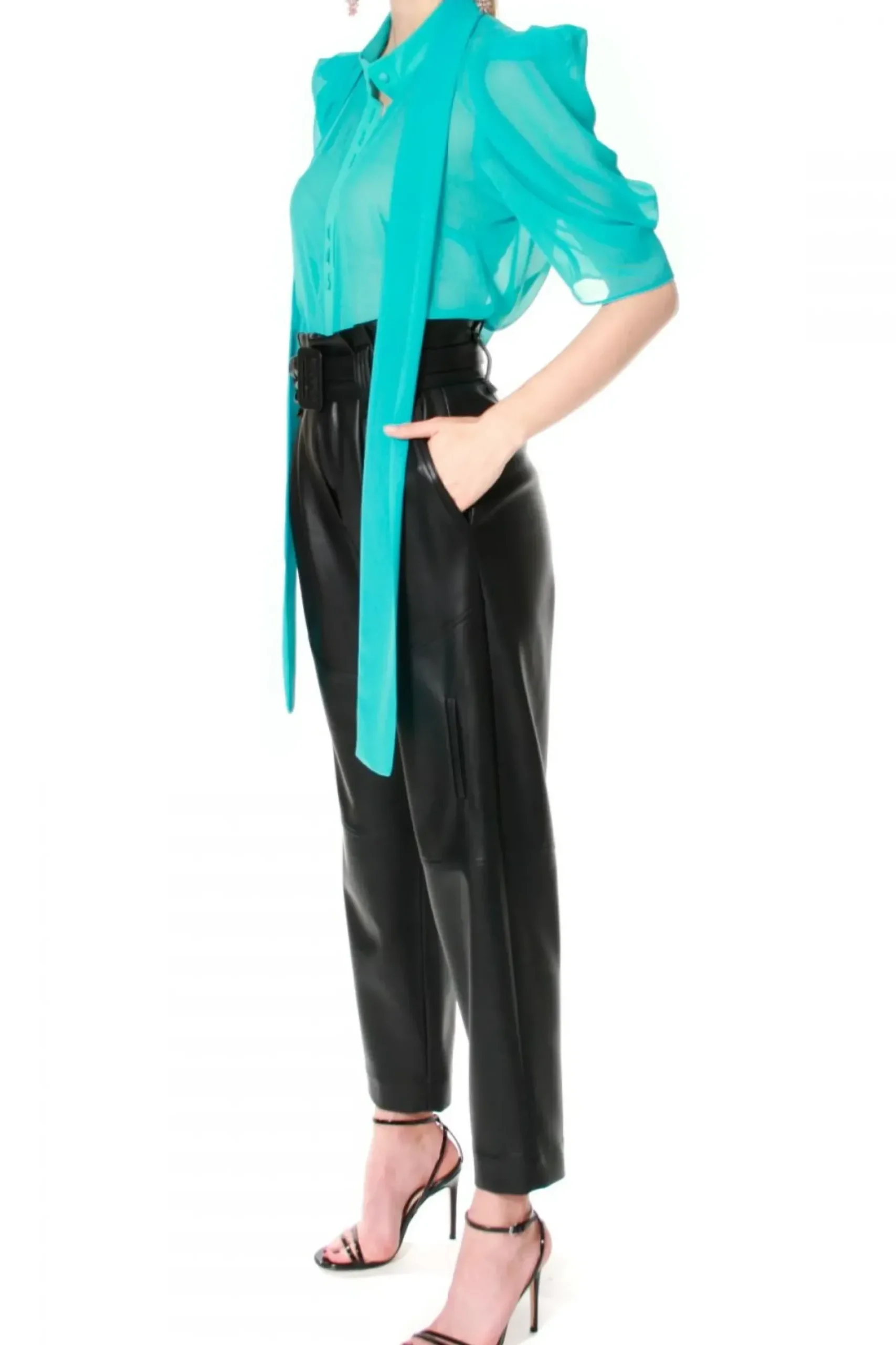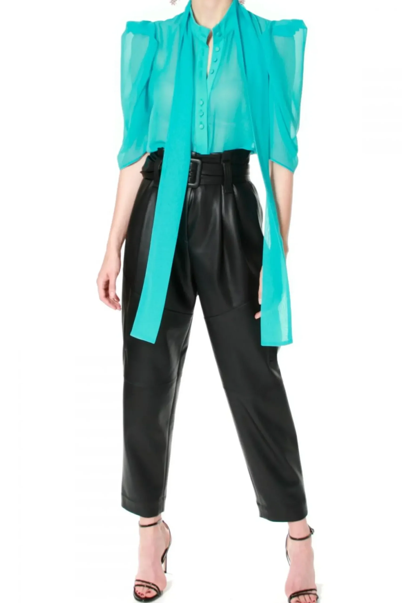 Bluzka Z Bufiastymi Rekawami Uszyta Z Delikatnego, Miekko Ukladajacego Sie Jedwabnego Szyfonu. Efektowna, Przestrzenna Forma Rekawow Podkreslona Mala Poduszka To Najgoretszy Trend Sezonu. Wykonczona Stojka Do Ktorej Jest Doszyta Szarfa, Ktora Mozna Wiazac Na Kilka Sposobow Lub Nosic Nonszalancko Rozwiazana. Bluzka Zapinana Jest Na Oblekane Guziki . Ten Kobiecy I Elegancki Fason Swietnie Sprawdzi Sie Zarowno W Zestawieniu Z Elegancka Zwiewna Spodnica Midi Oraz Szerokimi Spodniami.