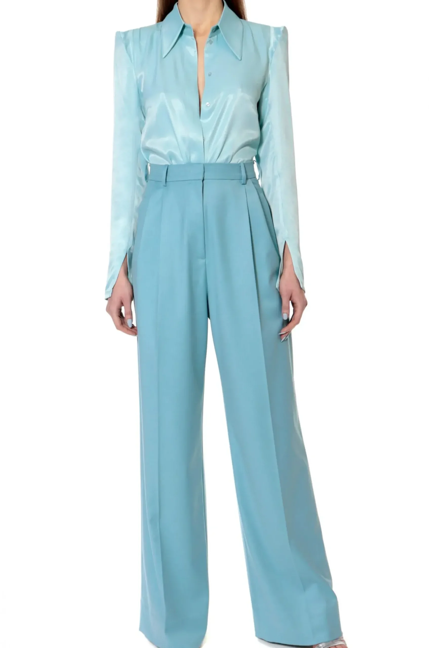 Koszula Uszyta Z Miesistego, Szlachetnego Atlasu. Kanciaste Ramiona Lekko Zaakcentowane Malymi Poduszkami. Kryte Zapiecie Na Subtelne Male Guziczki. Dlugie Rekawy Z Peknieciami Przy Nadgarstkach.