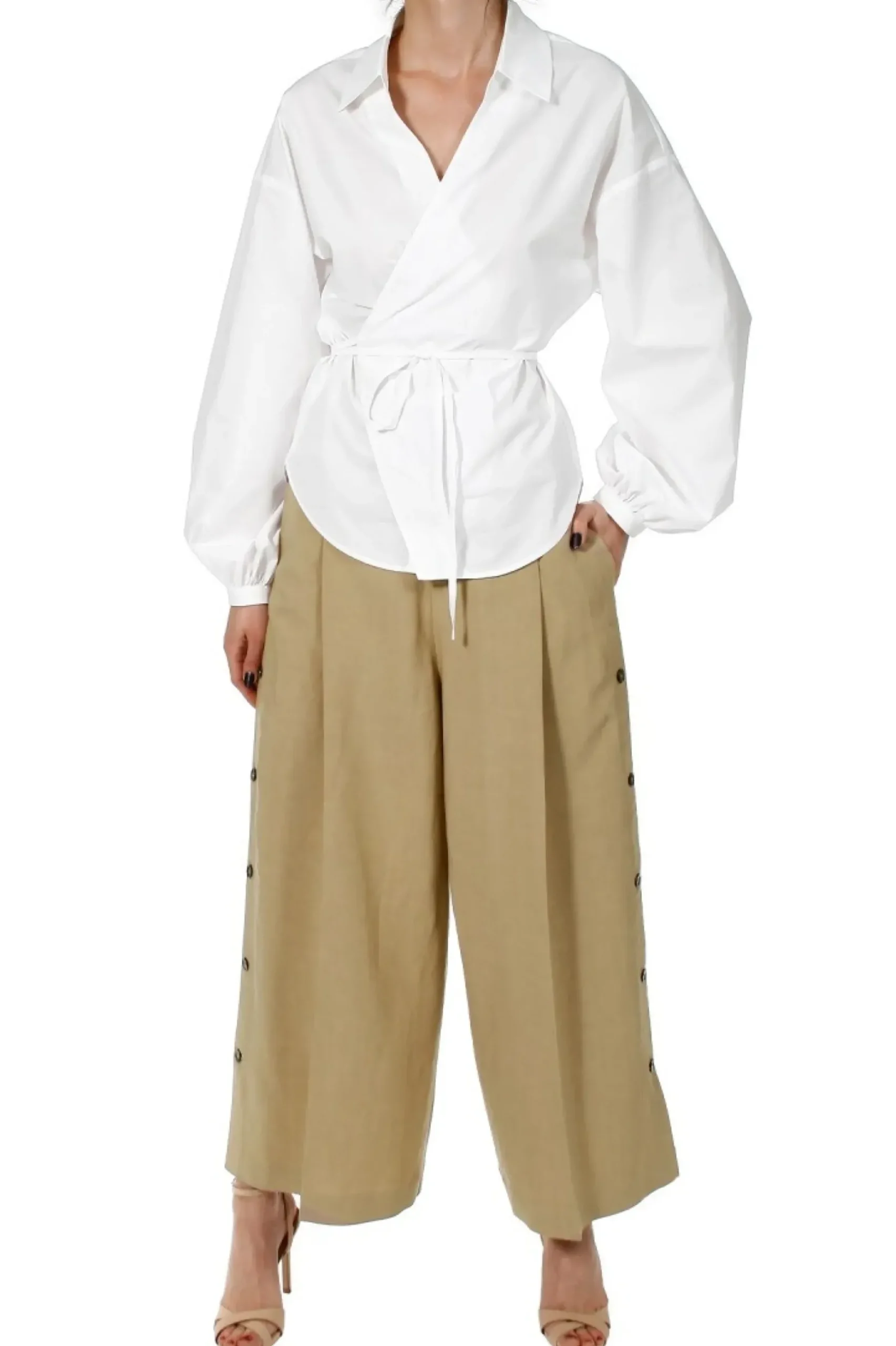 Obnizona Linia Ramion I Szerokie, Przestrzenne Balonowe Rekawy Zebrane Waskim Mankietem Przy Nadgarstku.