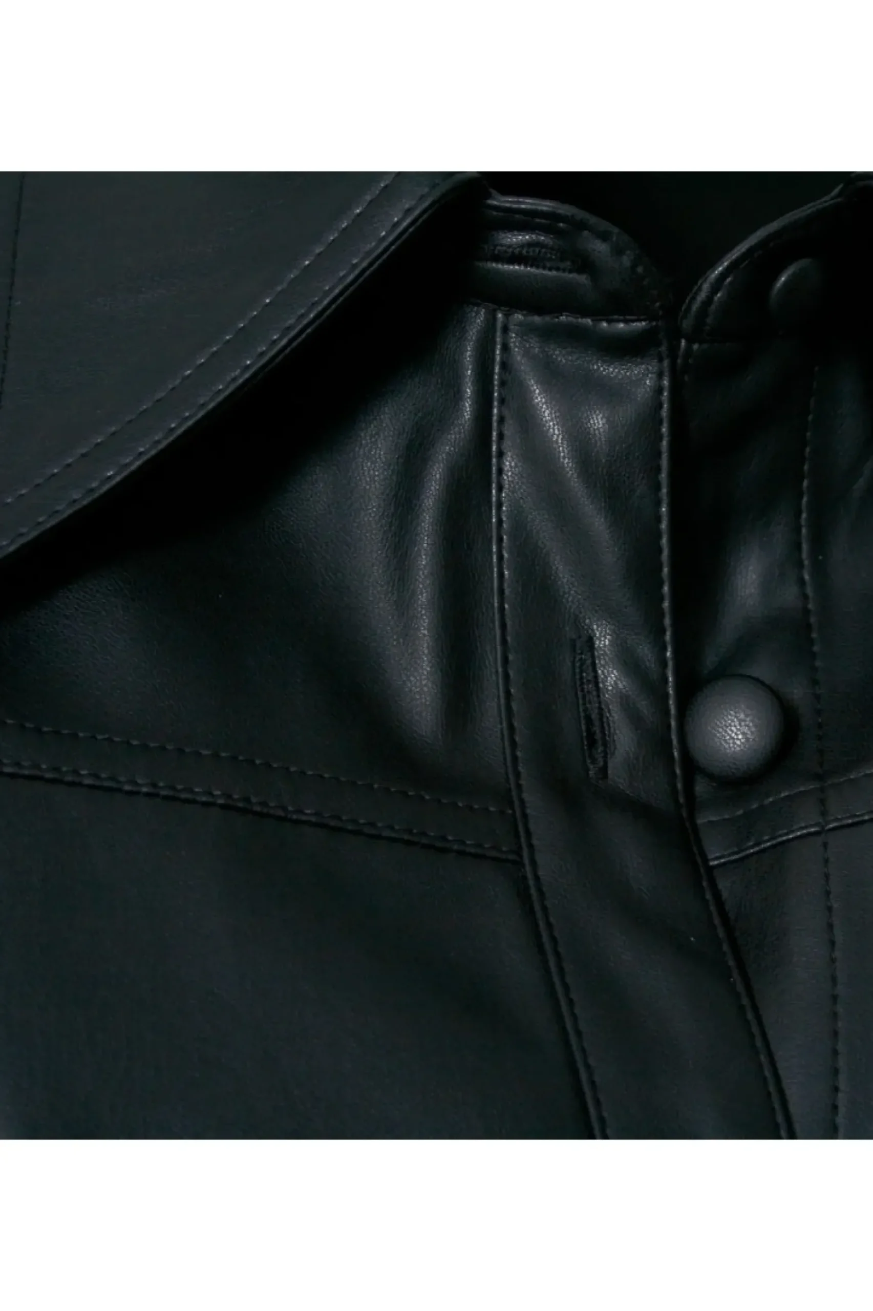 Koszula Wykonana Z Miekkiej, Delikatnej W Dotyku, Wysokogatunkowej Skory Weganskiej. Projekt Utrzymany W Klimacie Lat 70-Tych. Szpiczasty Kolnierzyk Na Stojce, Dlugie Rekawy Zakonczone Waskimi Mankietami Zapinanymi Na Oblekane Guziki. Drobiazgowo Dopracowane Detale, Male, Nakladane Kieszonki Na Przodzie Bluzki, Ozdobne Stebnowania, Guziki Oblekane Skora Weganska.