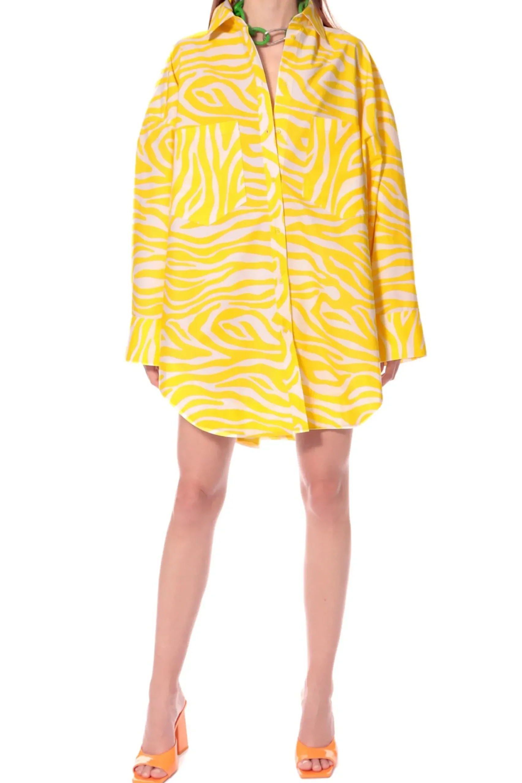 Ekstremalnie Oversizowa Bawelniana Koszula W Zwierzecy Desen.