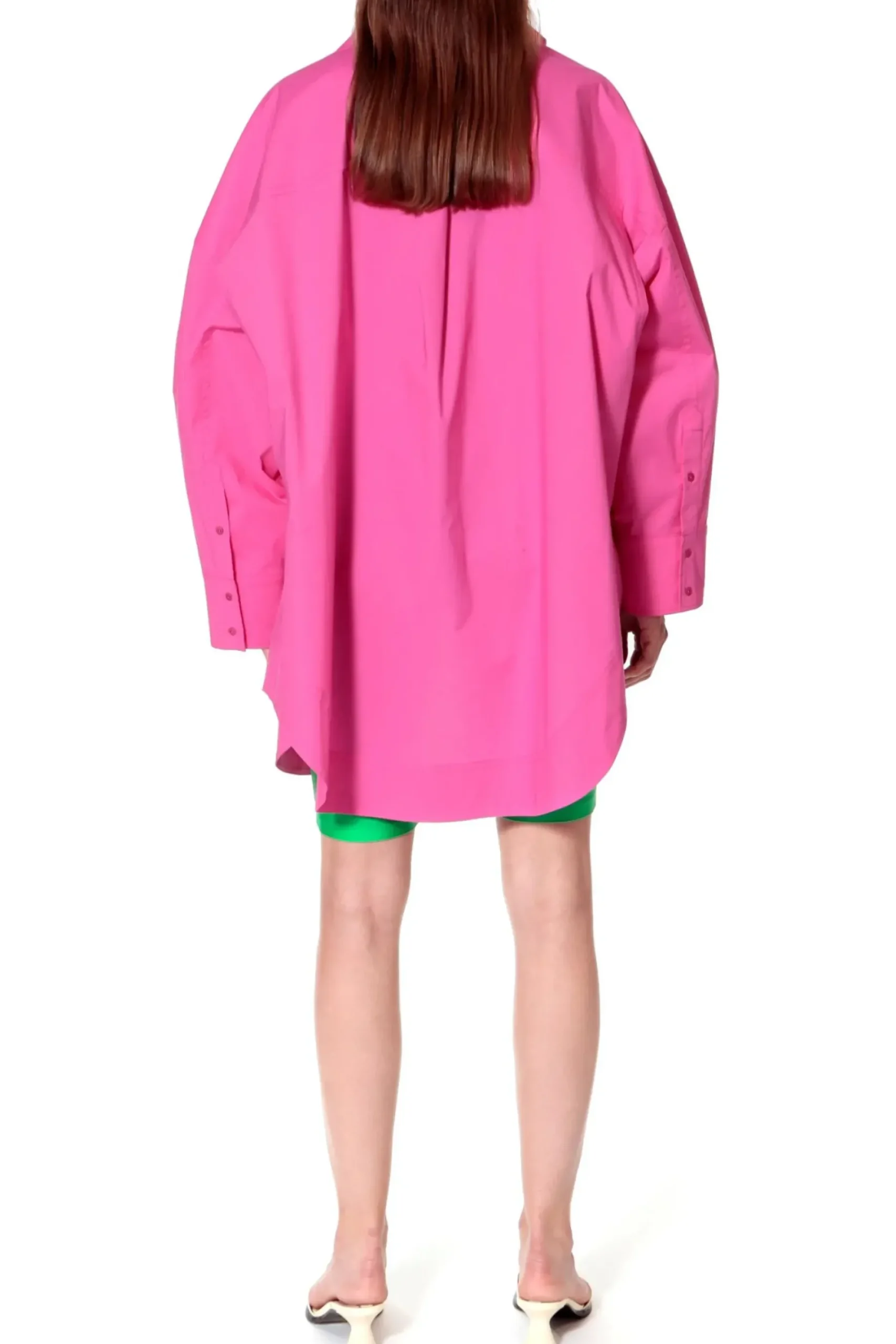 Ekstremalnie Oversizowa Bawelniana Koszula W Mocnym Fuksjowym Odcieniu Rozu.