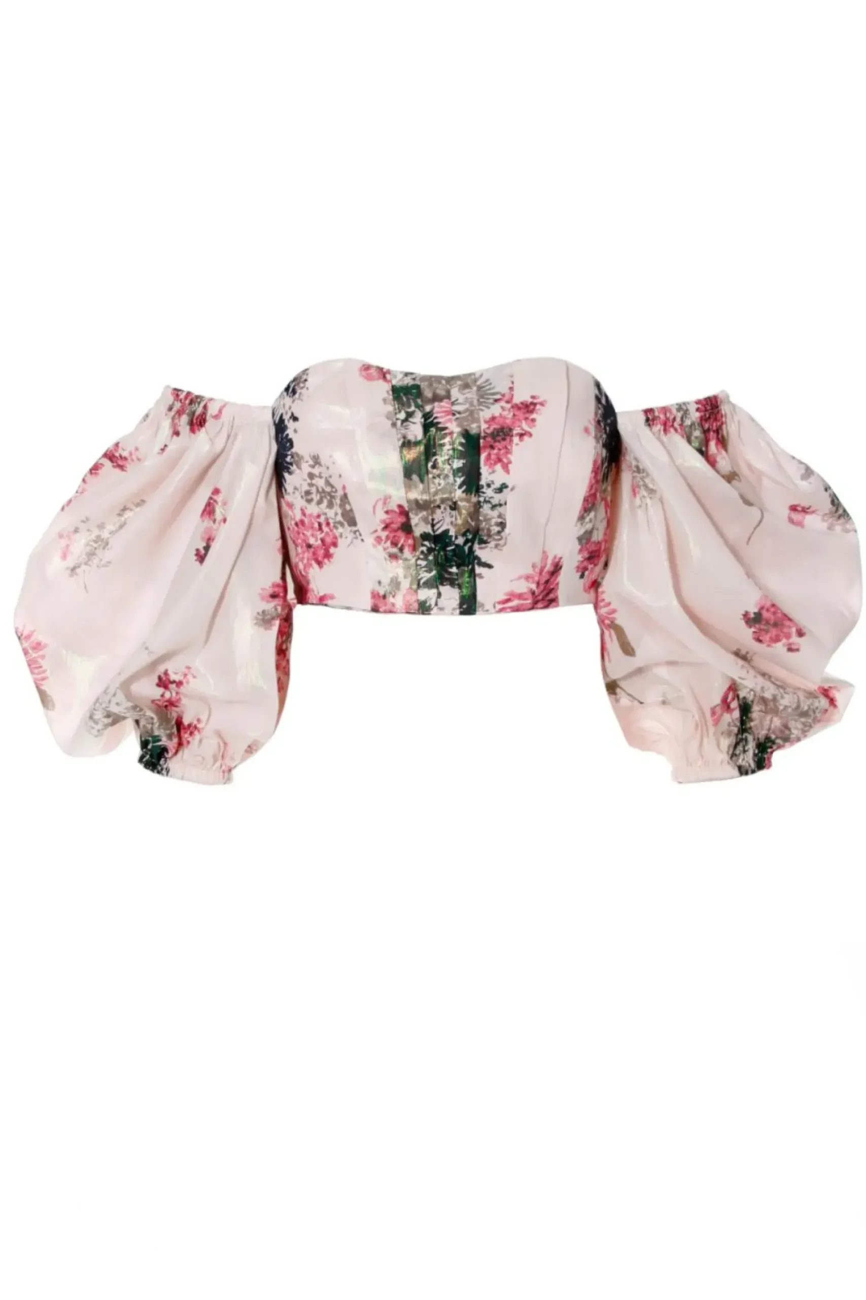 Top-Gorset Uszyty Z Delikatnego Batystu Z Dodatkiem Miekkiej Nici Metalicznej, Ktora Gesto Wpleciona Subtelnie Odbija Swiatlo I Nadaje Tkaninie Szlachetnego Perlowego Polysku.